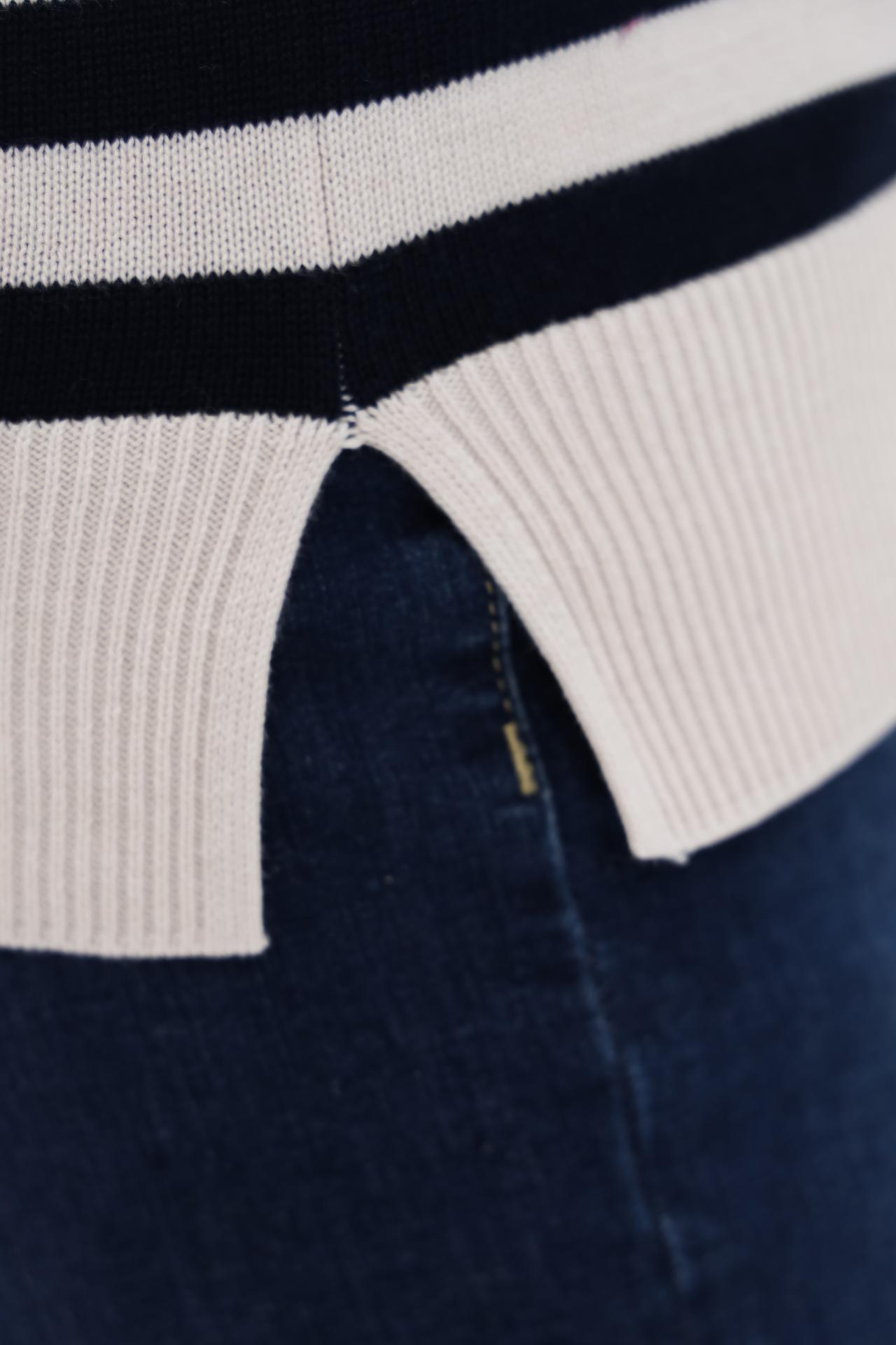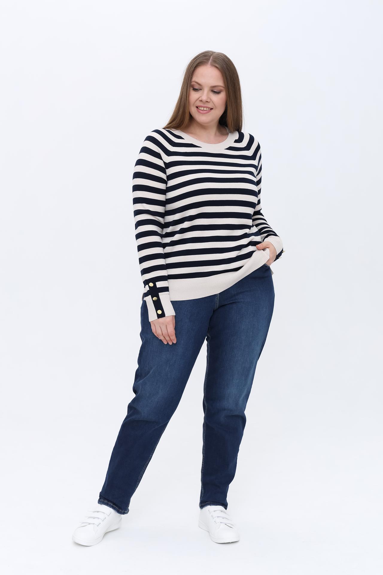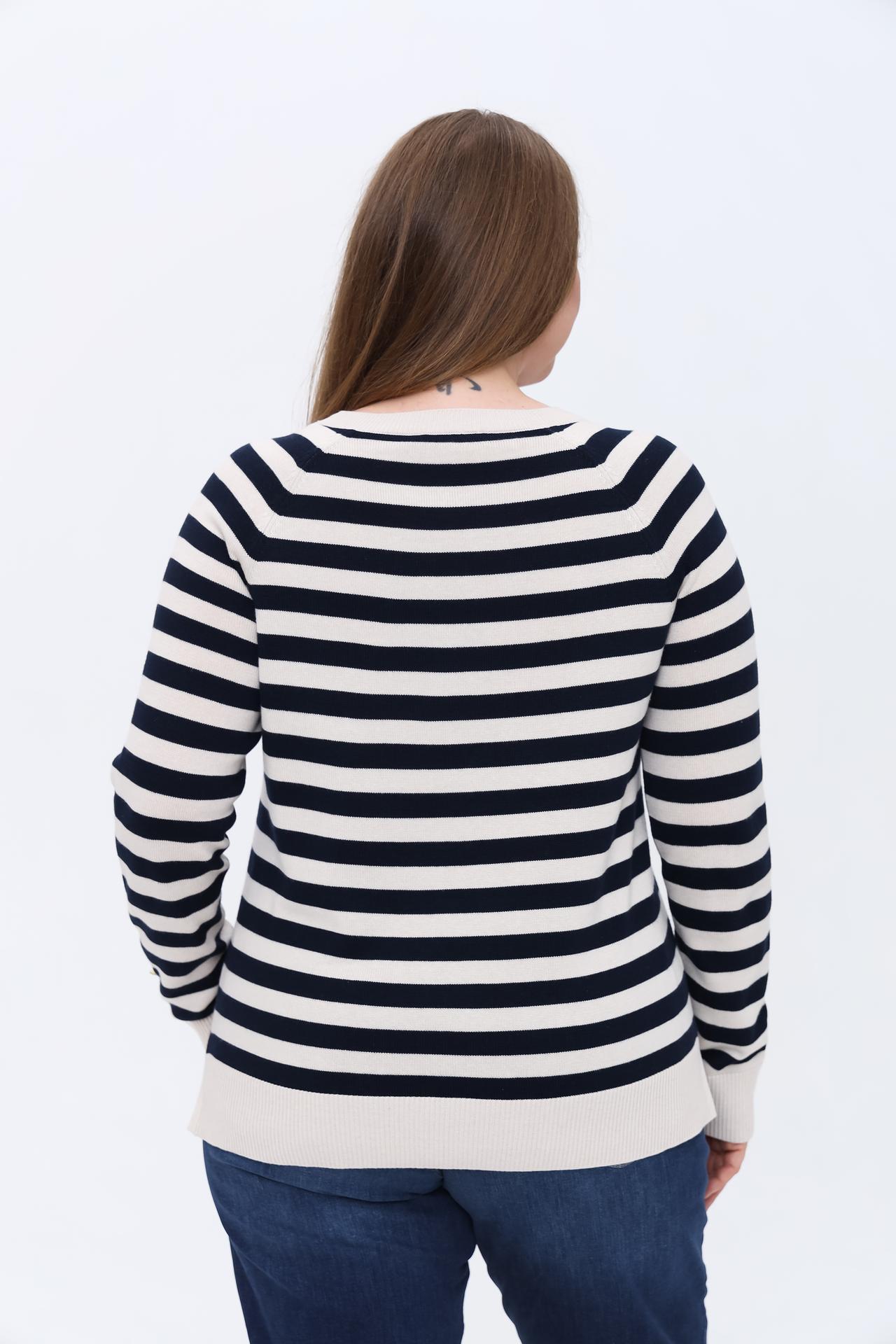 Полосатый дизайн пуловера создает свежий и модный образ, который подойдет для различных случаев. Прямой крой обеспечивает свободу движений, а деликатные пуговицы на манжетах добавляют изюминку.