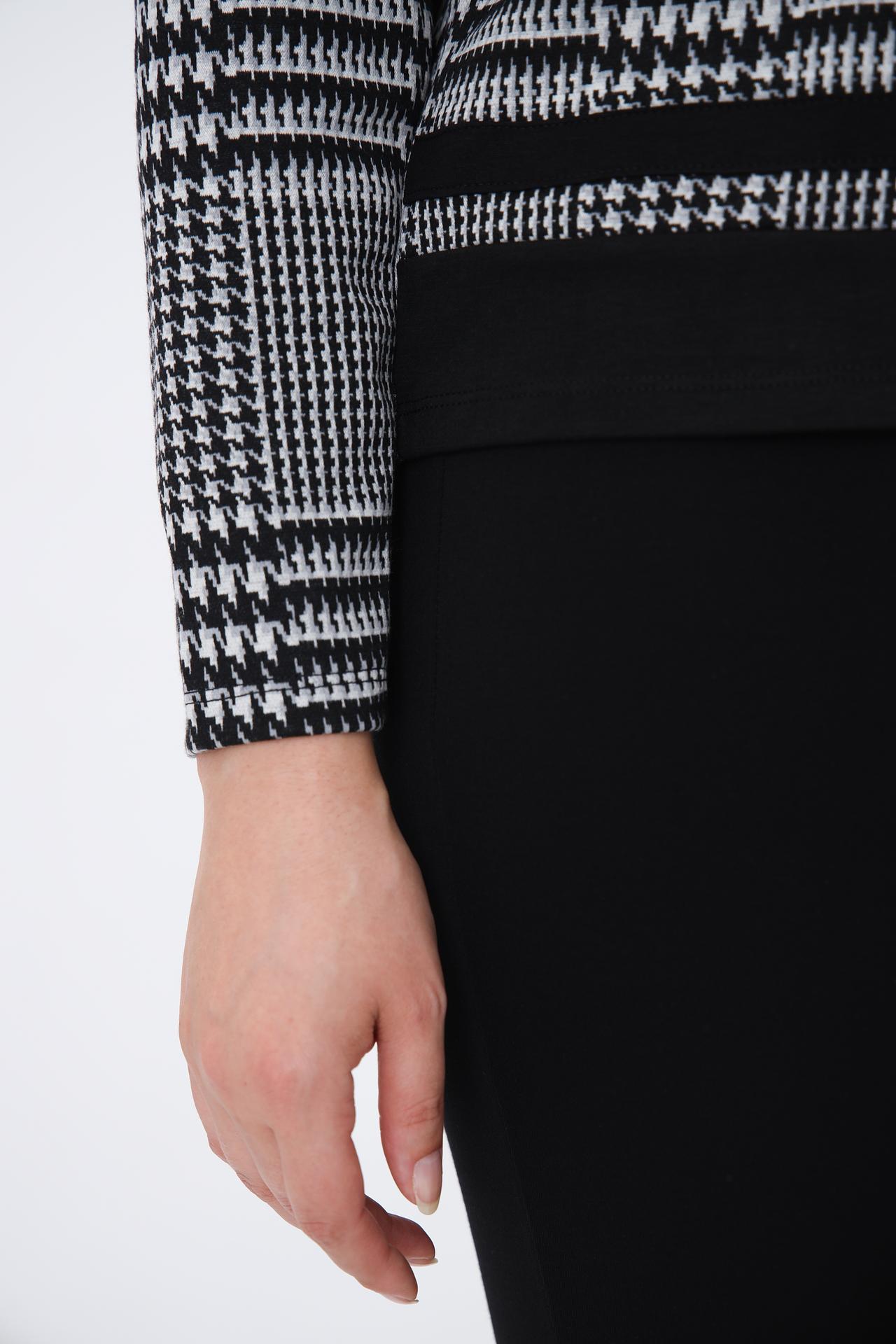 Элегантный пуловер от бренда Lebek, выполненный в классической клетке "принц Уэльский". Оригинальный принт с бархатными вставками и декоративными шнурками с люверсами добавляет изделию уникальности и модного шика. Модель отлично подойдет для создания стильных и комфортных образов на каждый день.