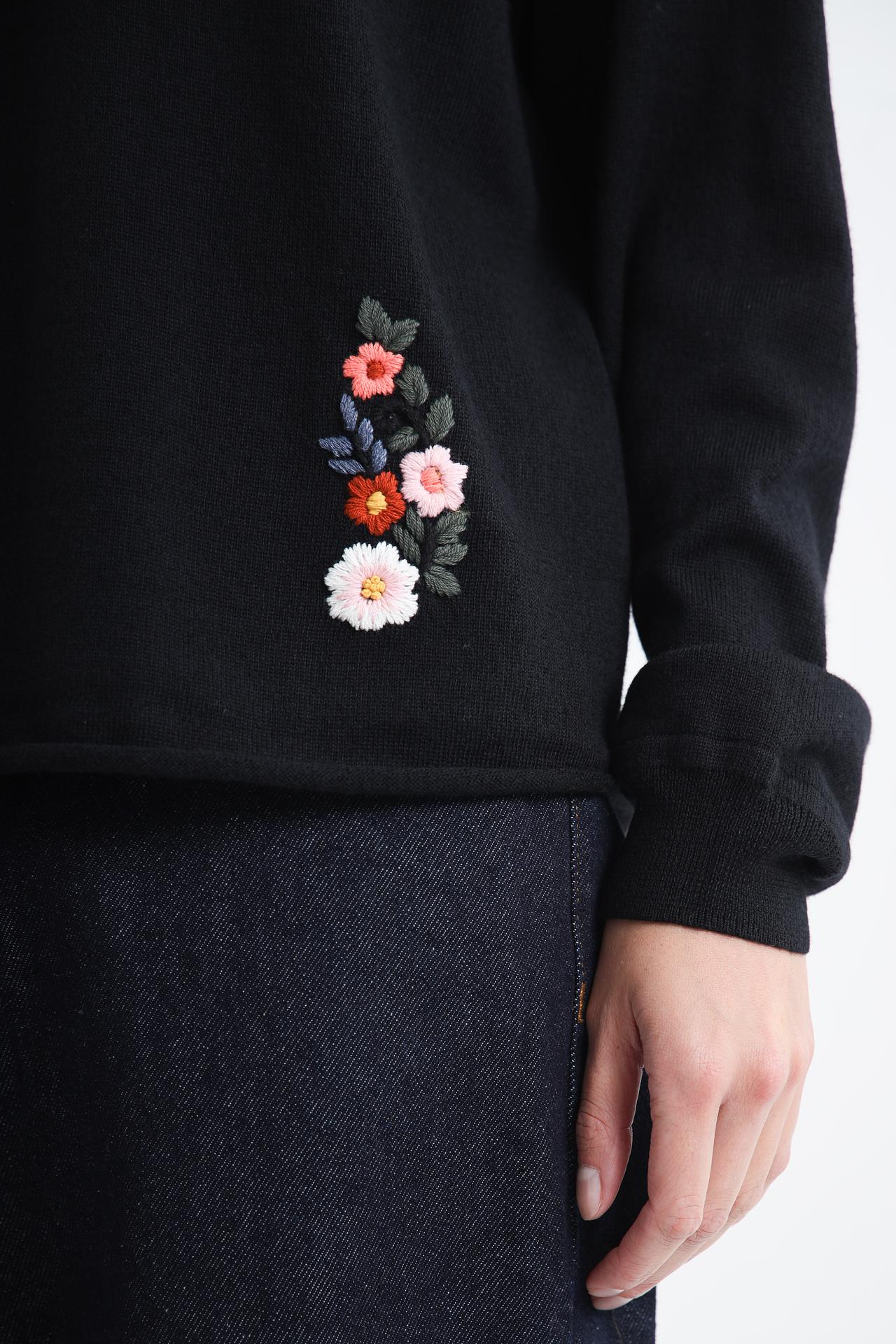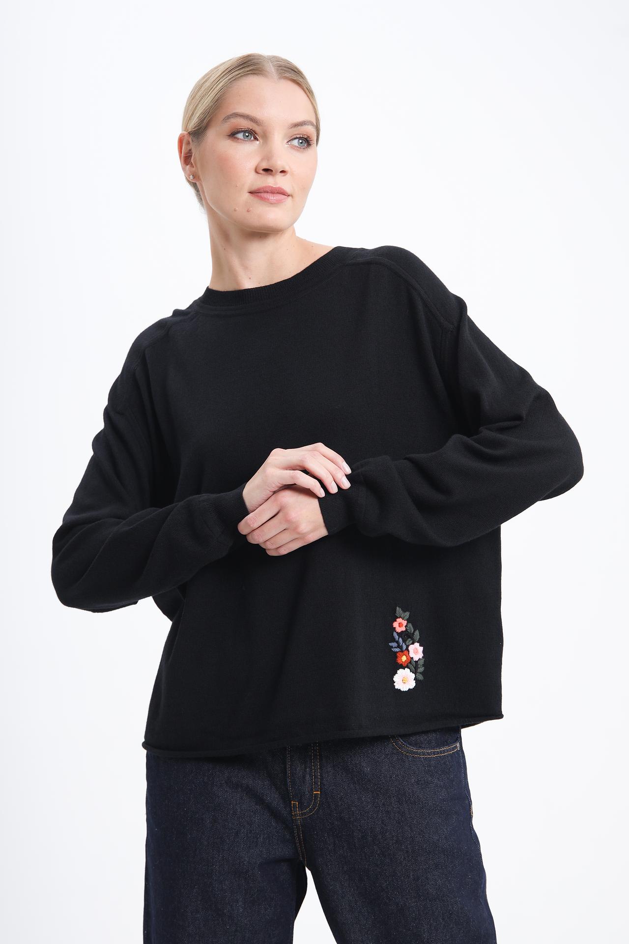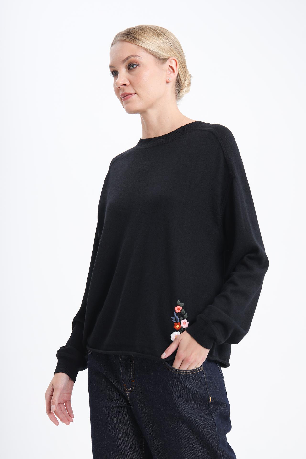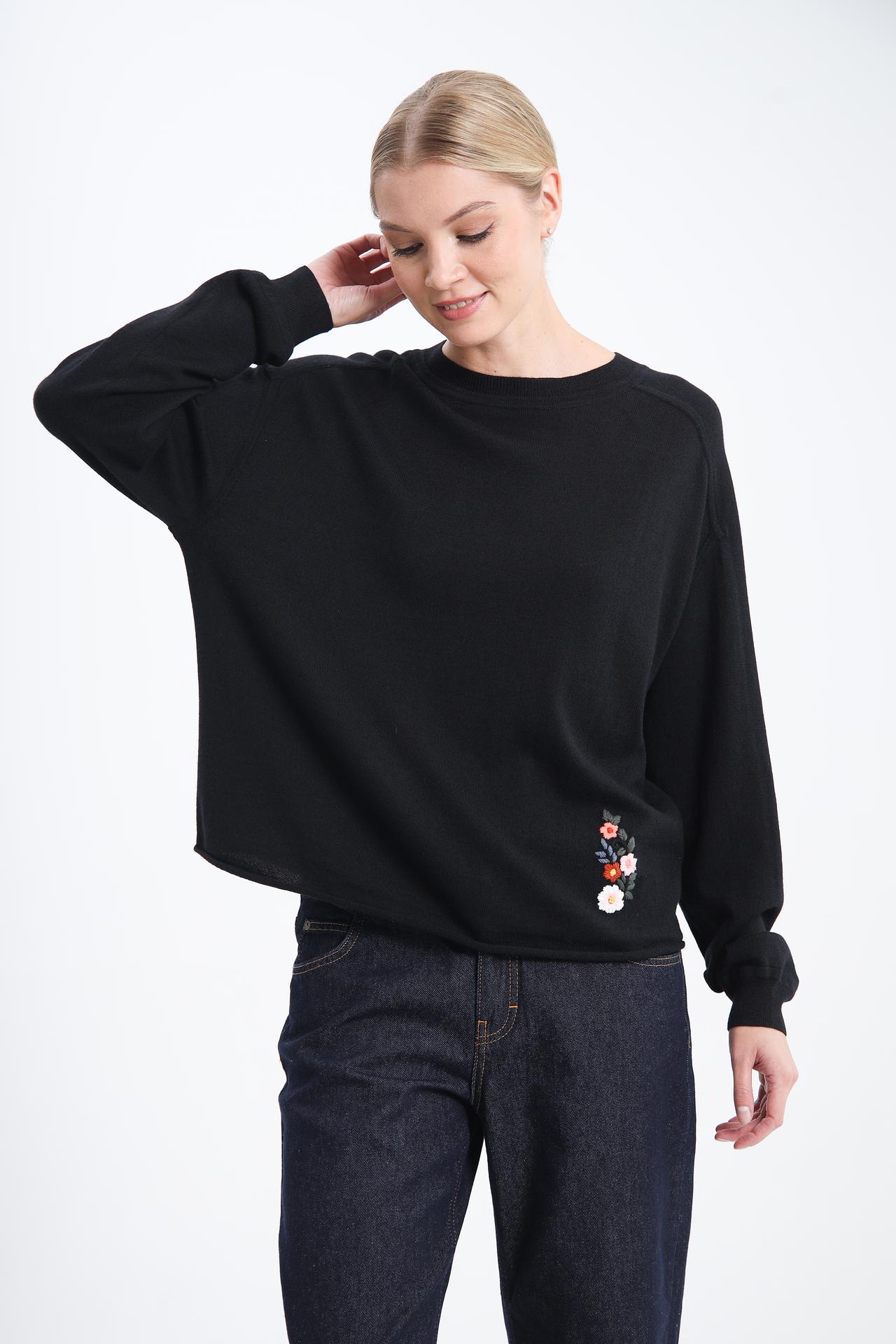 Элегантный женский пуловер от бренда Pezzo, выполненный в классическом черном цвете. Модель декорирована изящной вышивкой в виде цветочной композиции, которая добавляет изделию женственности и утонченности. Пуловер станет отличным дополнением к вашему повседневному и вечернему гардеробу.
