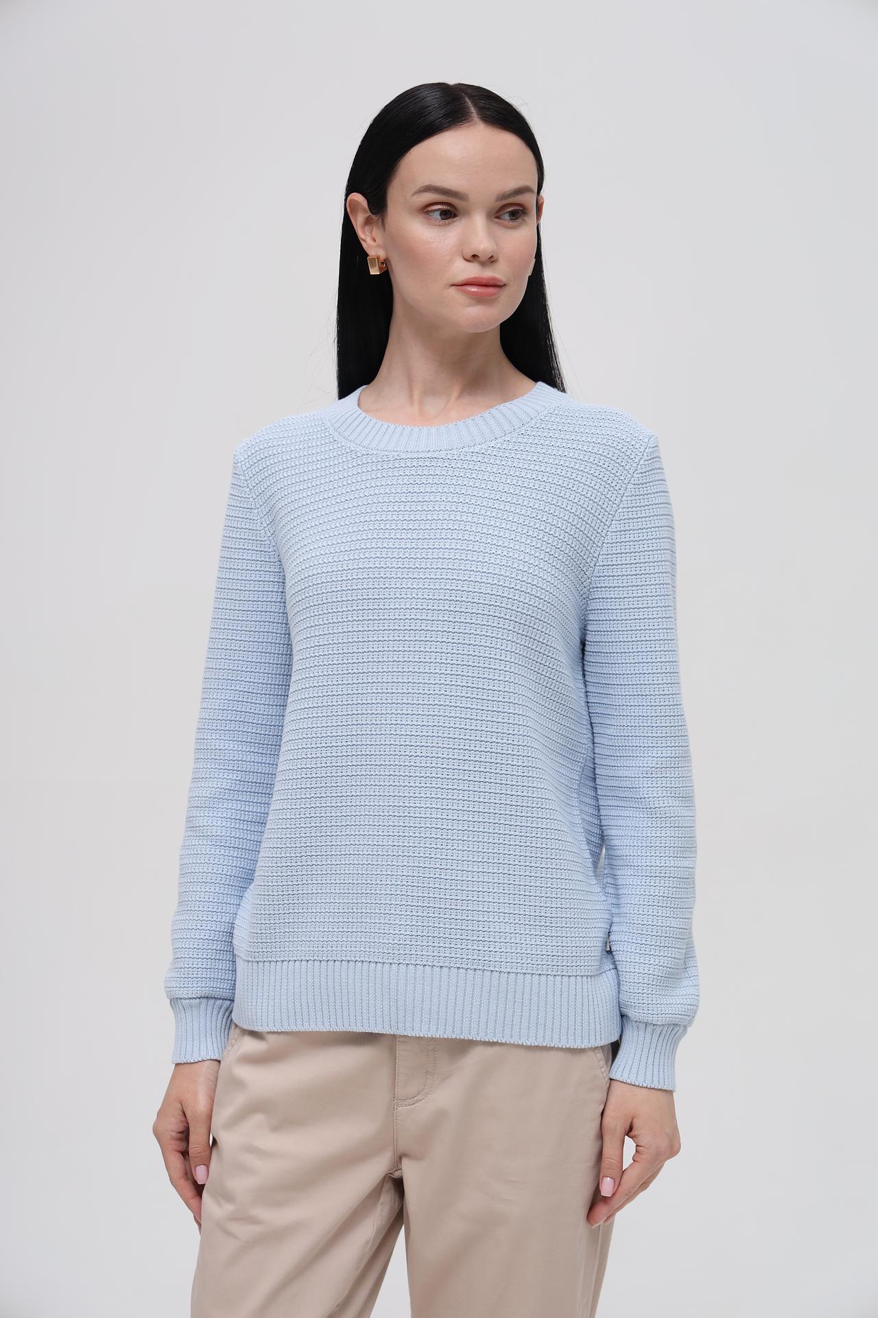 Пуловер Maerz голубой хлопковый с круглым вырезом