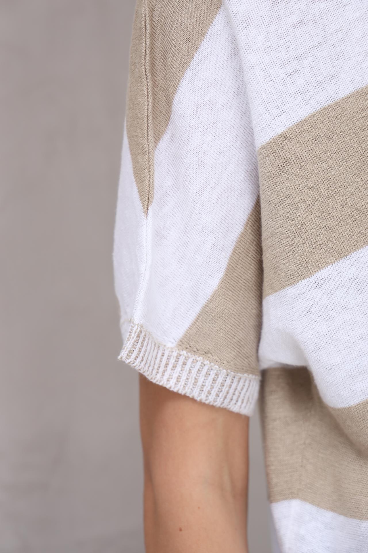 Полосатый льняной пуловер Oui бежевый/белый
