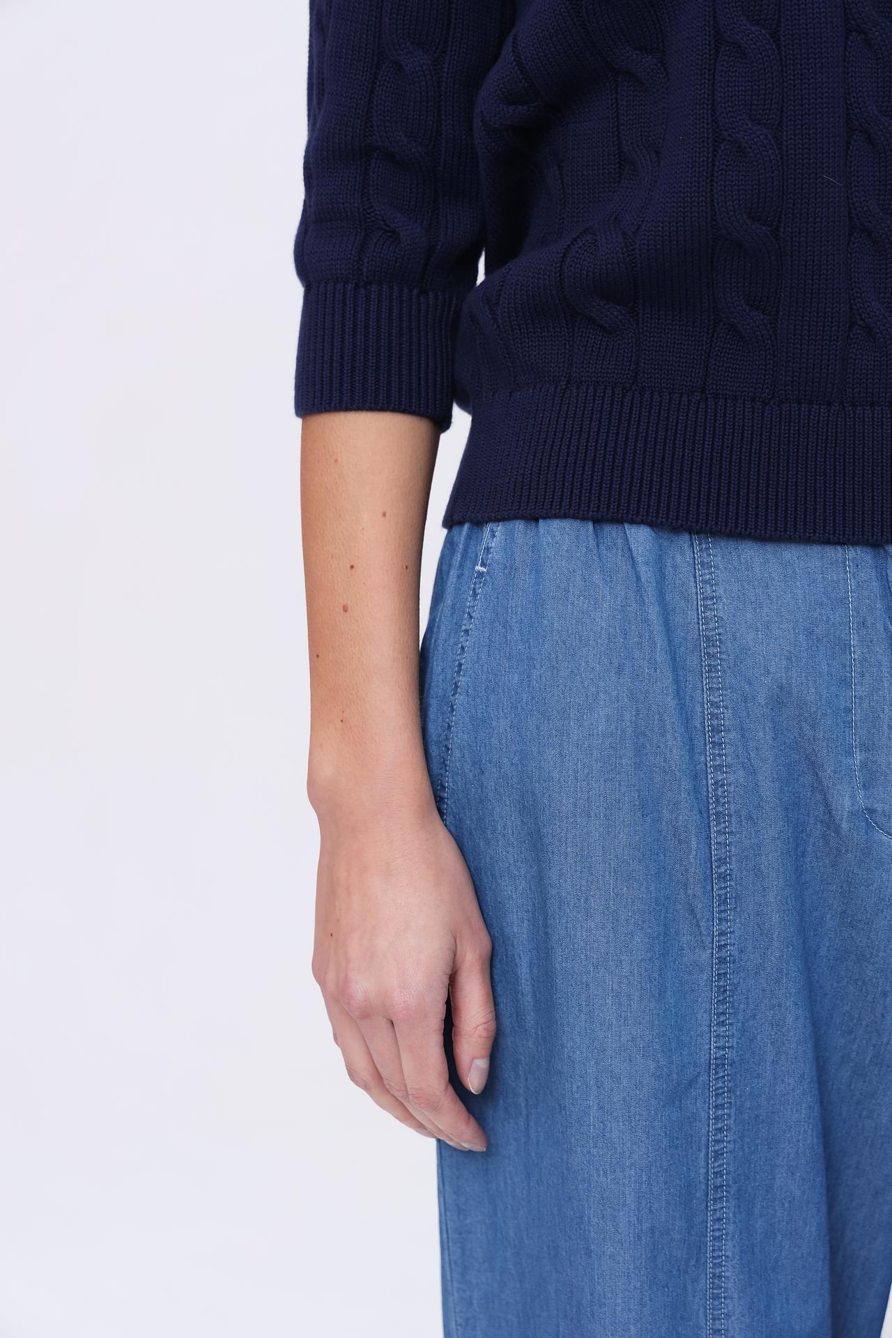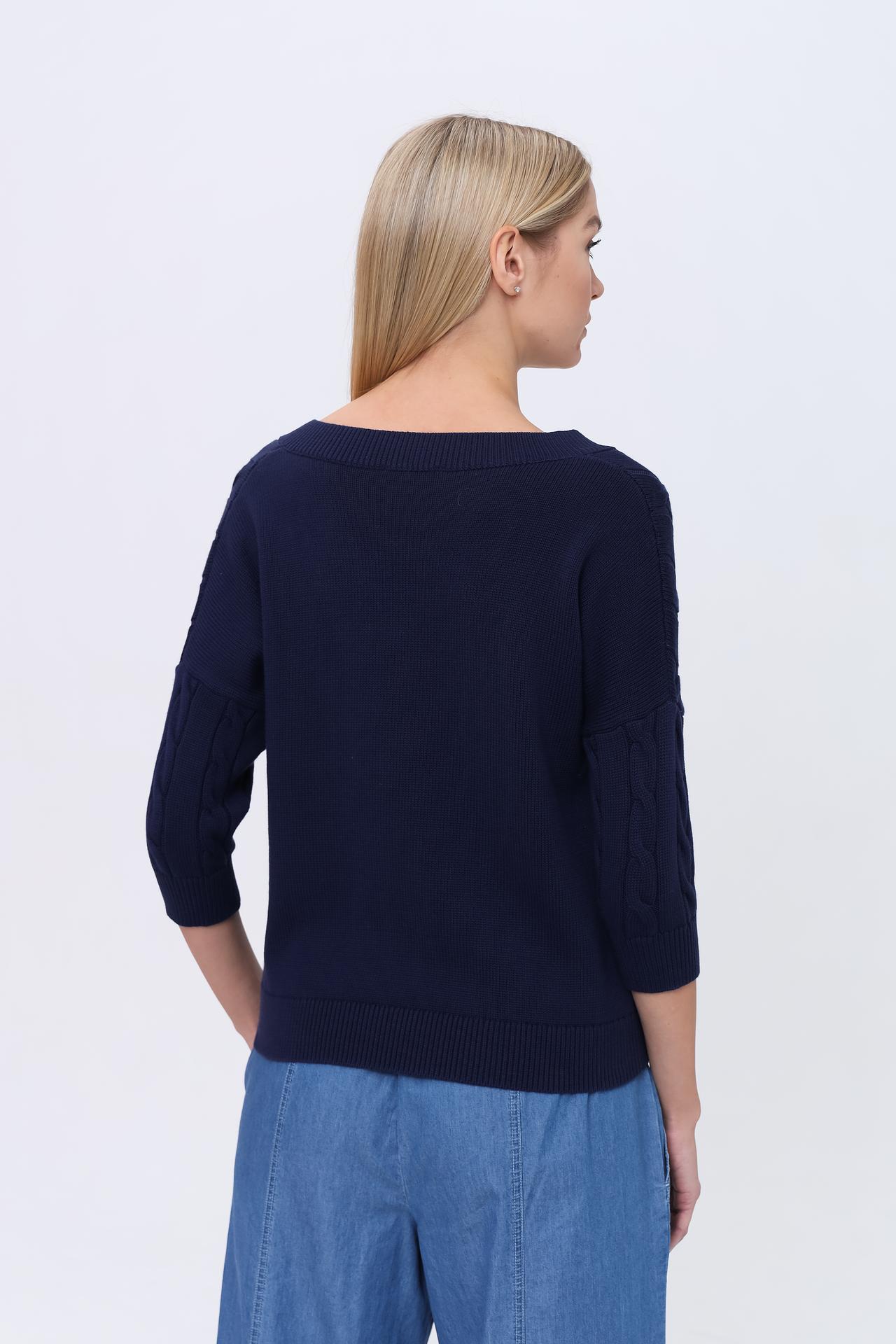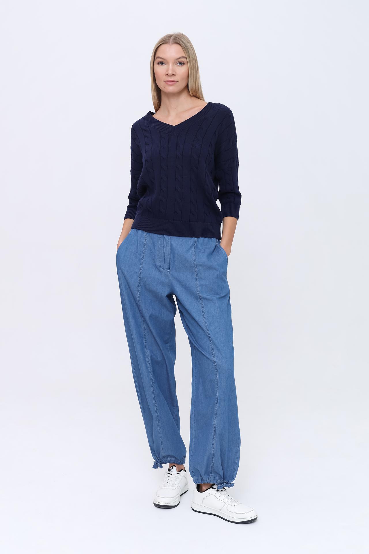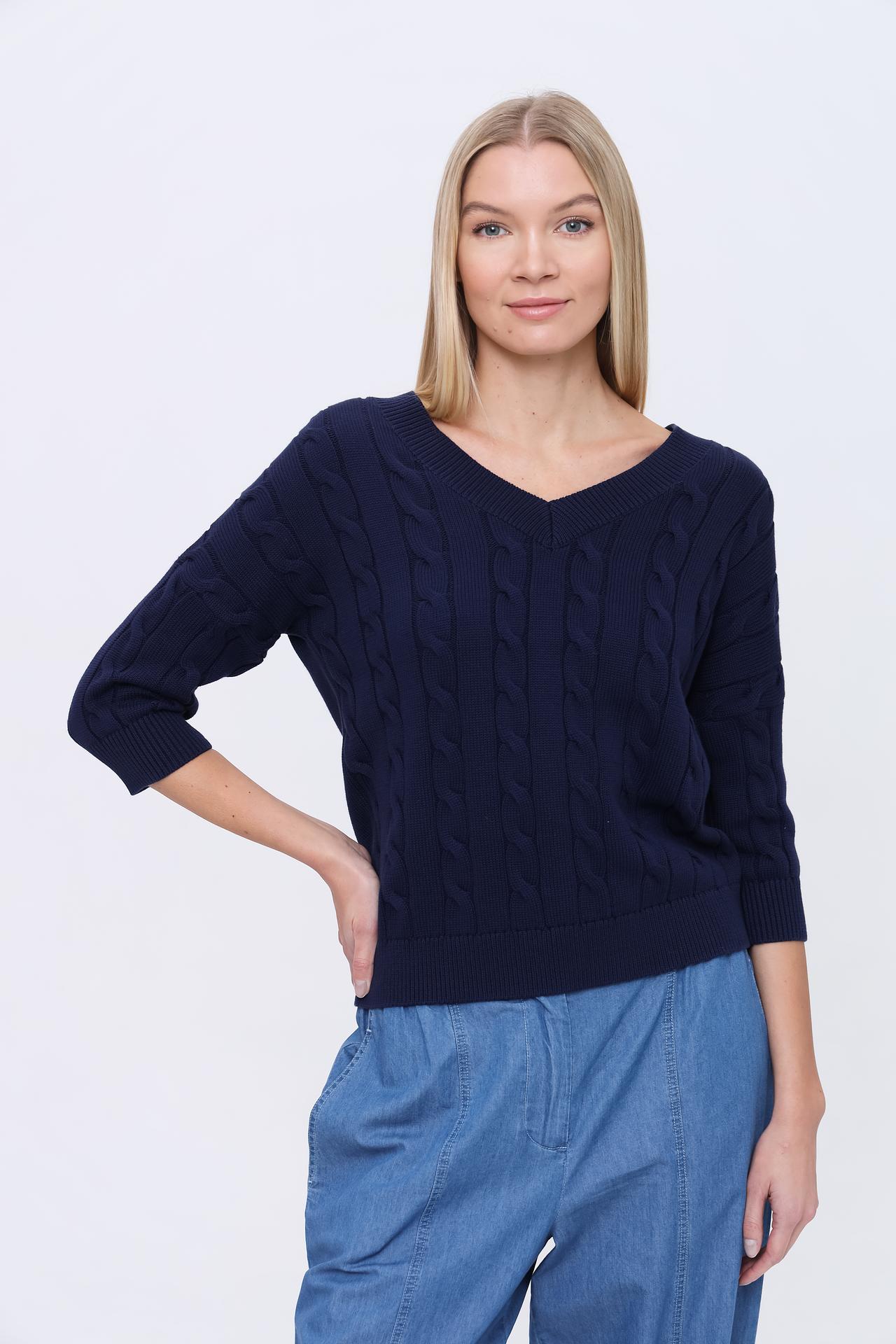 Пуловер Pezzo синий с V-образным вырезом и узором косы