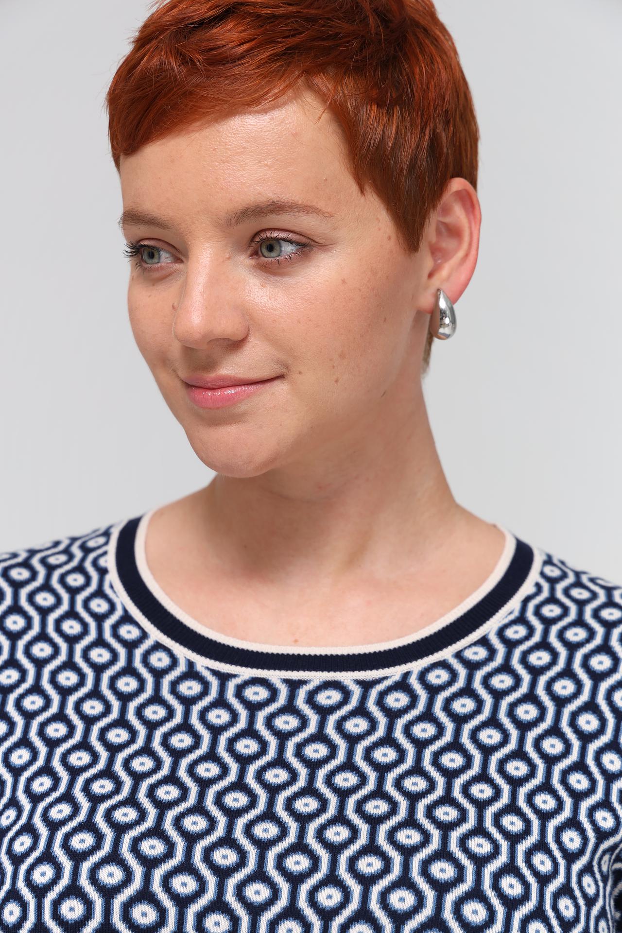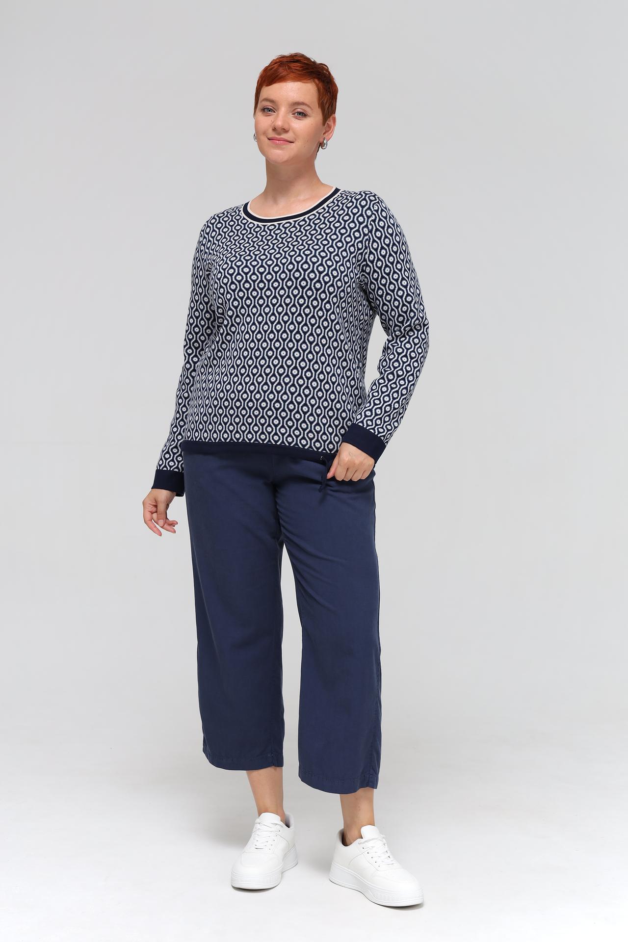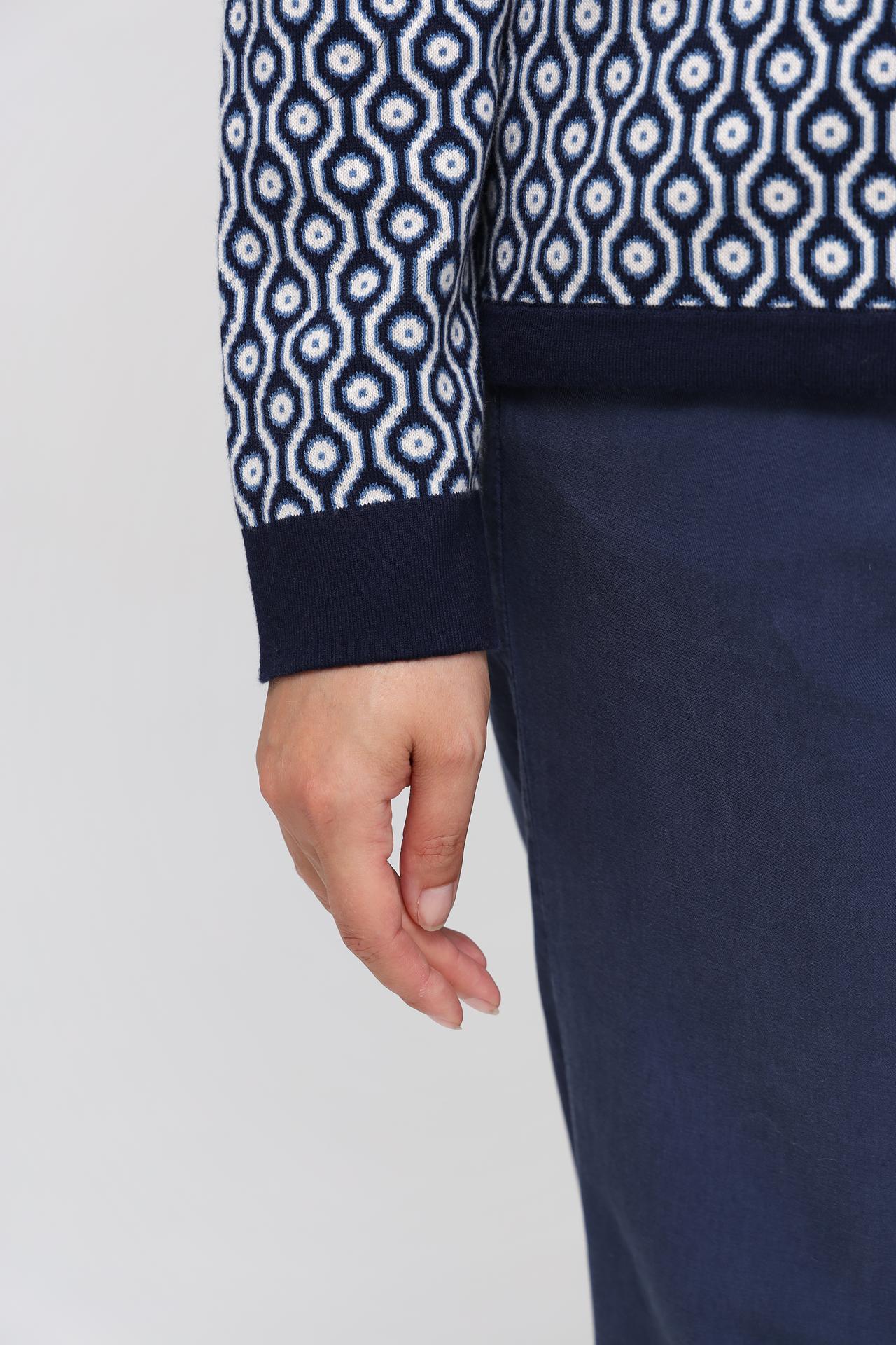 Пуловер Olsen тёмно-синий с геометрическим узором и завязками