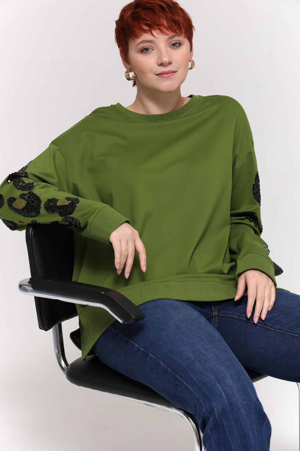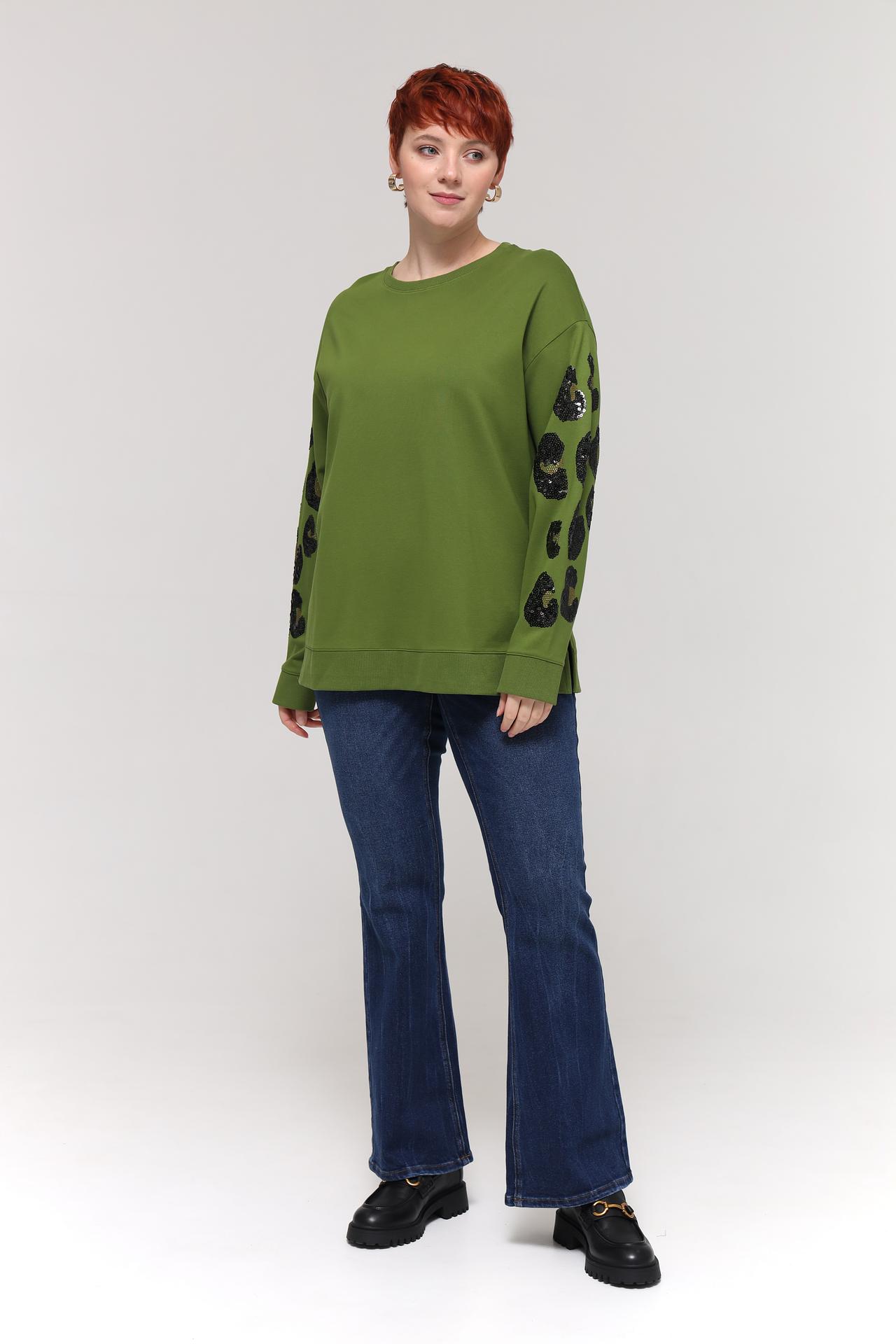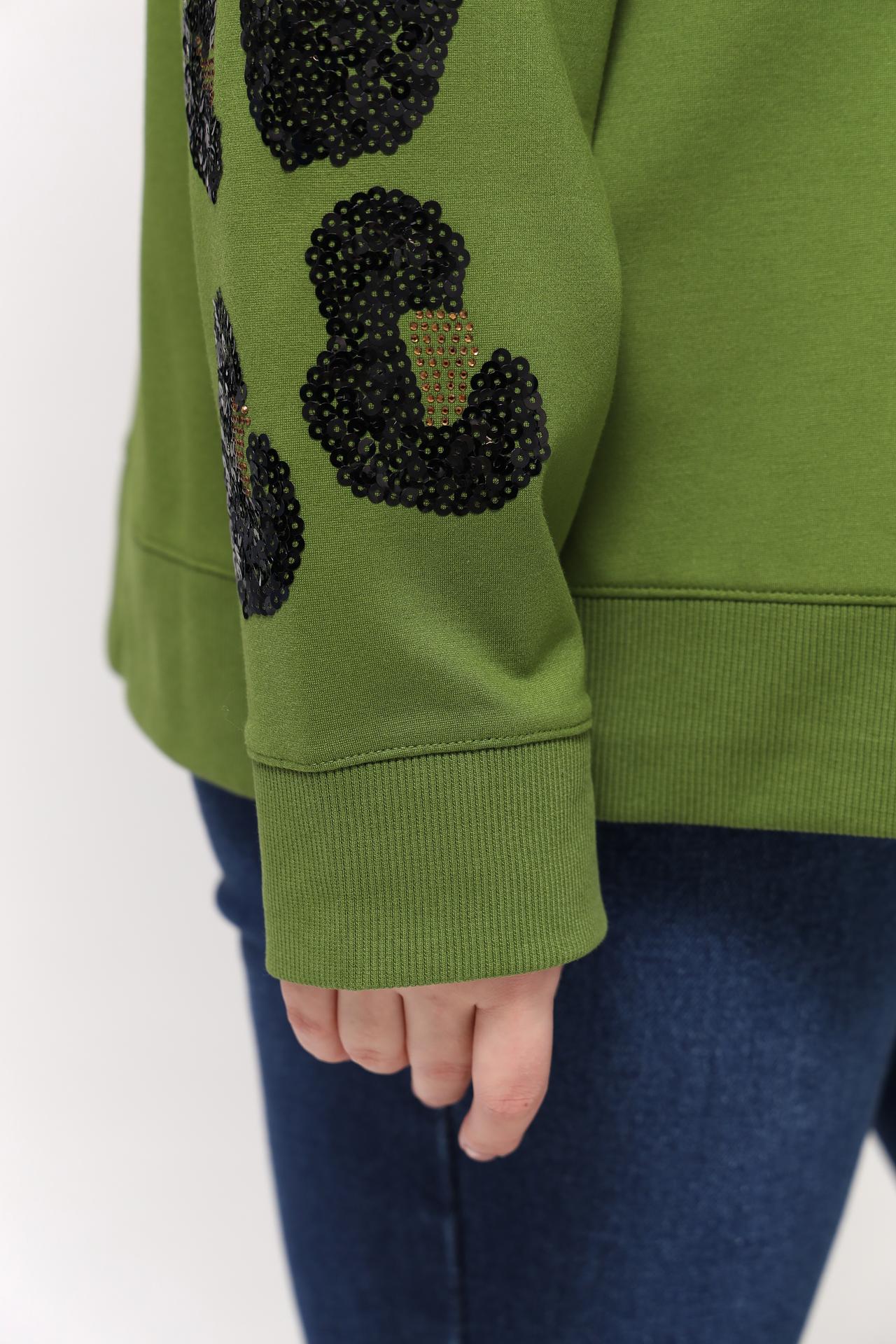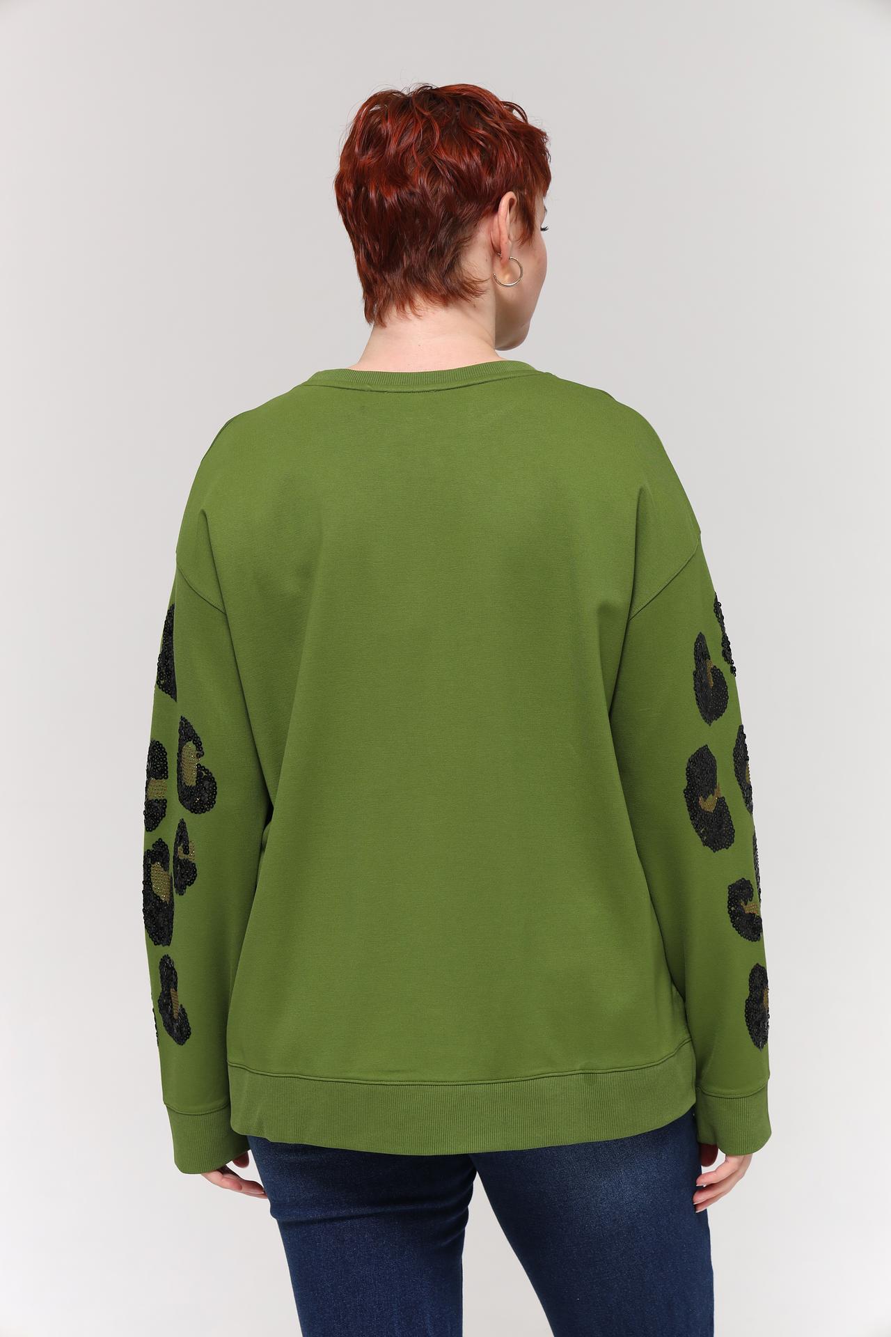 Пуловер Samoon зелёный с леопардовым принтом из пайеток