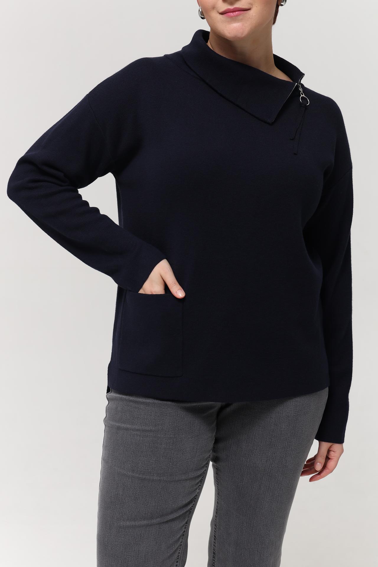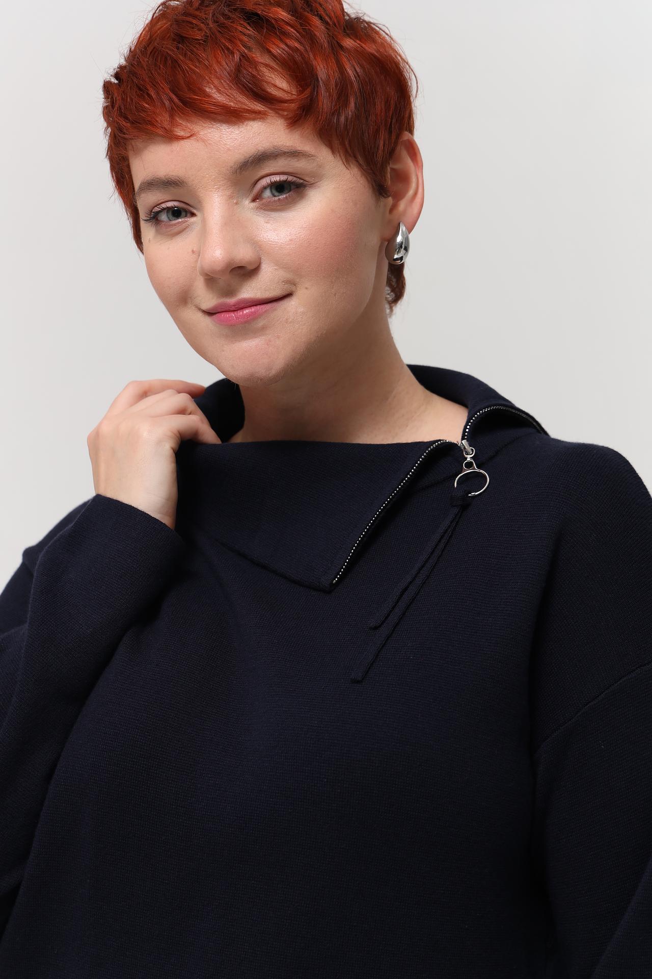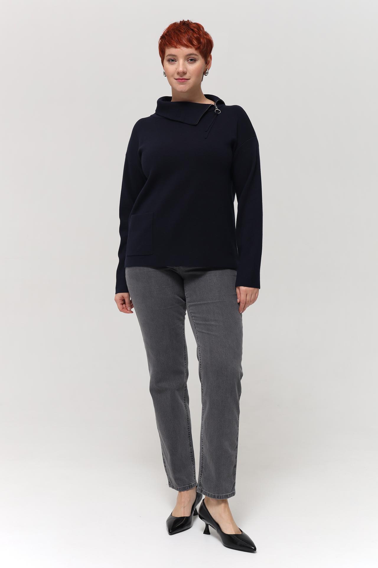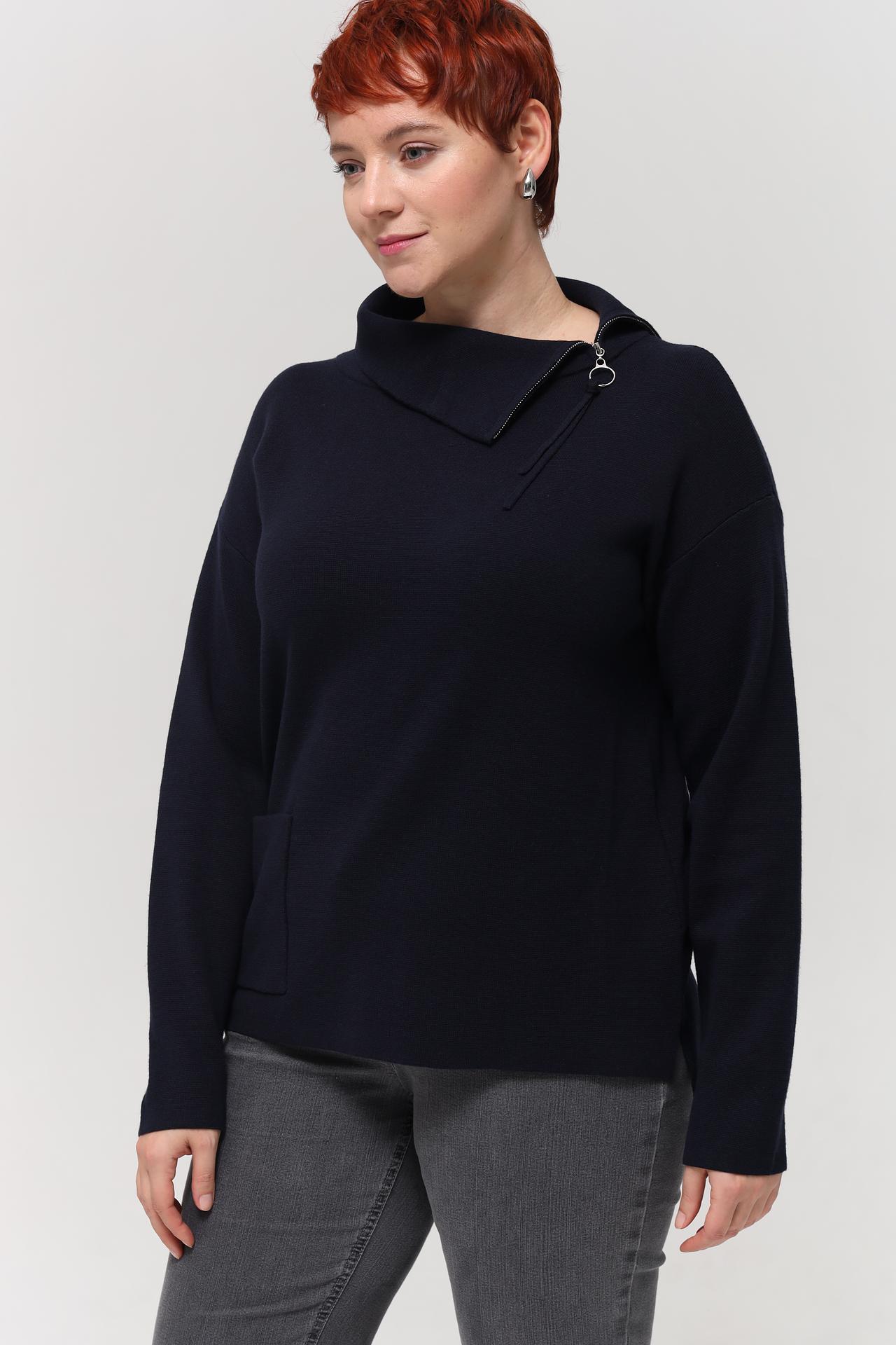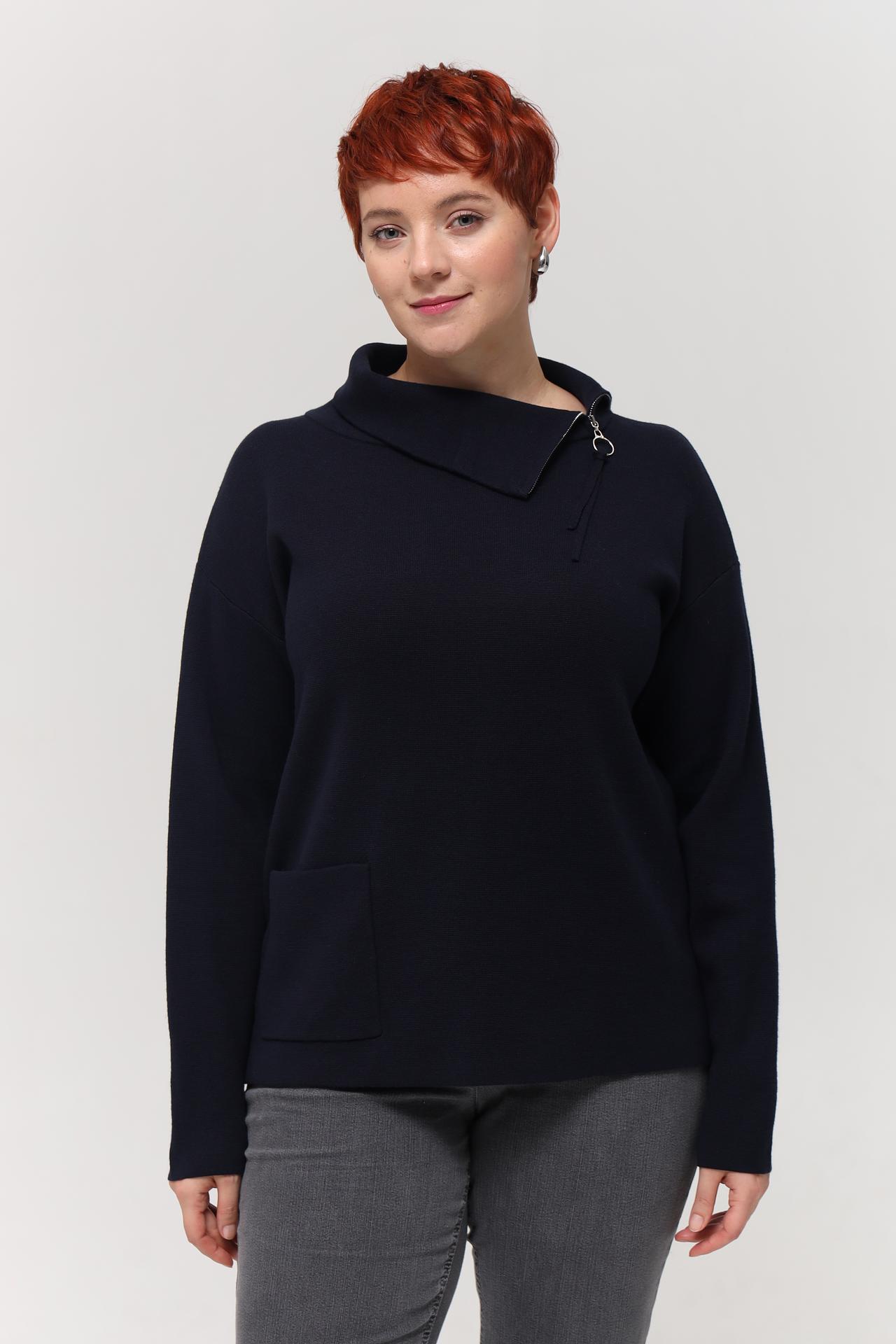 Пуловер Lebek Синий с асимметричным воротником и карманом