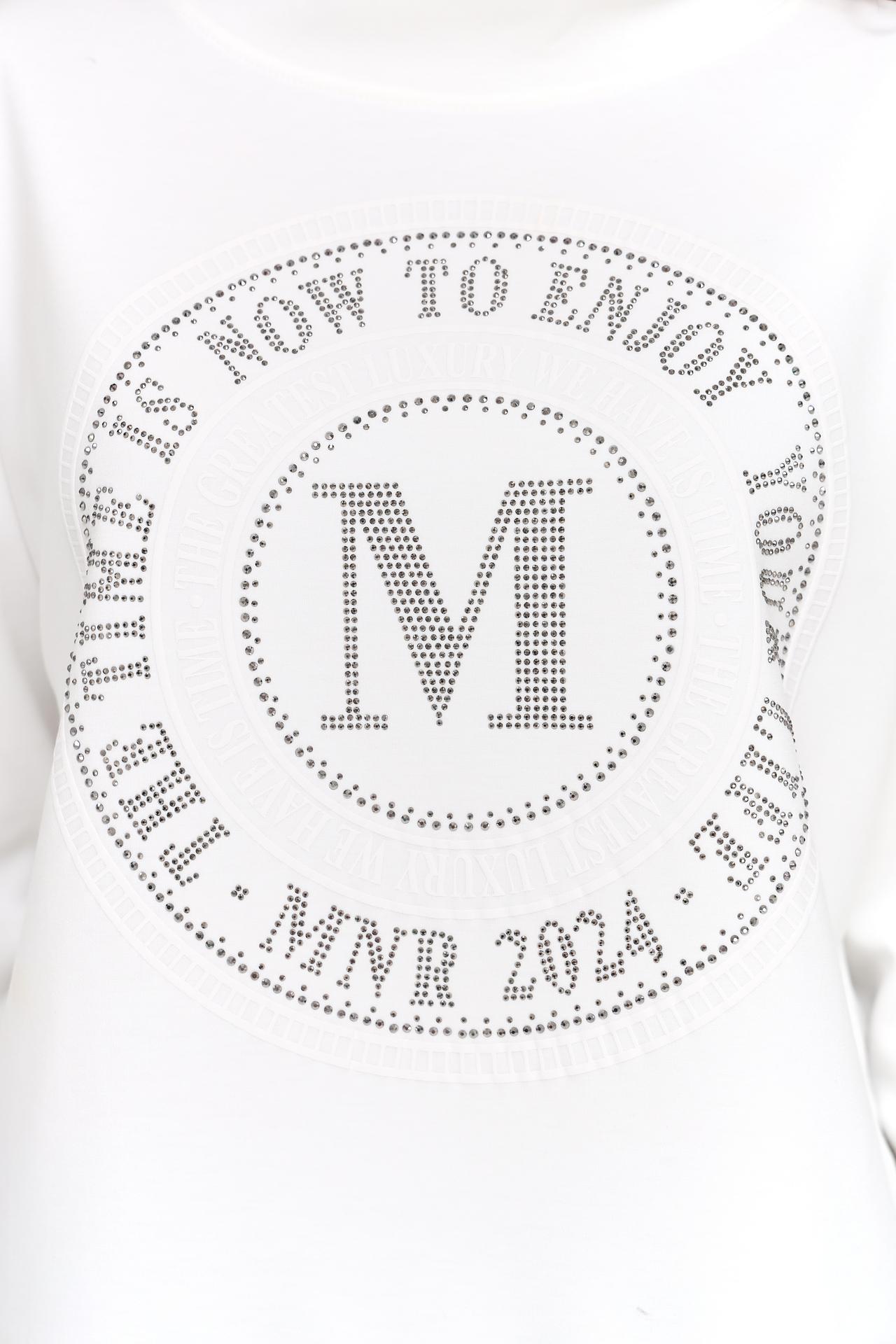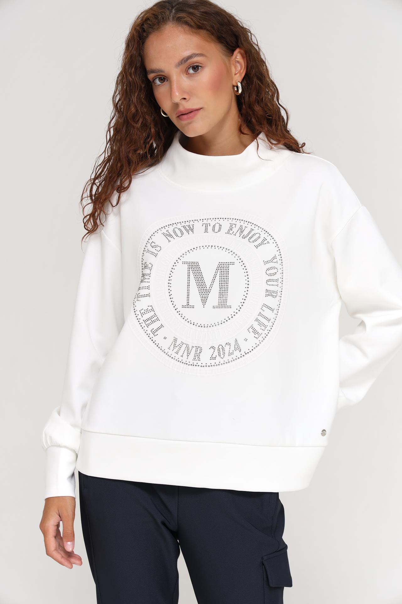 Женский пуловер Monari в классическом белом цвете – идеальный выбор для повседневного стиля и создания комфортного образа. Модель выполнена из качественного трикотажа, приятного к телу, обеспечивающего тепло и свободу движений. Центральным элементом дизайна является круглый логотип бренда, искусно выложенный сияющими стразами, который добавляет изделию модный акцент и элегантность.