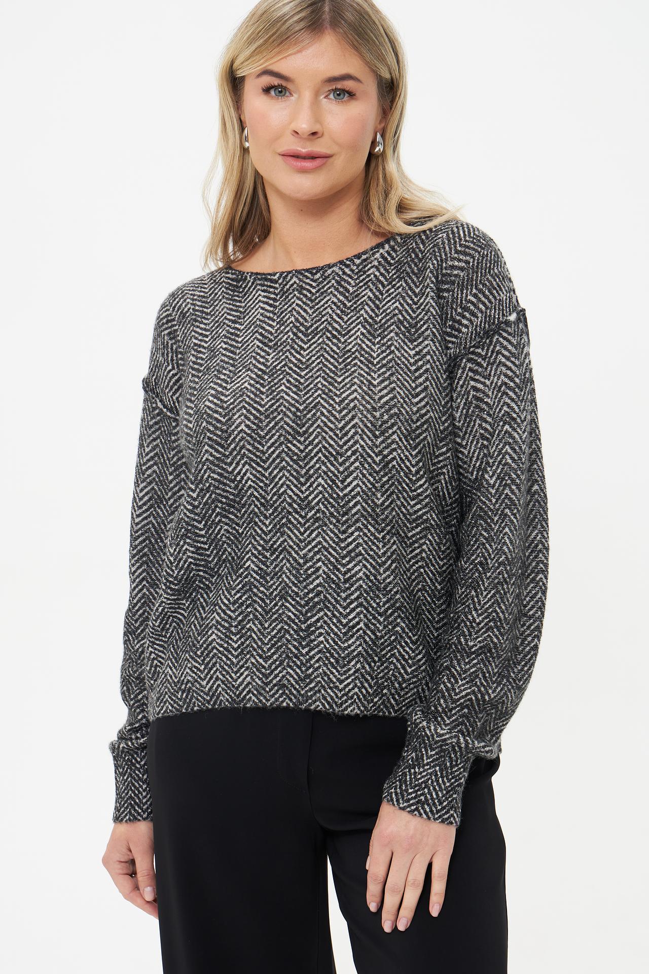 Пуловер Monari серый "ёлочка" с метализированными нитями