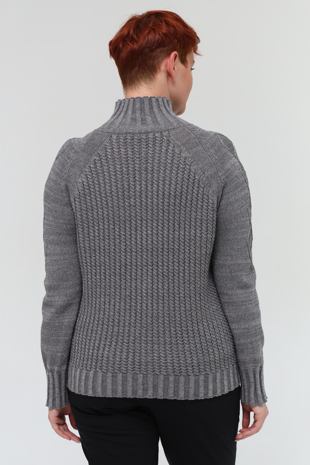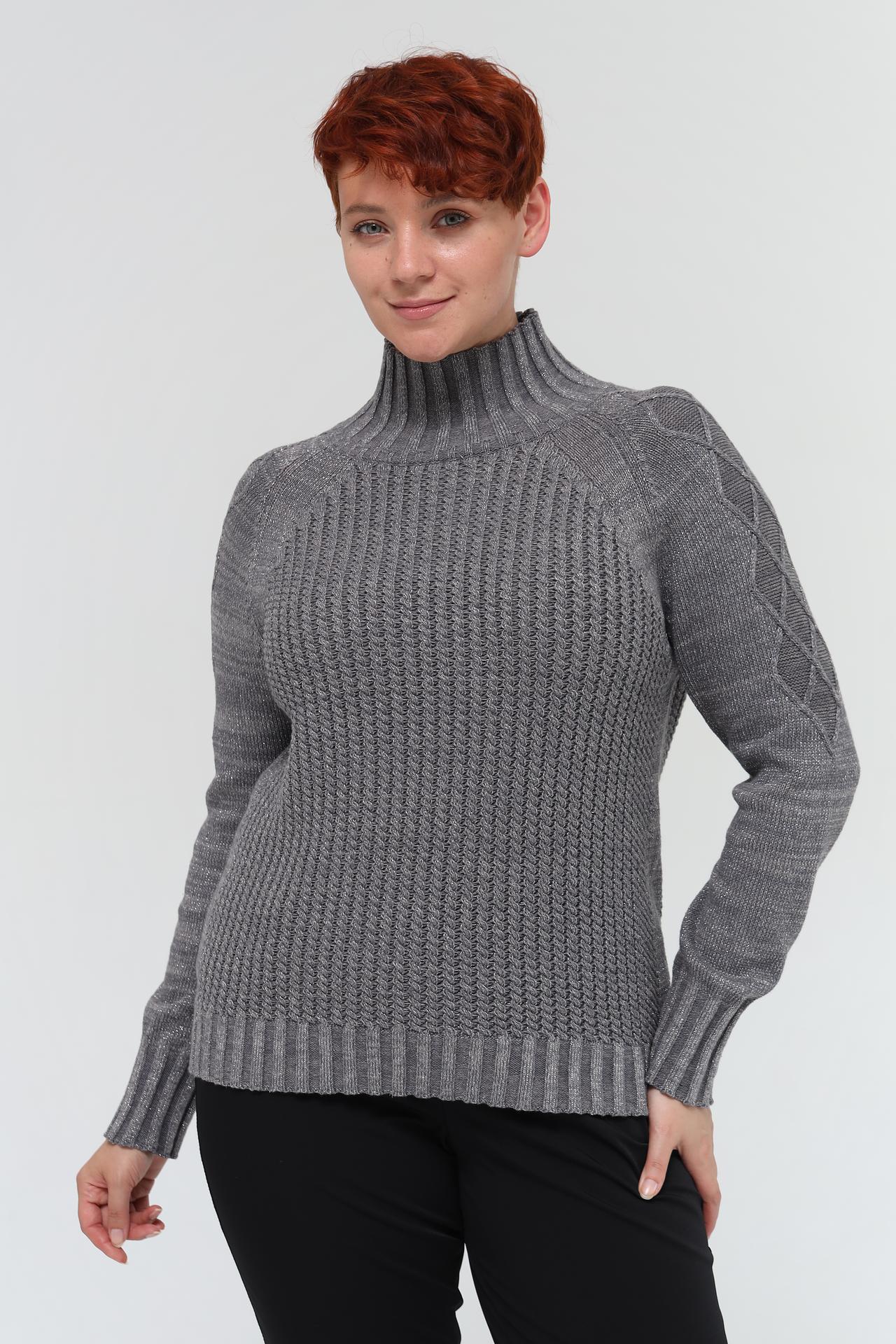- Дизайн: Высокий воротник-гольф и фактурный узор на полочке создают элегантный силуэт. Декоративные вставки в виде ромбов на рукавах добавляют изюминку и подчеркивают индивидуальность.