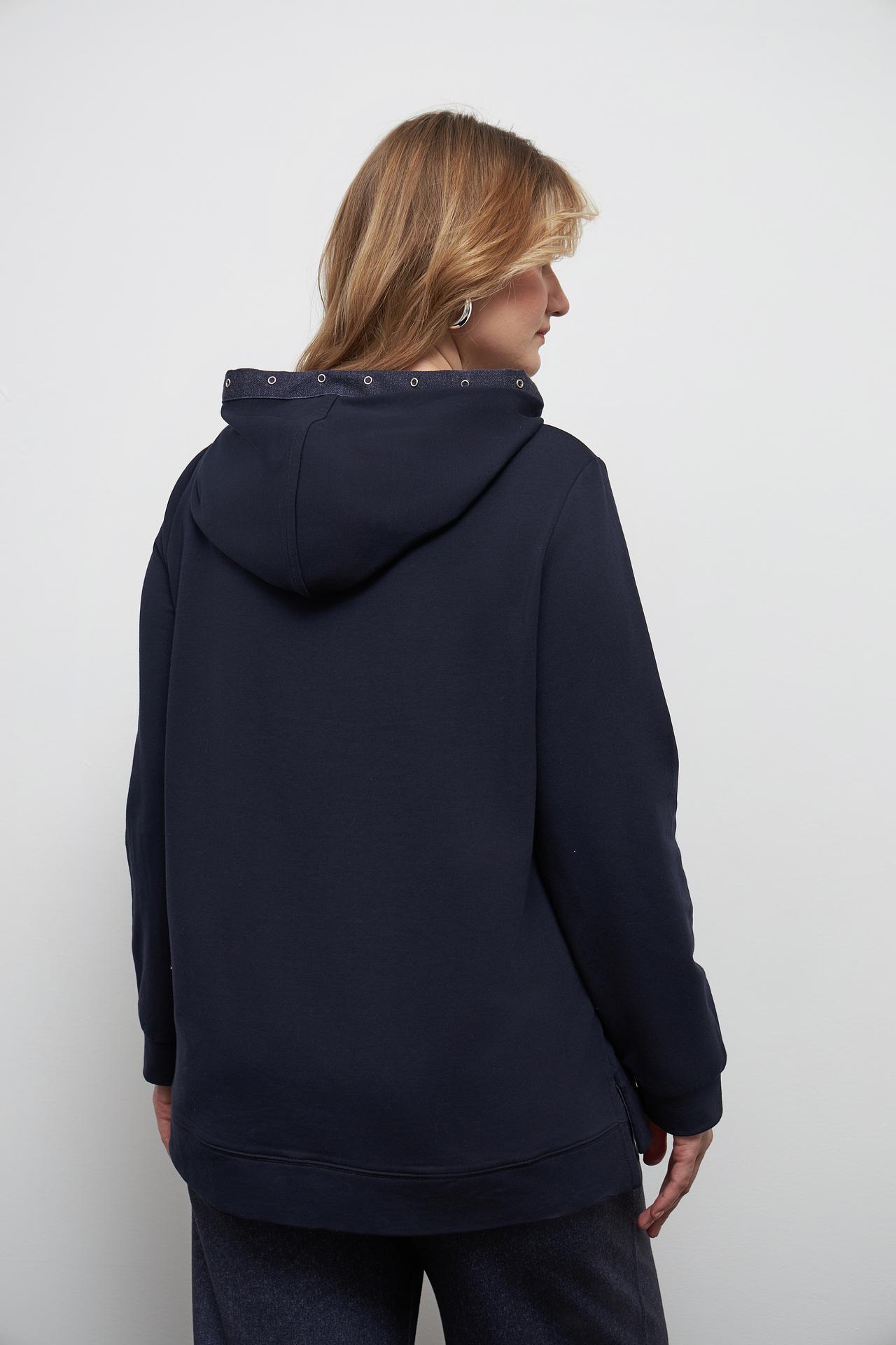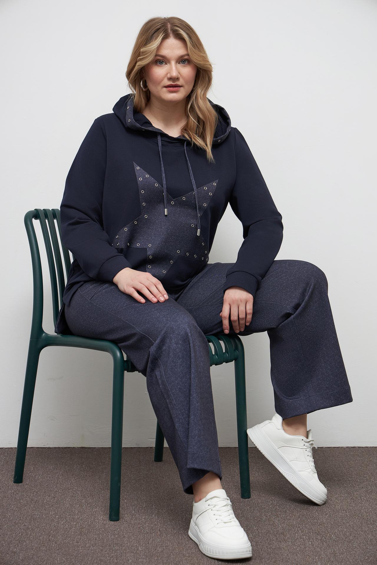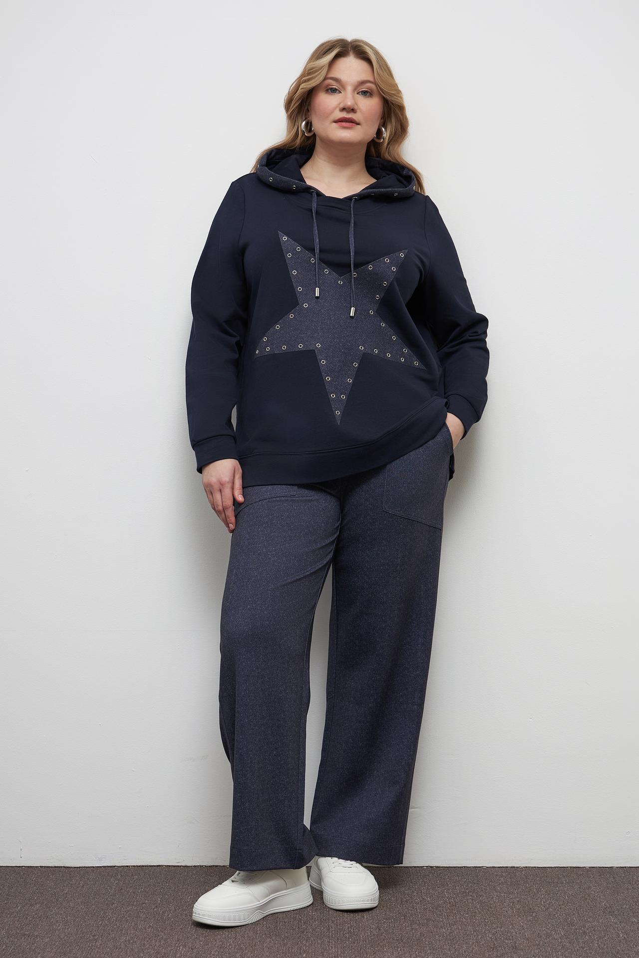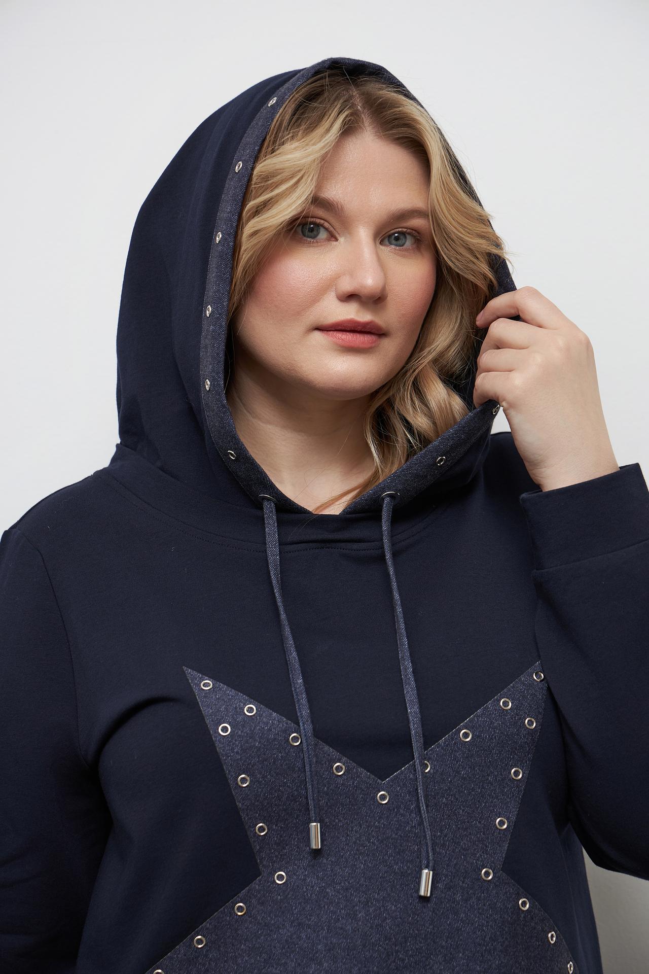 Стильный и комфортный женский пуловер с капюшоном от Via Appia. Этот мягкий пуловер, изготовленный из хлопка с добавлением эластана, идеально подойдет для создания уютного и модного образа. Отличительной особенностью модели является оригинальный декор в виде звезды, выполненной из материала, имитирующего джинсу и украшенной люверсами. Пуловер отлично подойдет для повседневной носки, прогулок или встреч с друзьями.