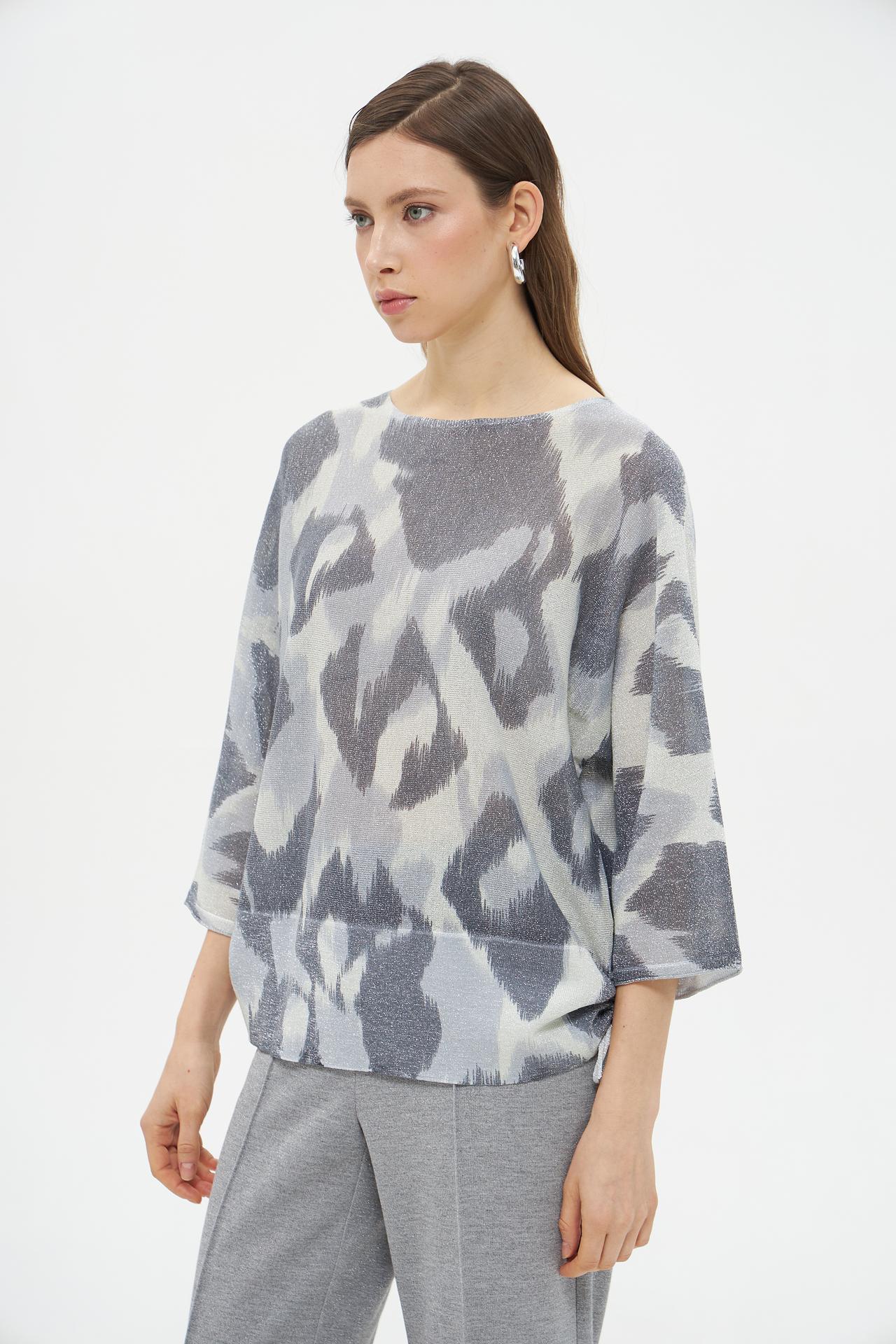 Стильный пуловер от Lecomte – идеальное дополнение к вашему повседневному гардеробу. Оригинальный принт в серо-бежевых тонах, дополненный мерцанием металлизированной нити, придает модели особую изысканность. Свободный крой и мягкая ткань обеспечивают максимальный комфорт в течение всего дня. Модель украшена актуальным в этом сезоне принтом, который сделает ваш образ неповторимым. Универсальный пуловер легко сочетается с различными элементами одежды, от джинсов до классических брюк, позволяя создавать множество стильных комплектов.
