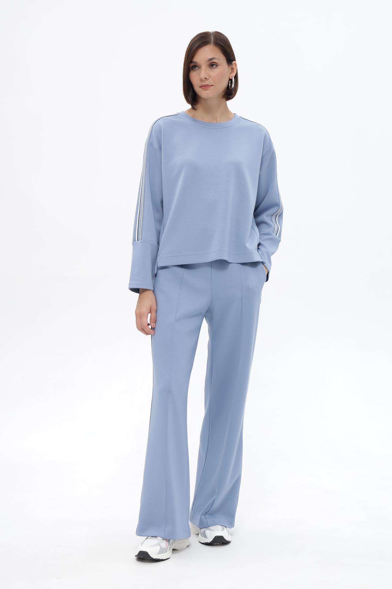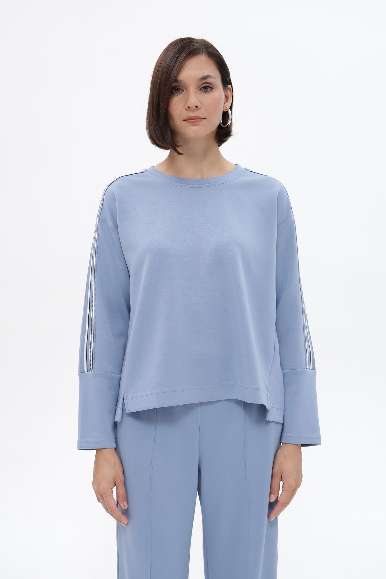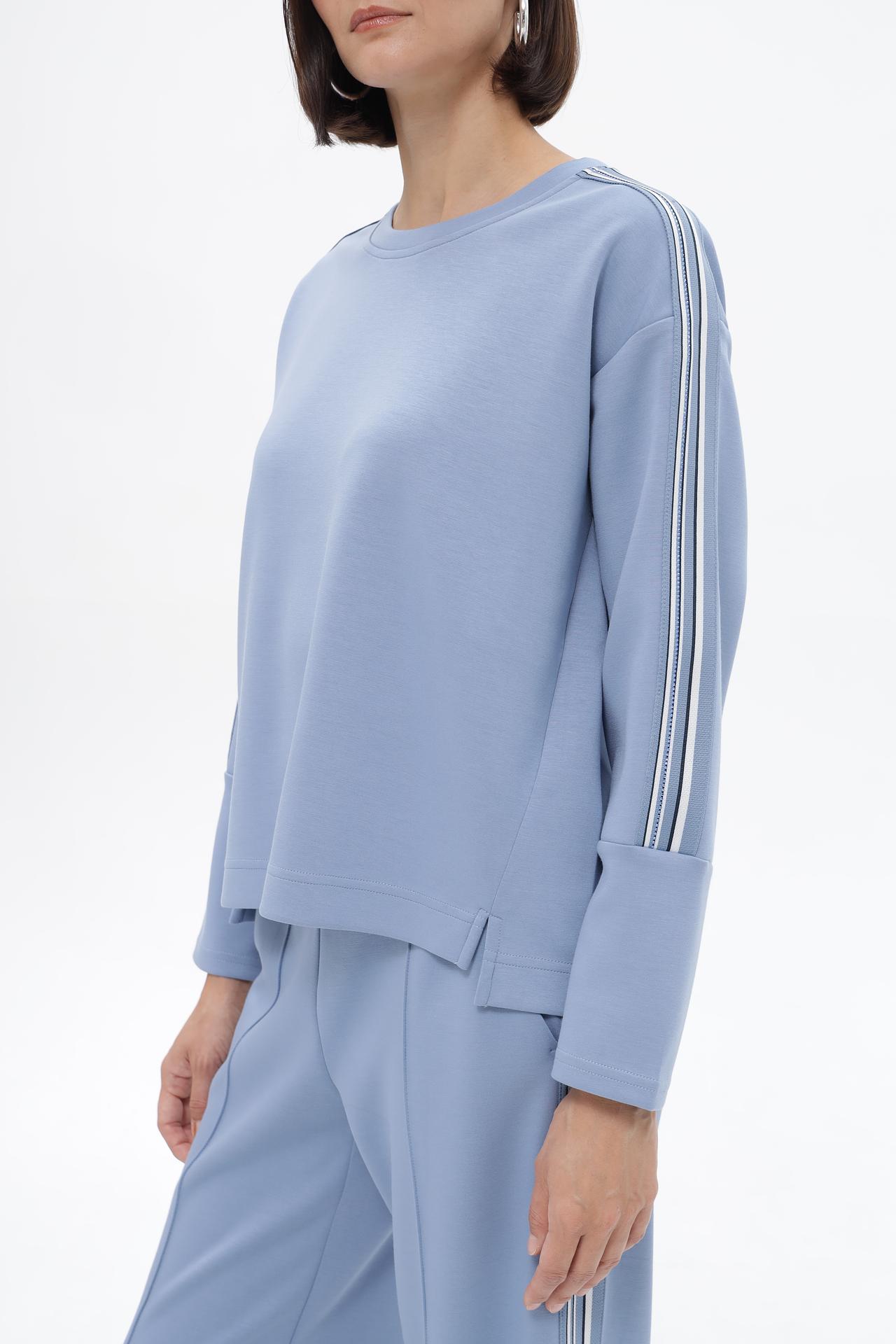 Элегантный пуловер Lecomte, выполненный в спокойном голубом оттенке, станет незаменимой частью вашего повседневного гардероба. Удобный крой и приятная на ощупь ткань обеспечивают комфорт в течение всего дня. Акцентные декоративные лампасы на рукавах добавляют изделию оригинальности и динамичности, делая образ более современным и стильным. Этот пуловер прекрасно сочетается как с брюками, так и с юбками, позволяя создавать разнообразные модные ансамбли.