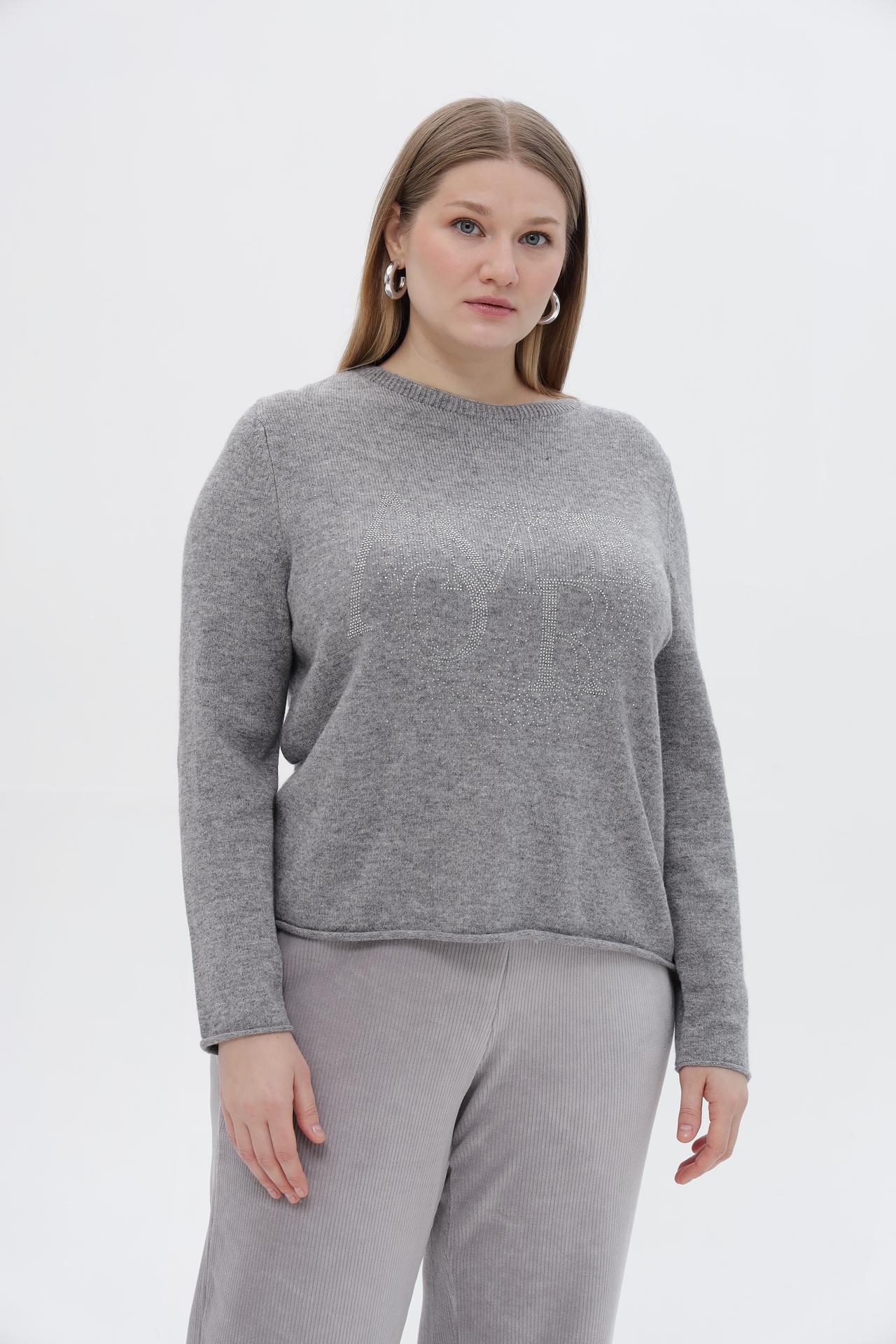 Пуловер Rabe collection серый со стразами