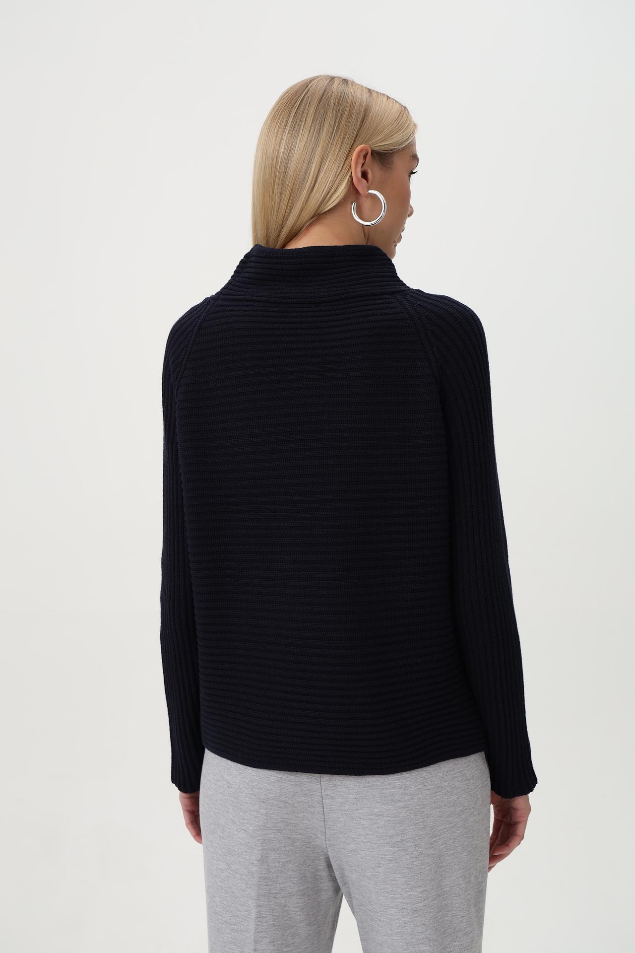 - Универсальность: Темно-синий цвет пуловера является классическим и легко сочетается с различными предметами гардероба, от джинсов до юбок, позволяя создавать как повседневные, так и более нарядные комплекты.