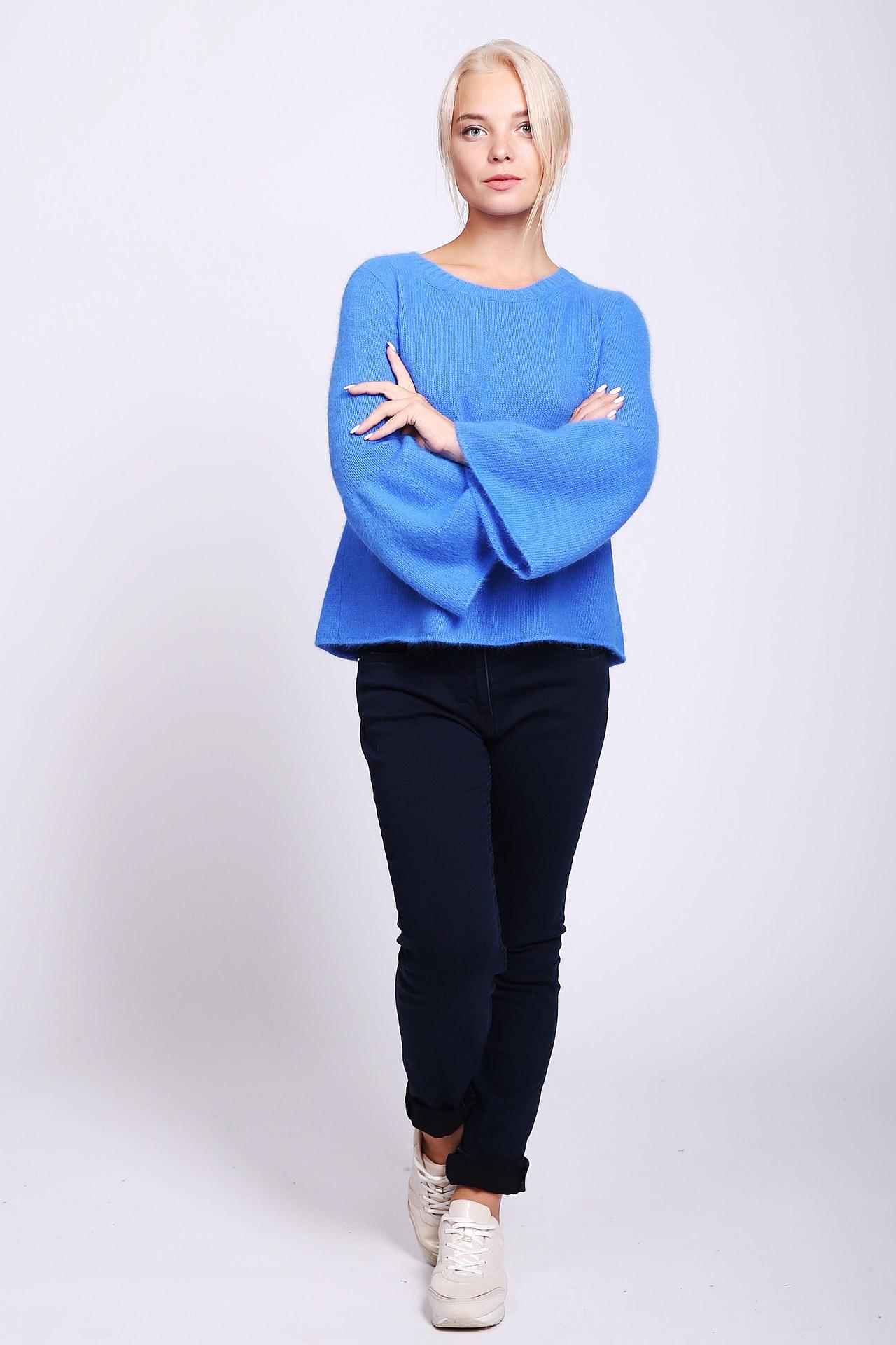 - Универсальность стиля. Голубой пуловер легко комбинируется как с классическими брюками и юбками, так и с джинсами, создавая множество образов. Это идеальный выбор для повседневного стиля или особого случая.