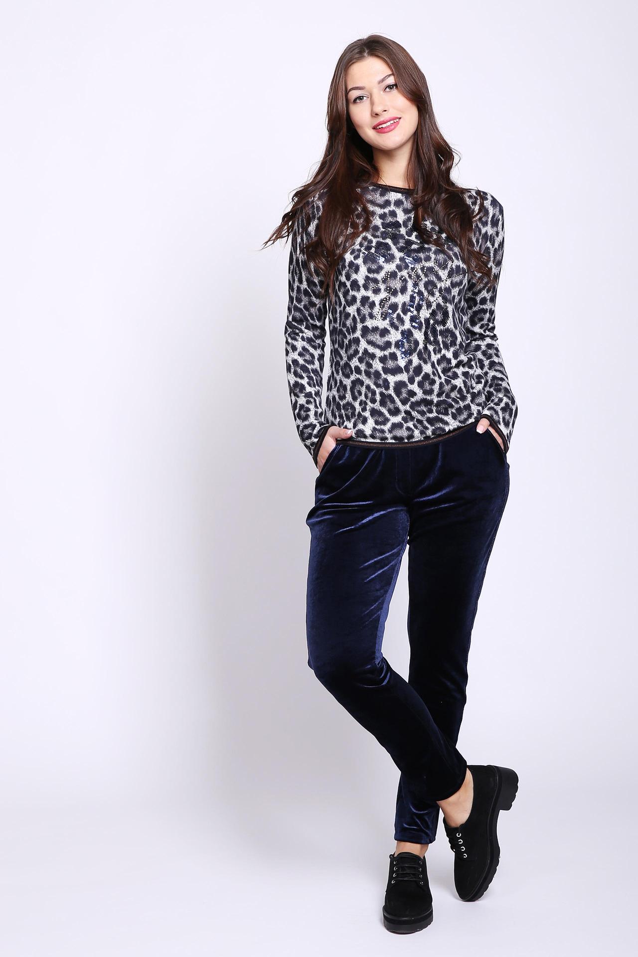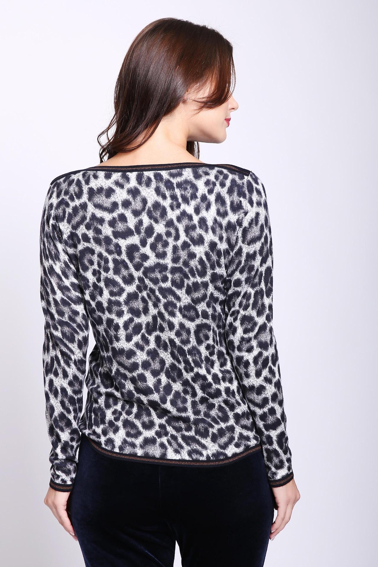 Пуловер разноцветного цвета фирмы Betty Barclay. Модель выполнена прямым покроем. Изделие дополнено округлым воротом, длинными рукавами. Все детали обшиты тесьмой черного цвета. Передняя часть полувера украшена стразами. Гармонировать можно с различными брюками.
