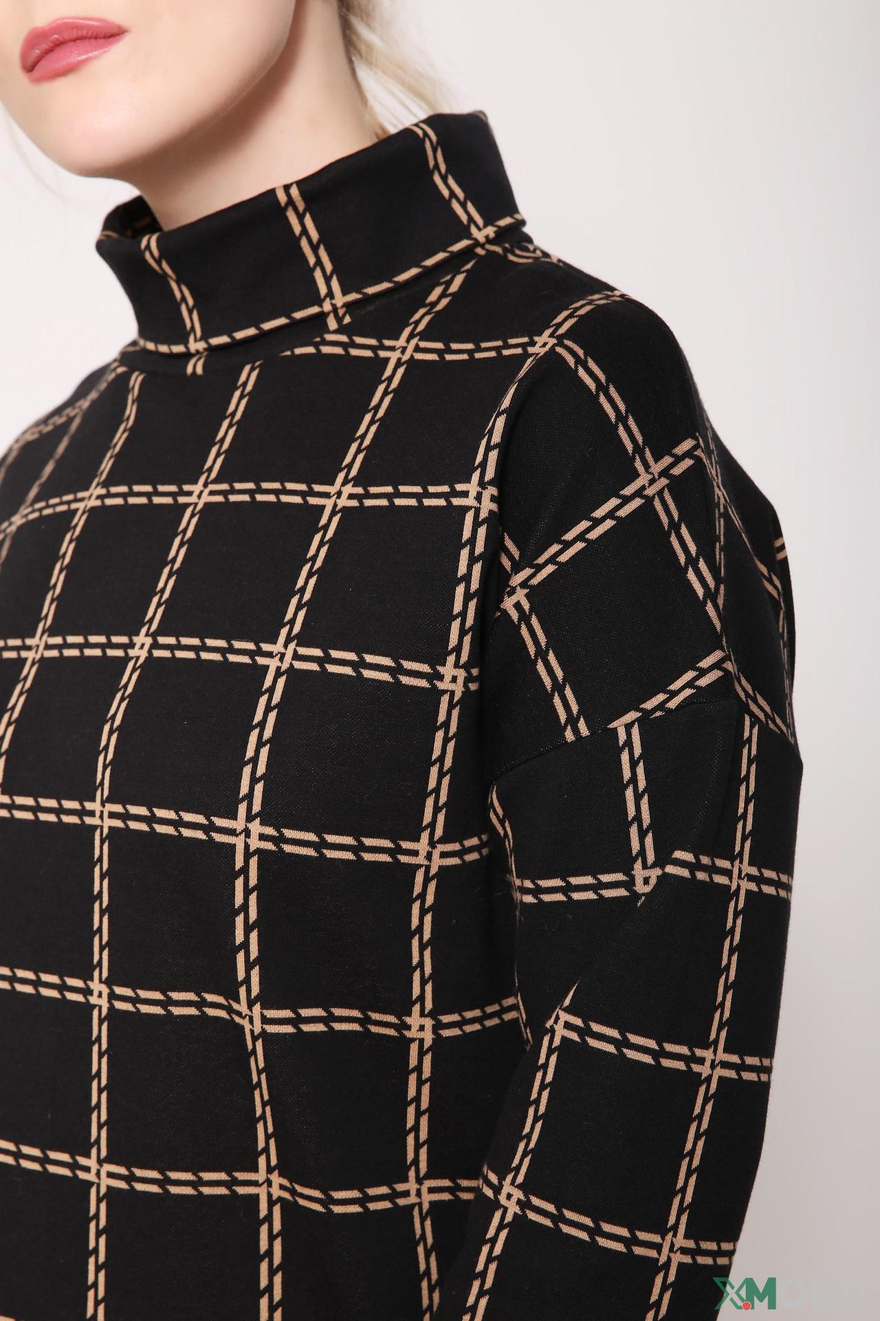 - Дизайн: Классический черный цвет в сочетании с контрастной клеткой и отделкой в виде декоративных строчек создает утонченный образ.