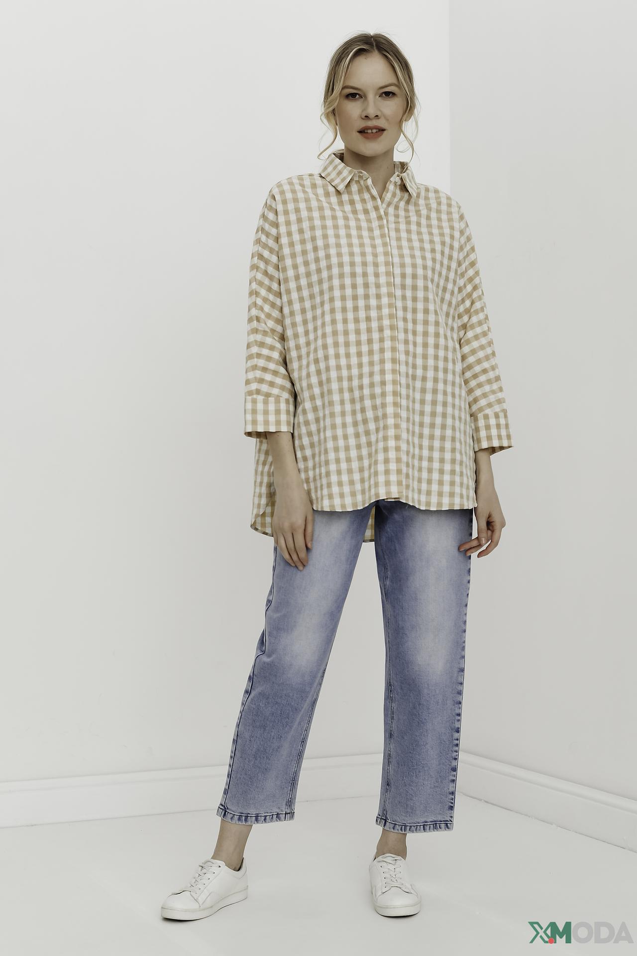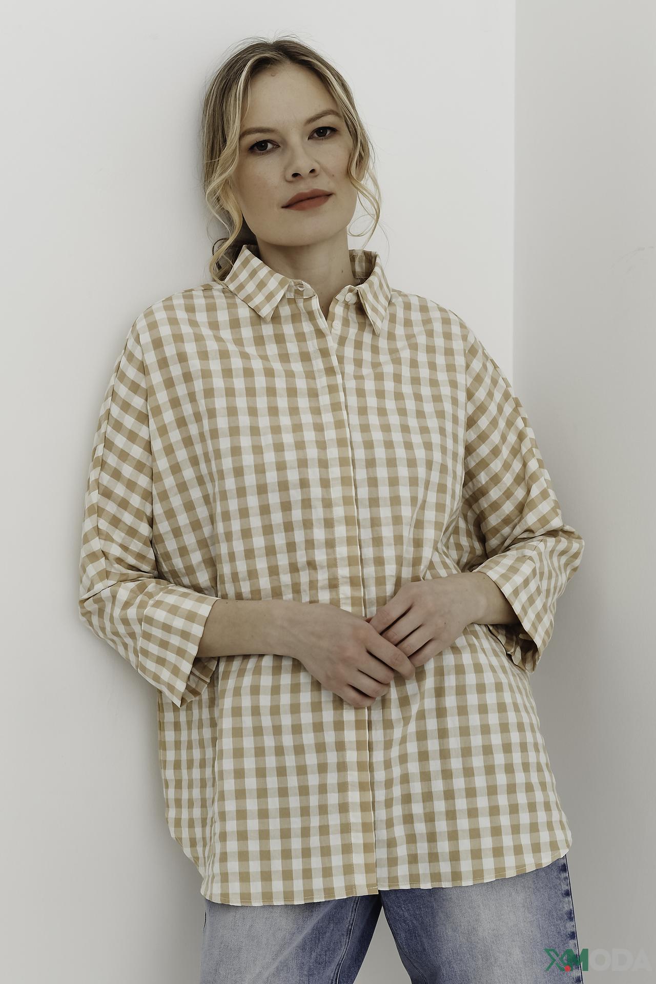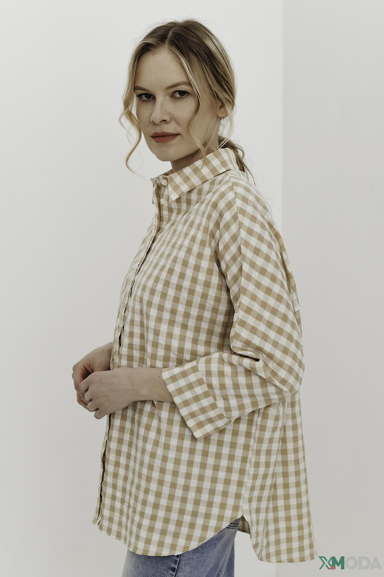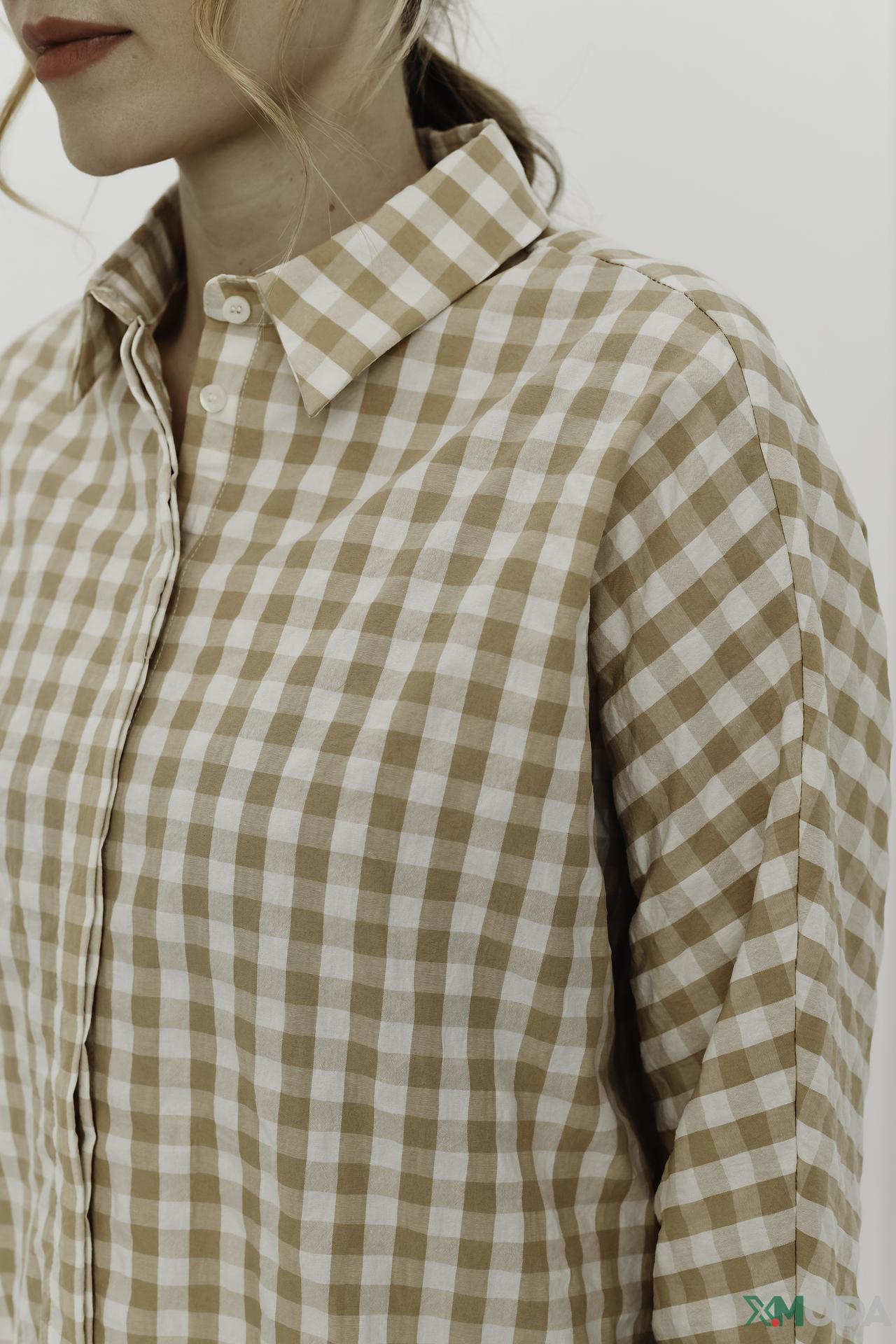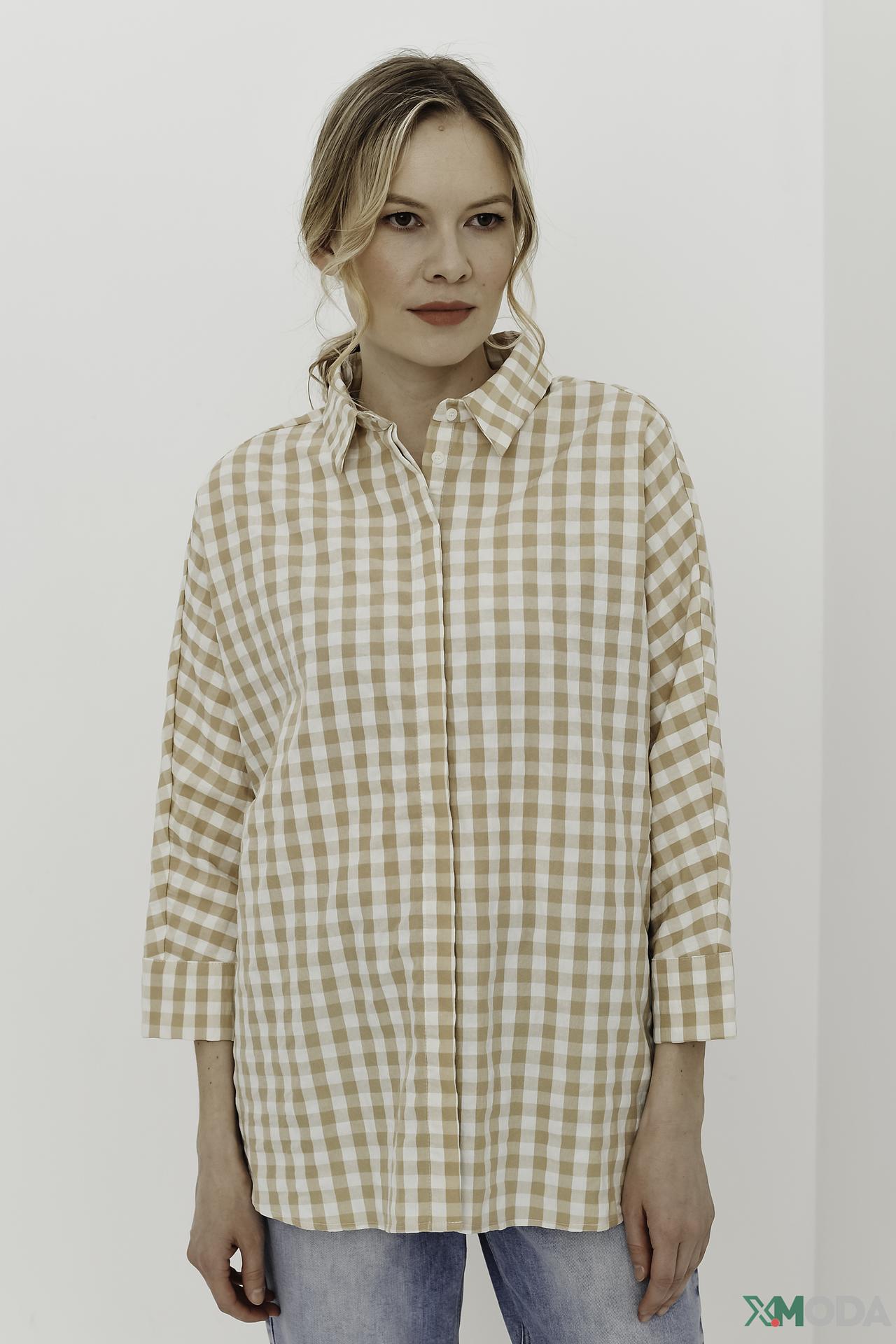 Рубашка Oui в клетку бежево-белая