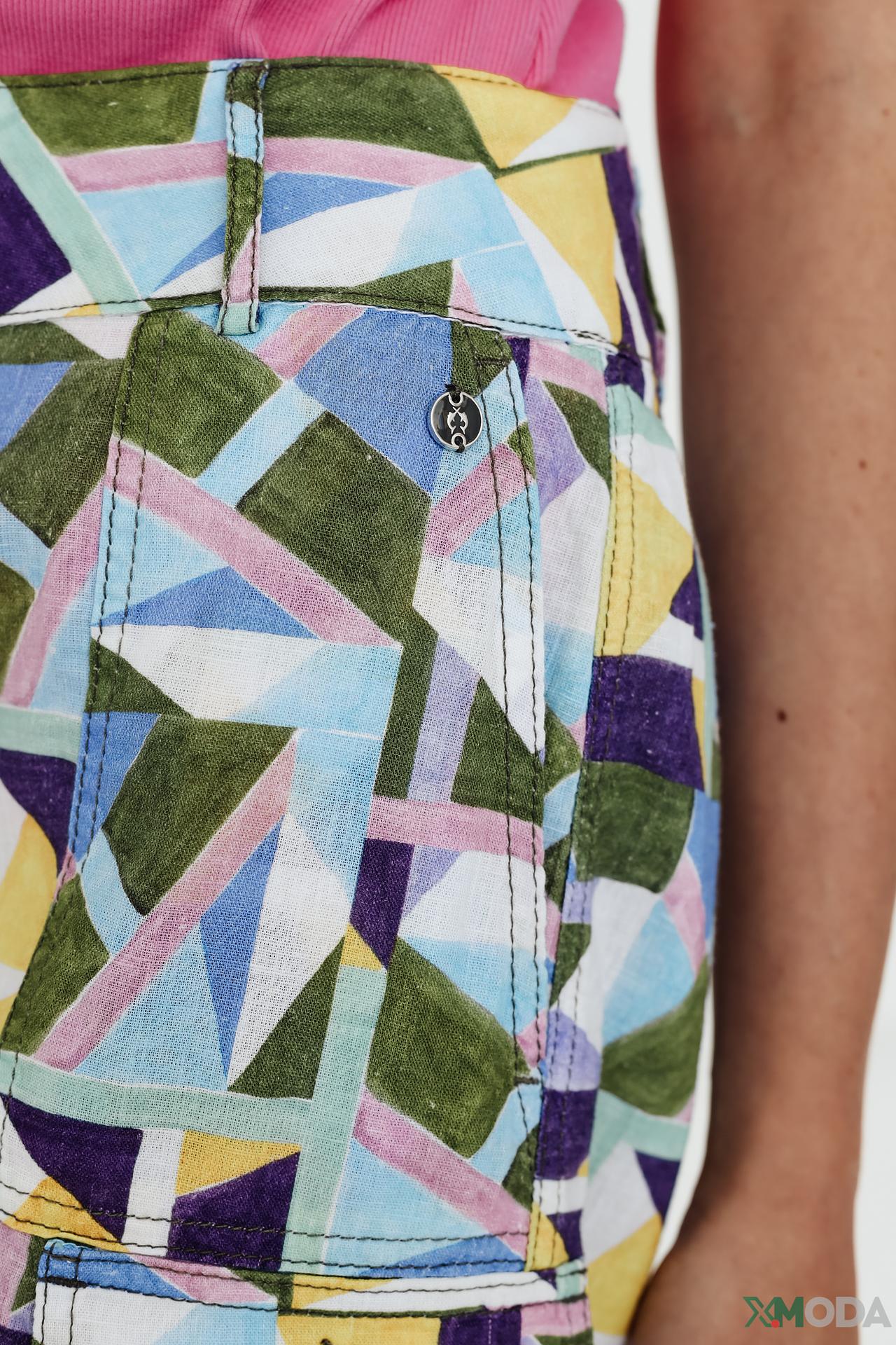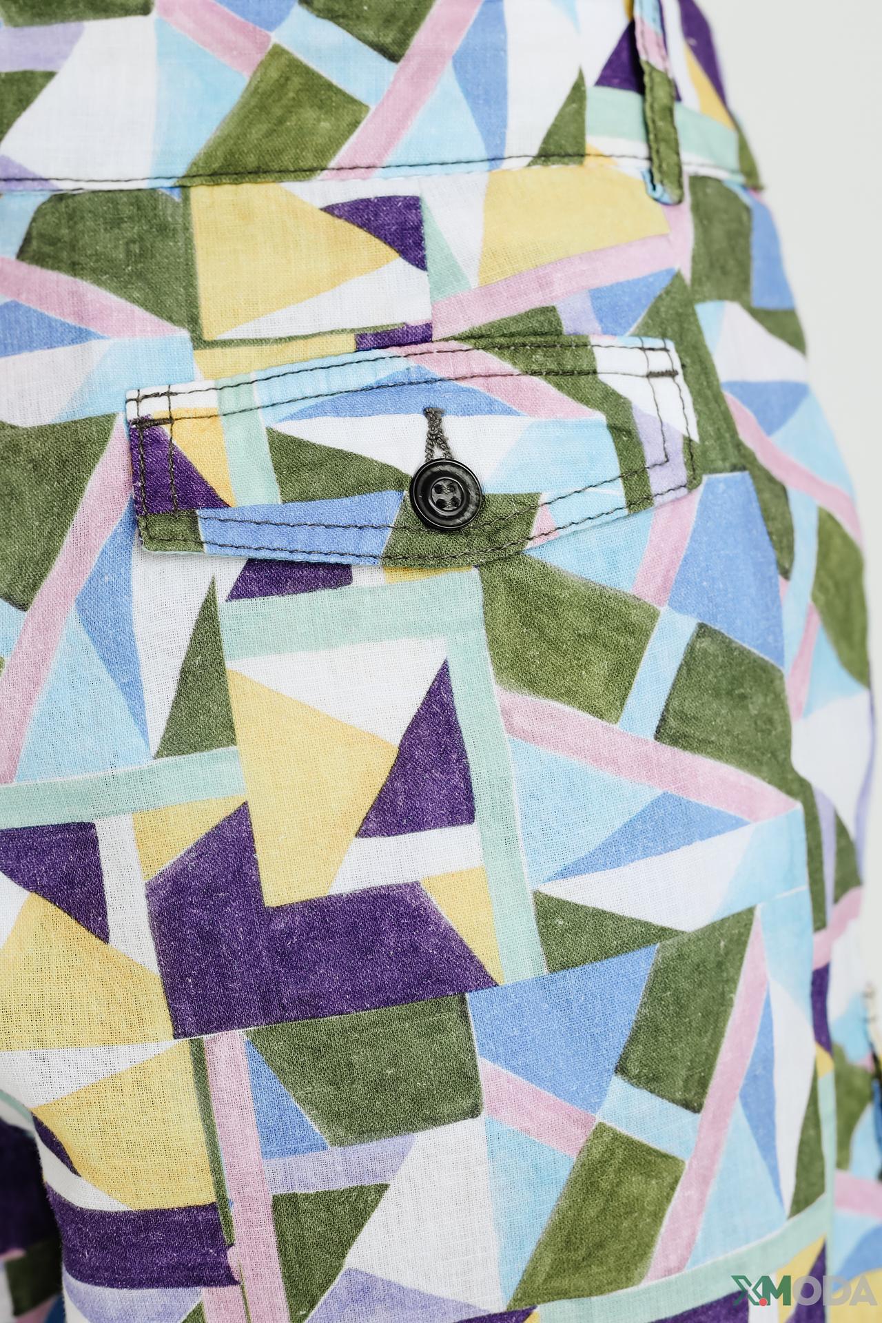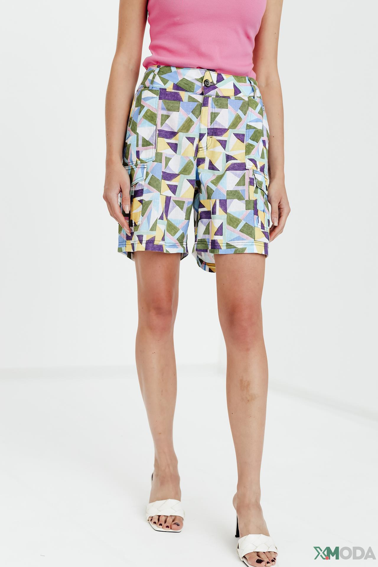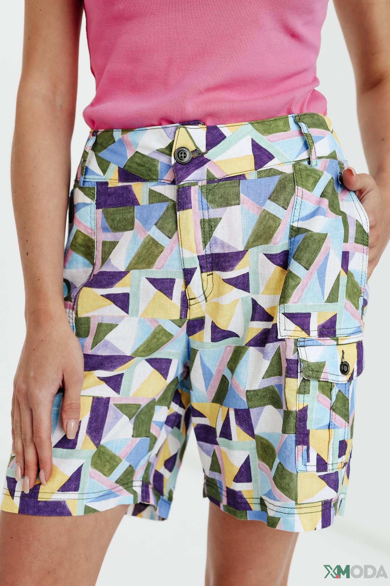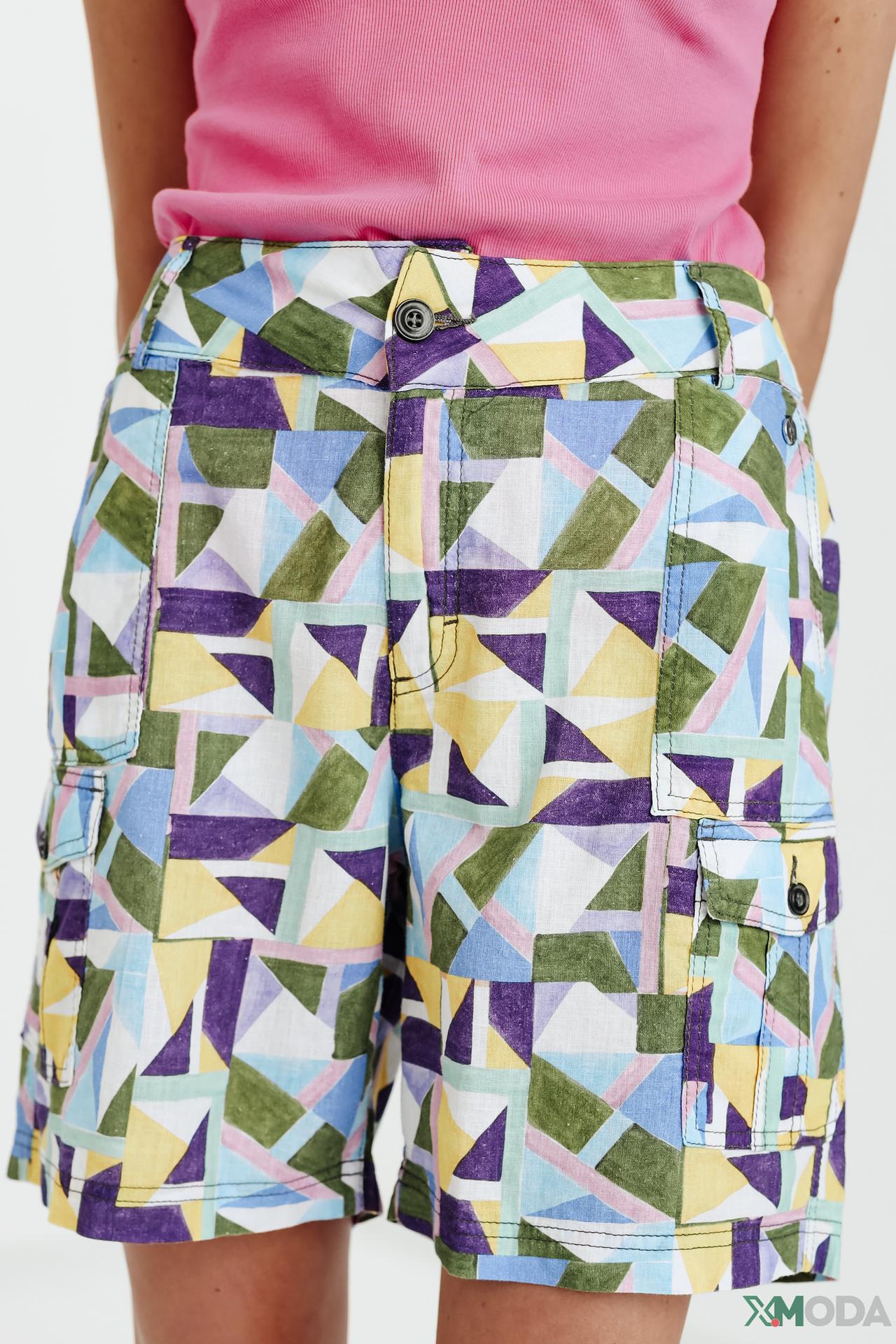 - Яркий дизайн: Разноцветный геометрический принт выделяет шорты, делая их стильным акцентом любого летнего образа.