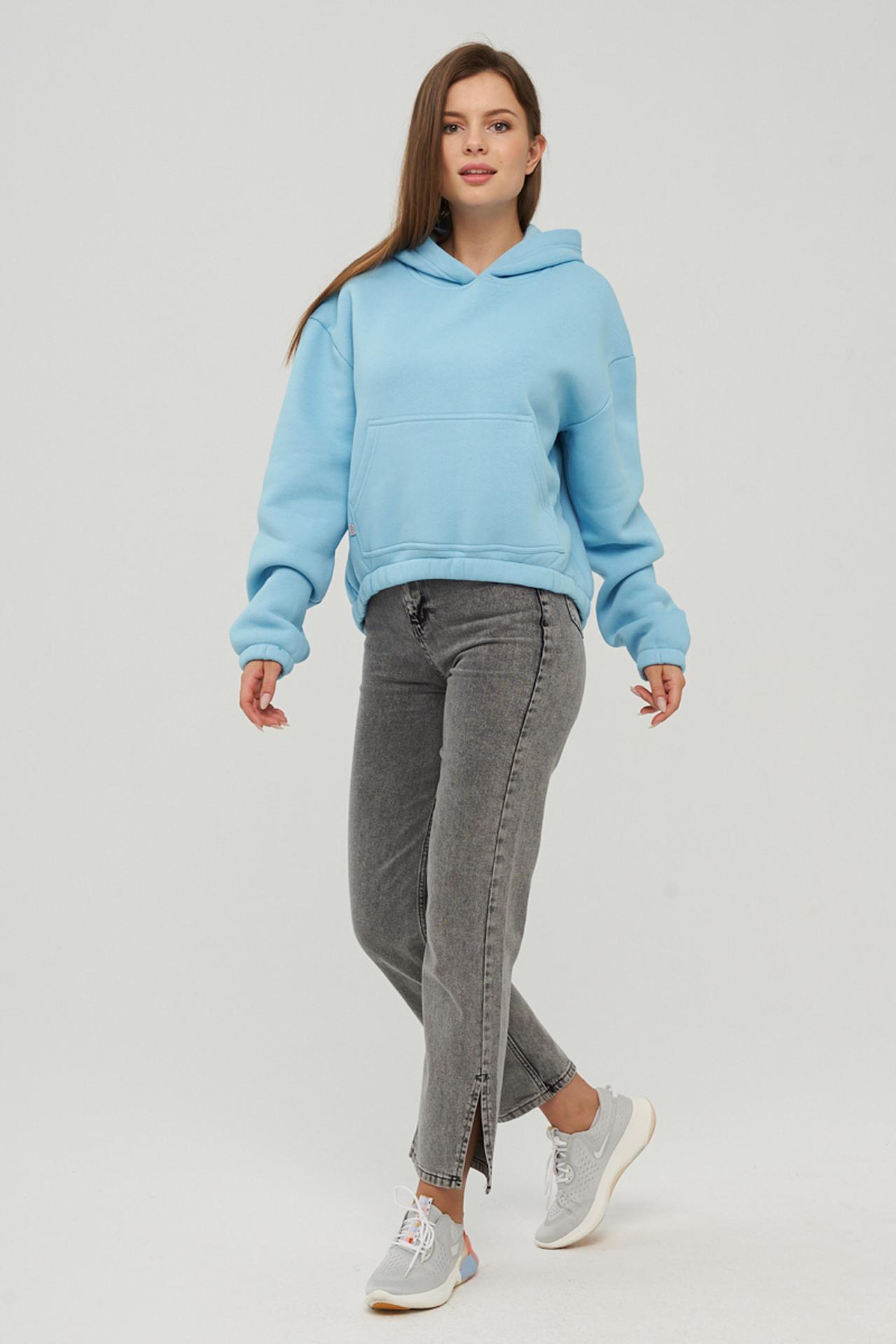 Толстовка VAY оверсайз укороченная голубая с карманом кенгуру
