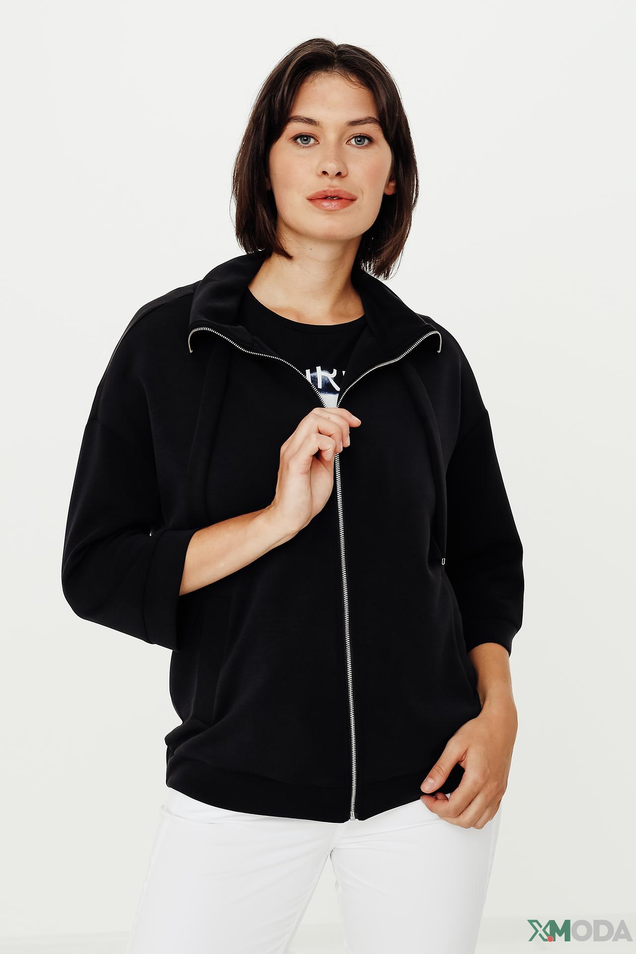 Толстовка Comma чёрного цвета имеет прямой крой и удобную молнию по всей длине, что делает её универсальной и практичной. Сочетайте её с джинсами, юбками или брюками для создания различных образов. Эта толстовка – отличный выбор для тех, кто ценит комфорт и стиль.