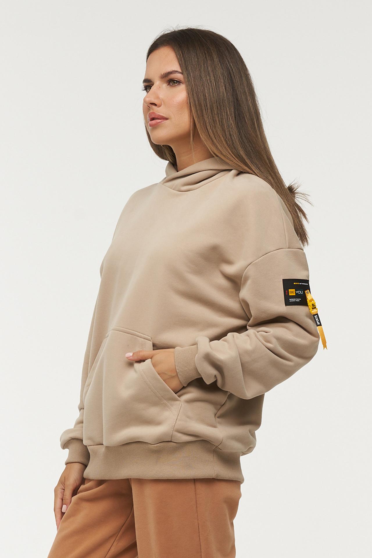 Толстовка BE YOU бежевая с декоративными элементами