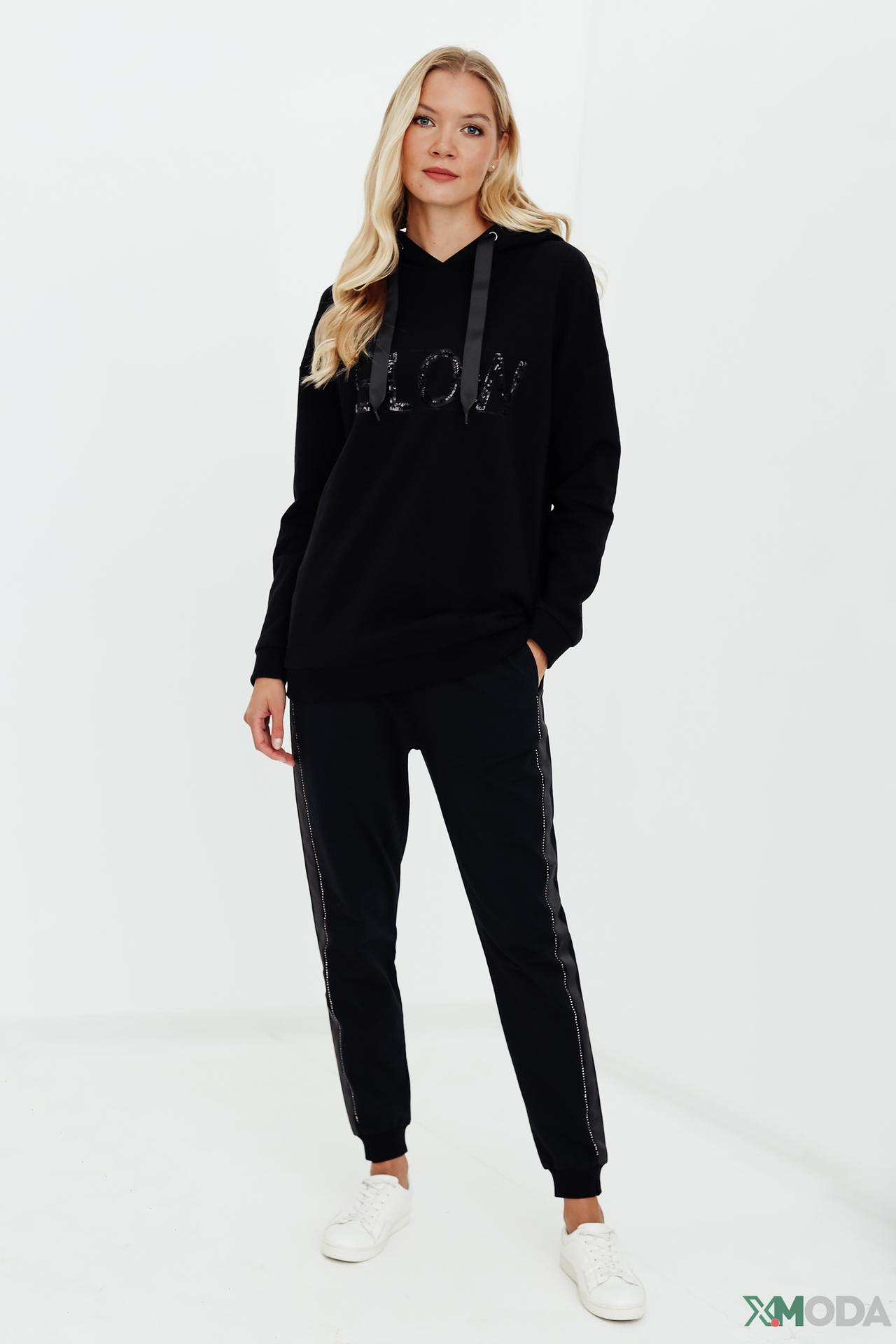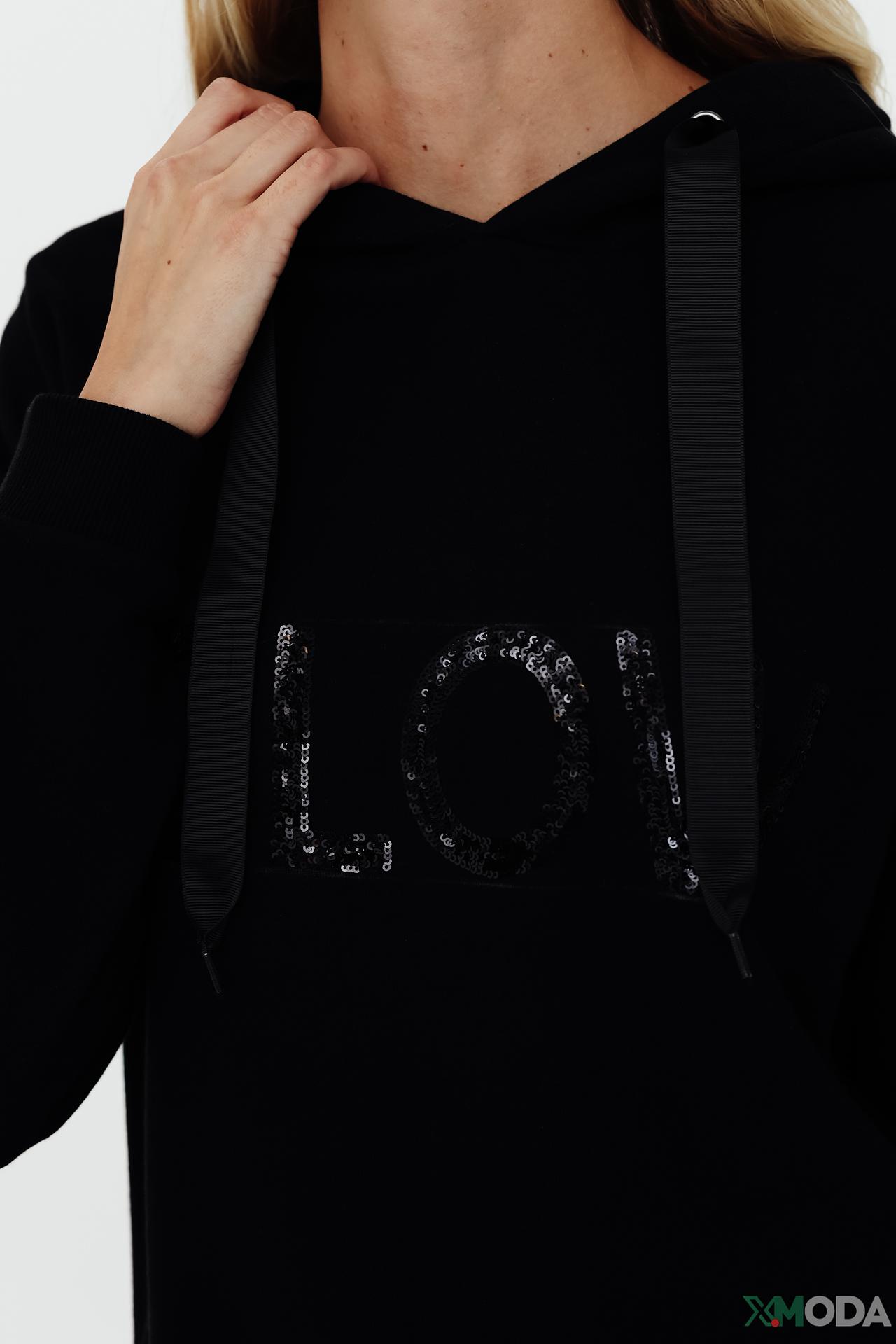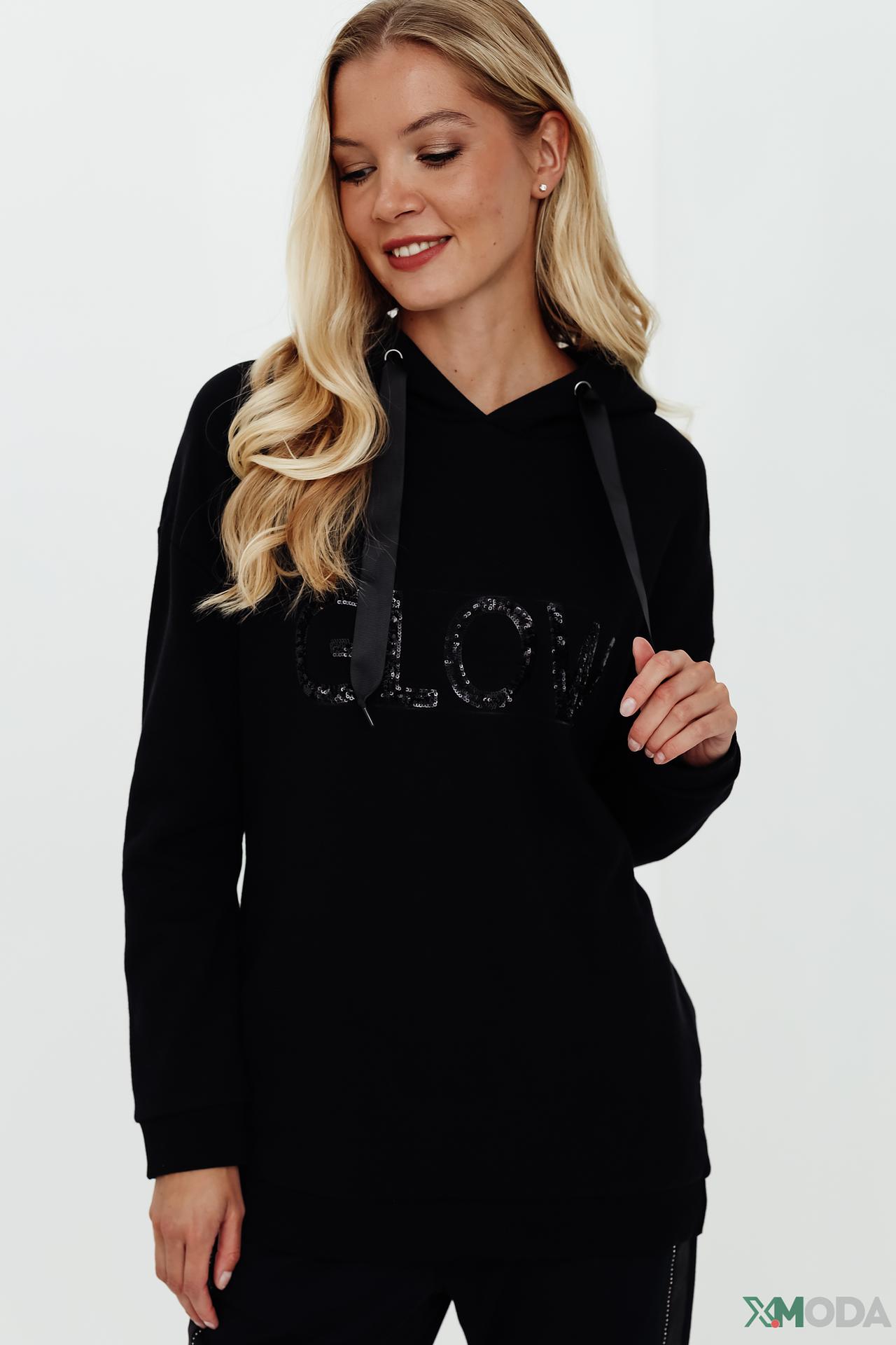 - Оригинальный дизайн. Декоративная надпись из пайеток добавляет образу изюминку и делает эту толстовку особенной.