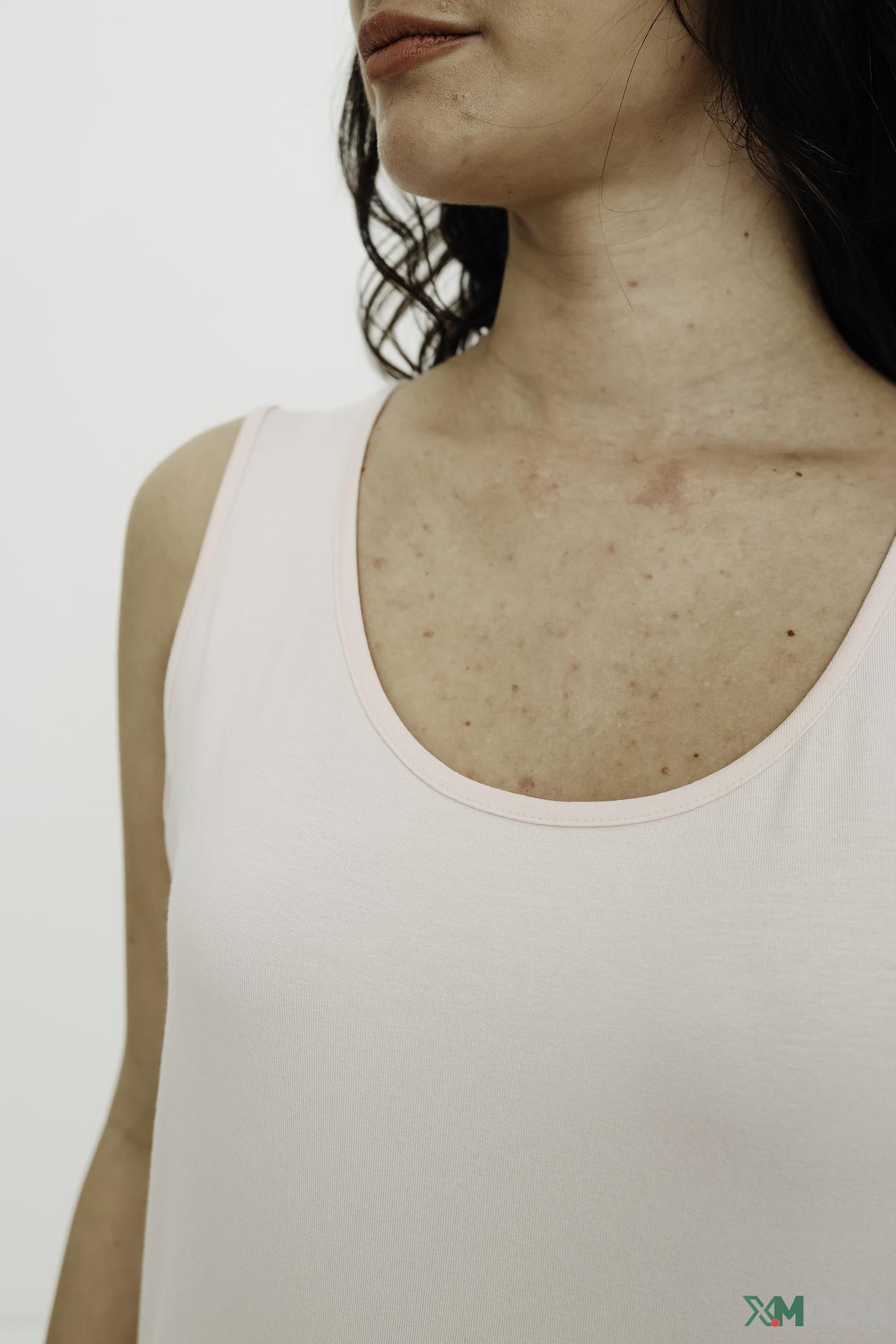 - Универсальный дизайн. Классический крой и круглый вырез делают этот базовый топ универсальным. Он идеально подходит для создания многослойных комплектов или как самостоятельная деталь летнего гардероба.