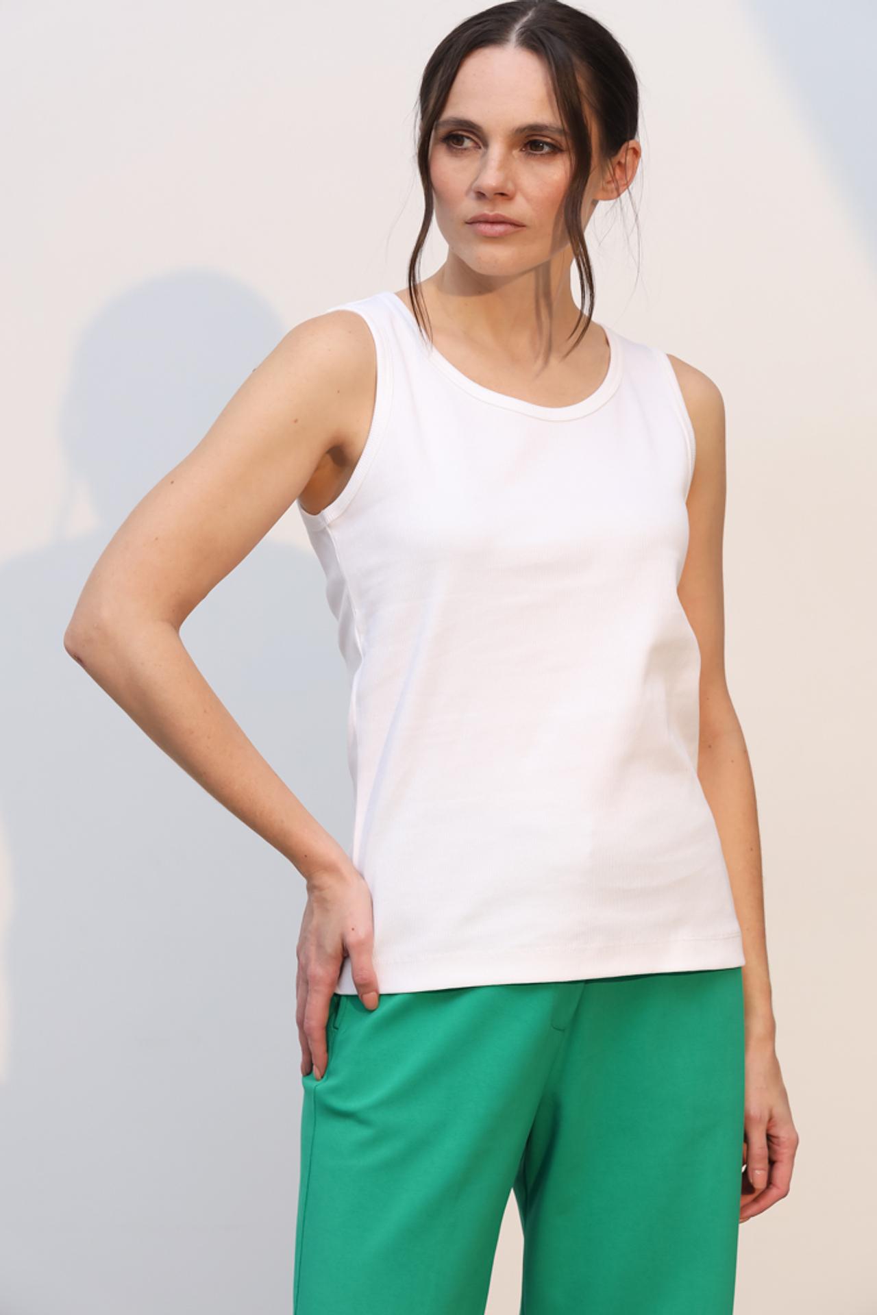 Базовый топ – незаменимая вещь в гардеробе каждой женщины. Этот универсальный топ белого цвета идеально подходит для создания множества образов, от повседневных до более элегантных. Он прекрасно сочетается с джинсами, юбками, шортами и пиджаками, позволяя вам экспериментировать со стилем и всегда выглядеть безупречно.