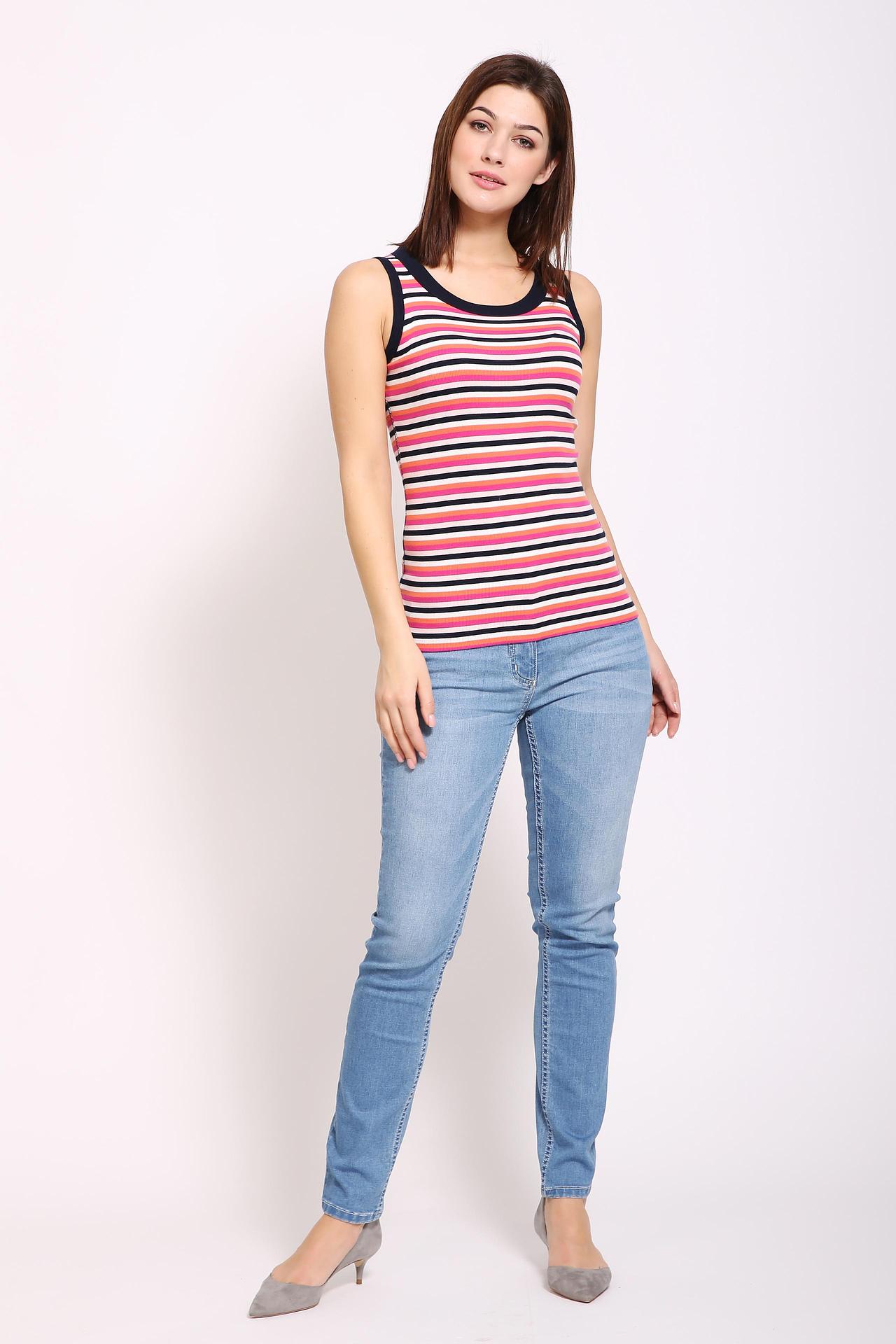 Полосатый дизайн добавляет оригинальности и делает топ еще более привлекательным. Благодаря добавлению эластана, топ хорошо тянется, обеспечивая отличную посадку по фигуре и свободу движений. Он прекрасно сочетается с джинсами, юбками и брюками.