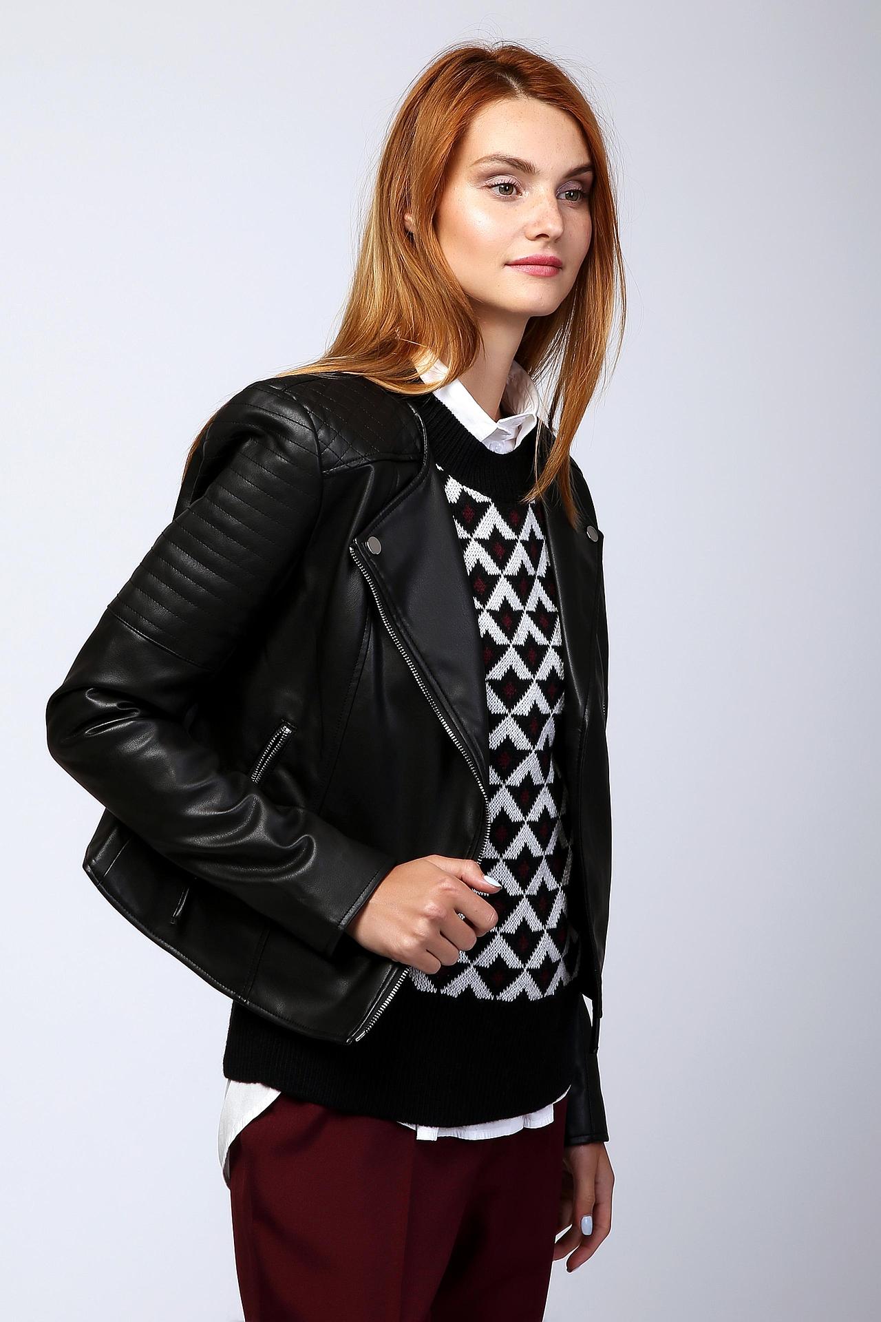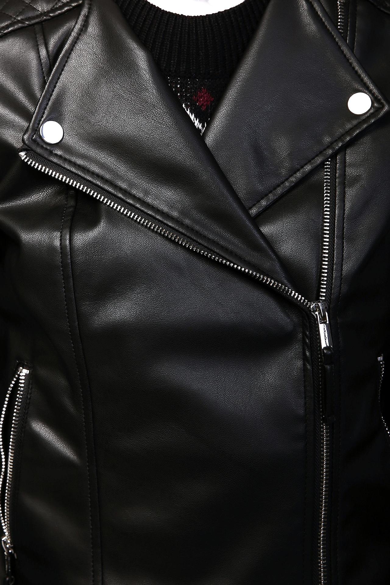 - Дизайн: Классический крой косухи с асимметричной молнией и декоративными элементами на плечах.