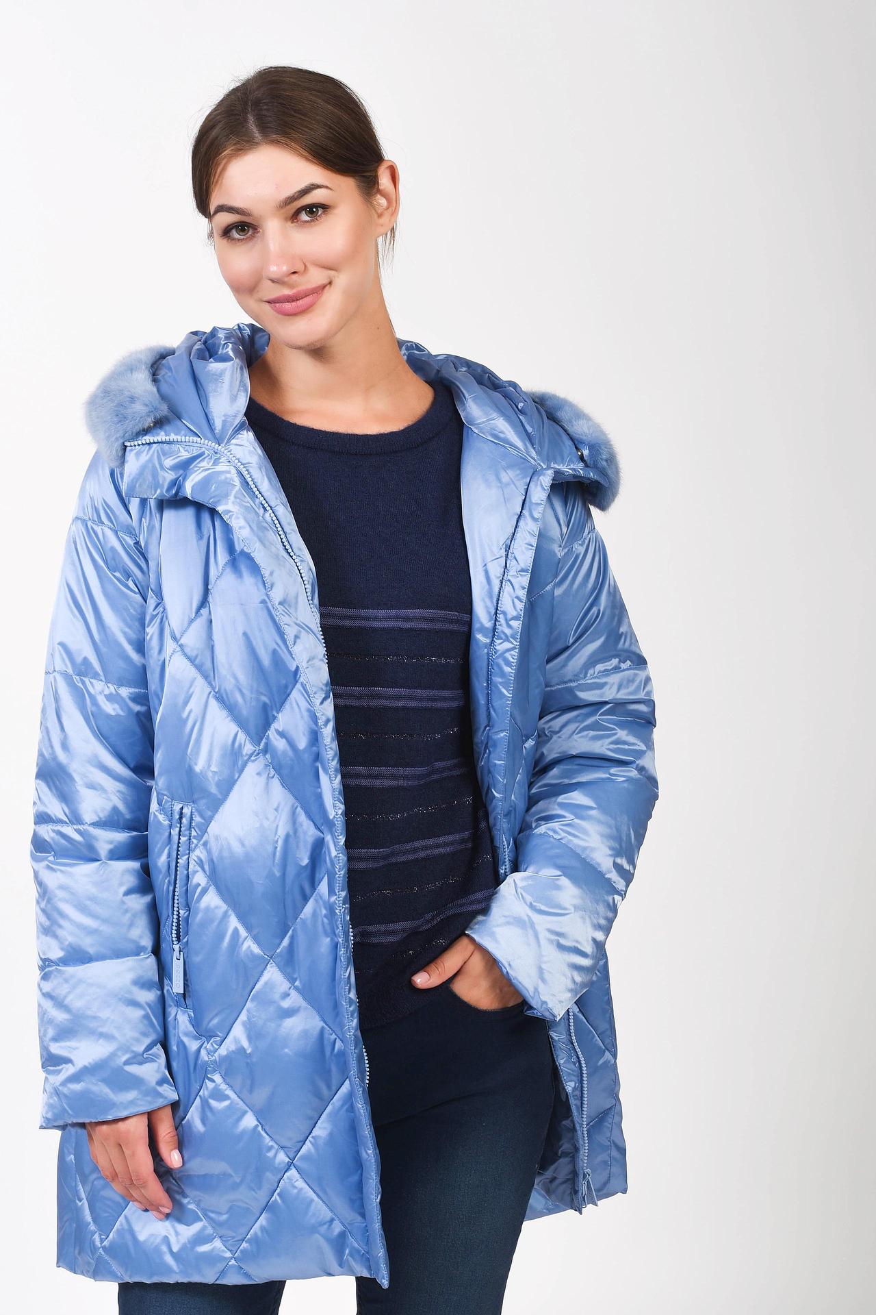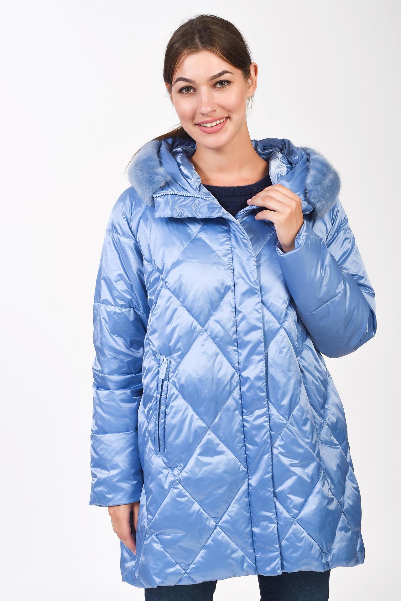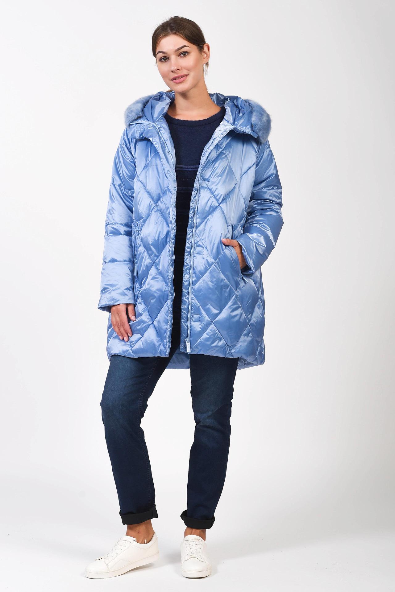 Куртка Pezzo стеганая голубая с меховой отделкой