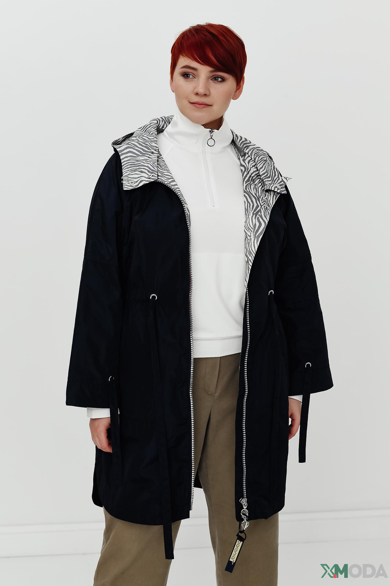 - Дизайн: Современный крой с регулируемой талией на кулиске позволяет создавать различные силуэты. Контрастная подкладка с принтом зебра придает изделию уникальный вид.