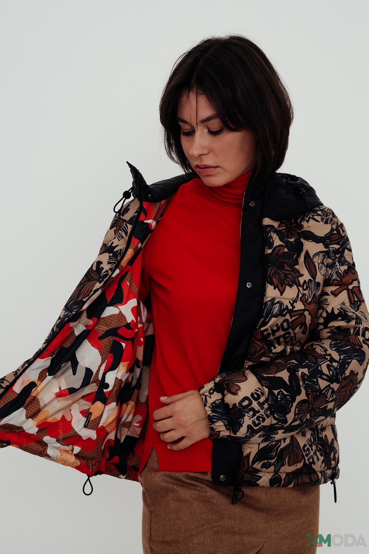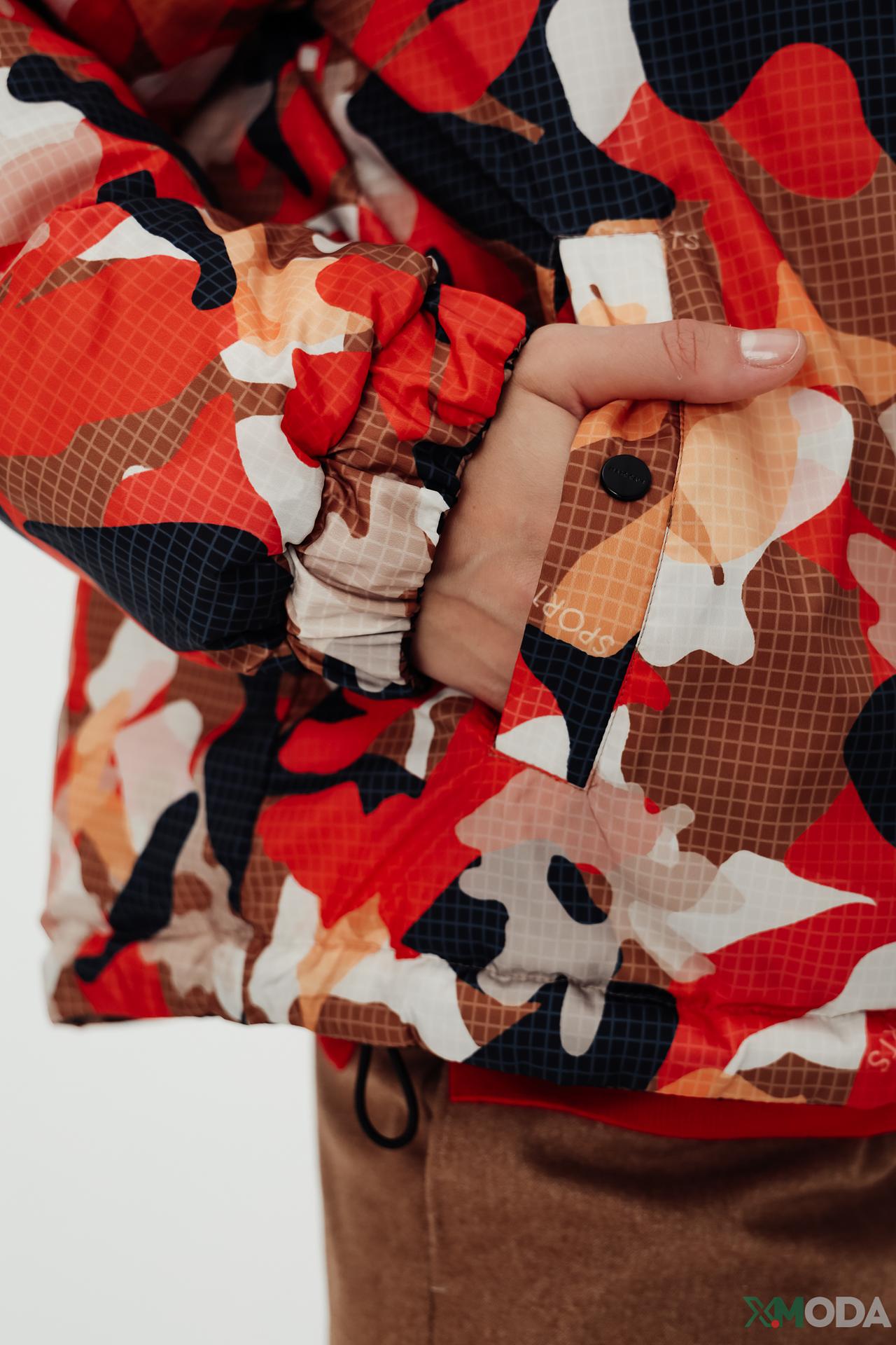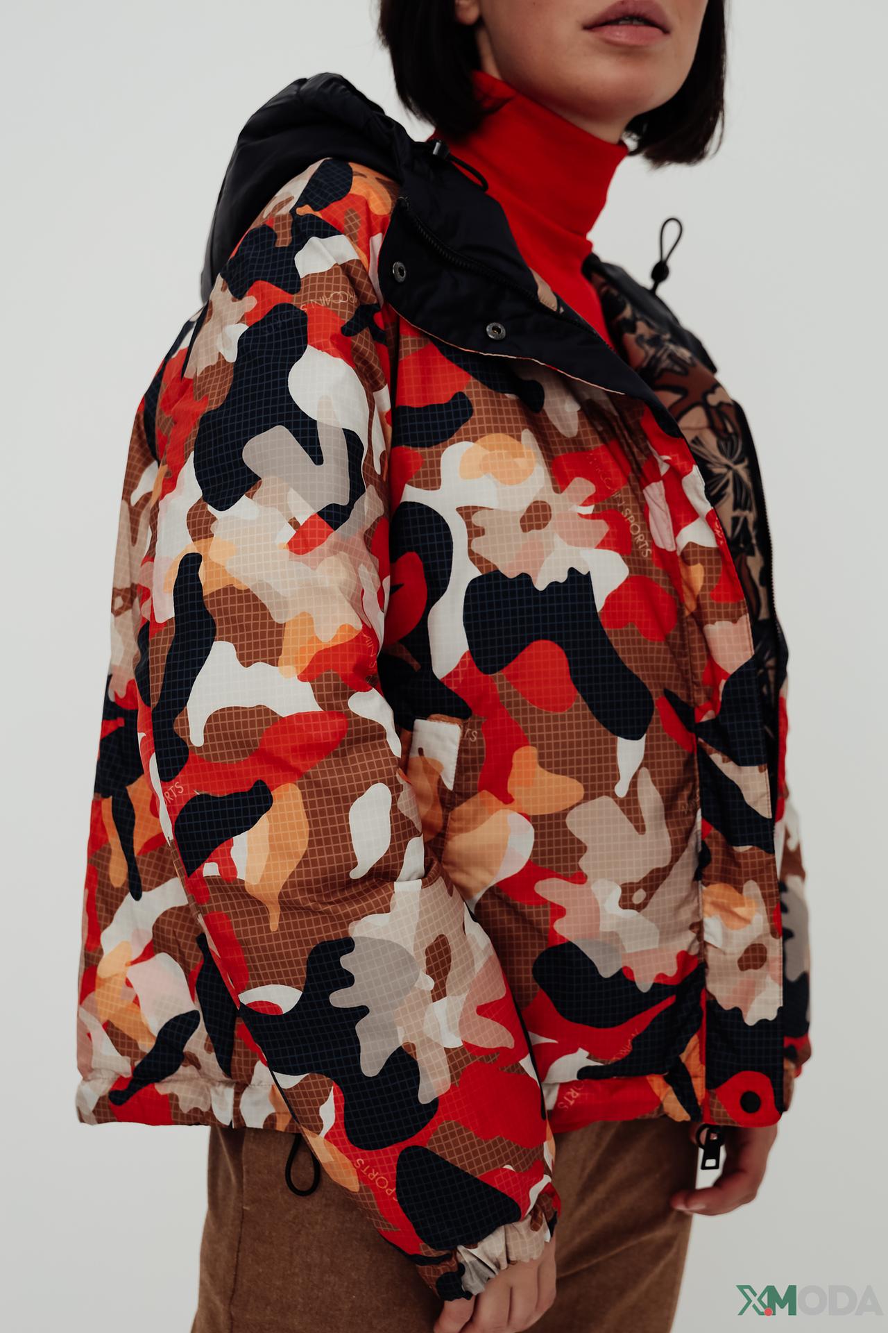 - Современный дизайн. Яркий принт добавляет образу индивидуальности и делает куртку запоминающейся.