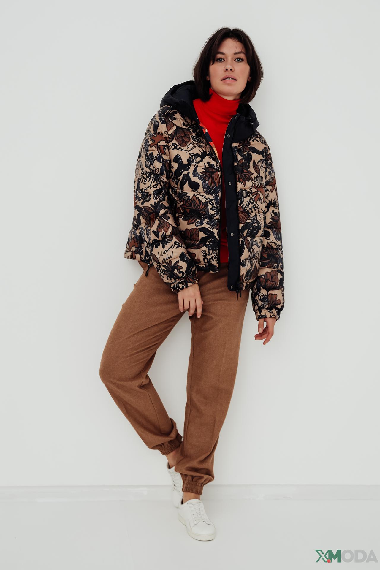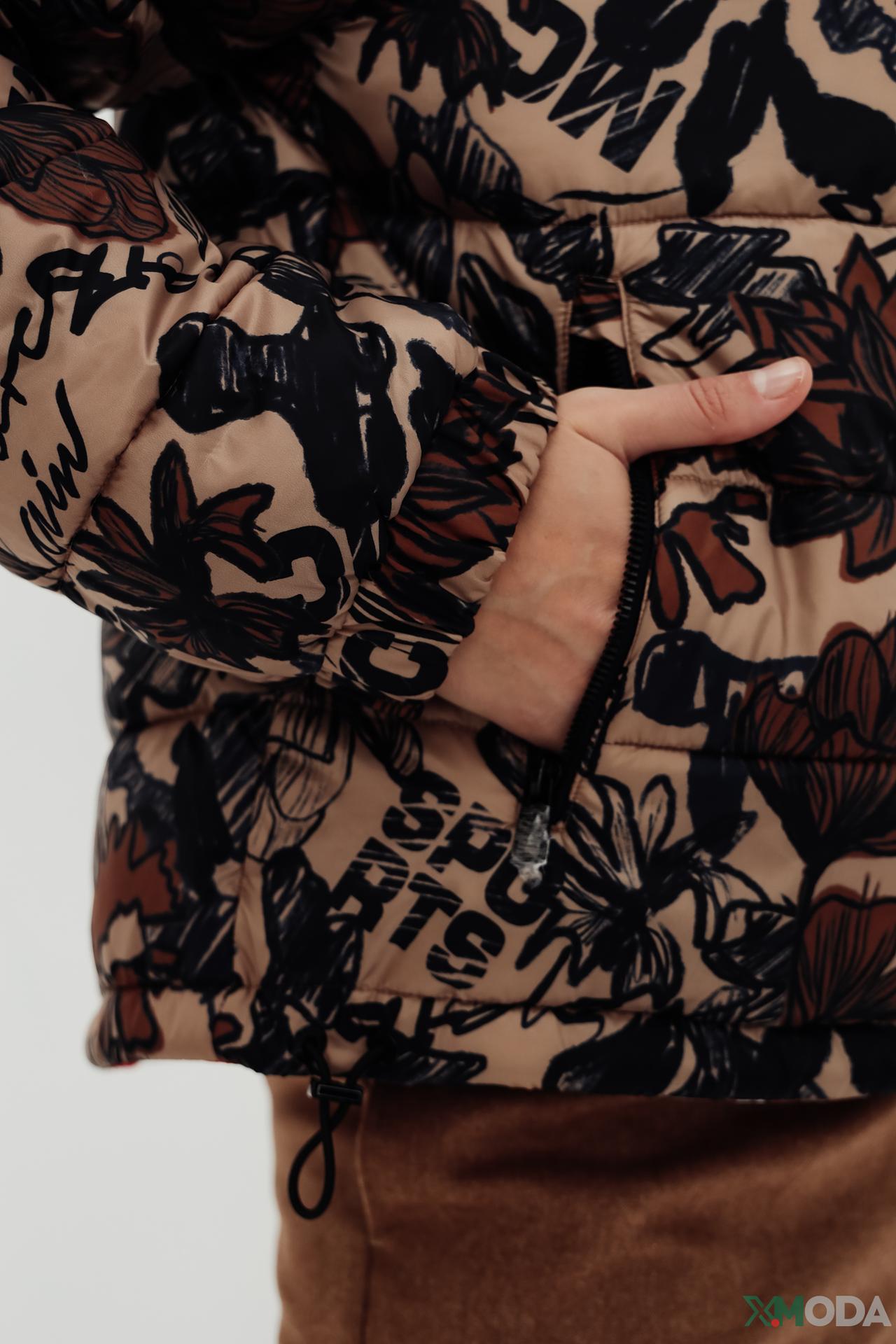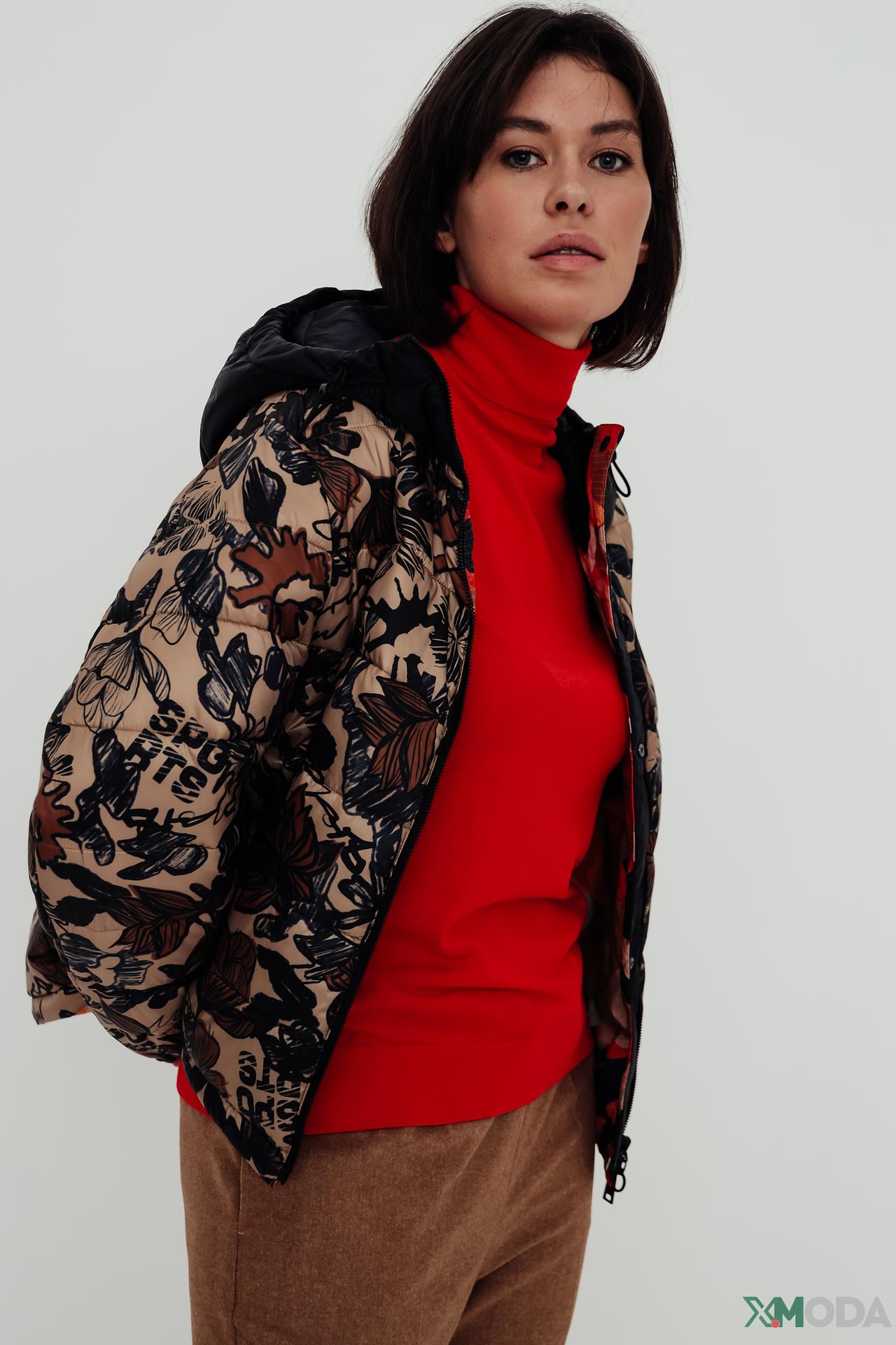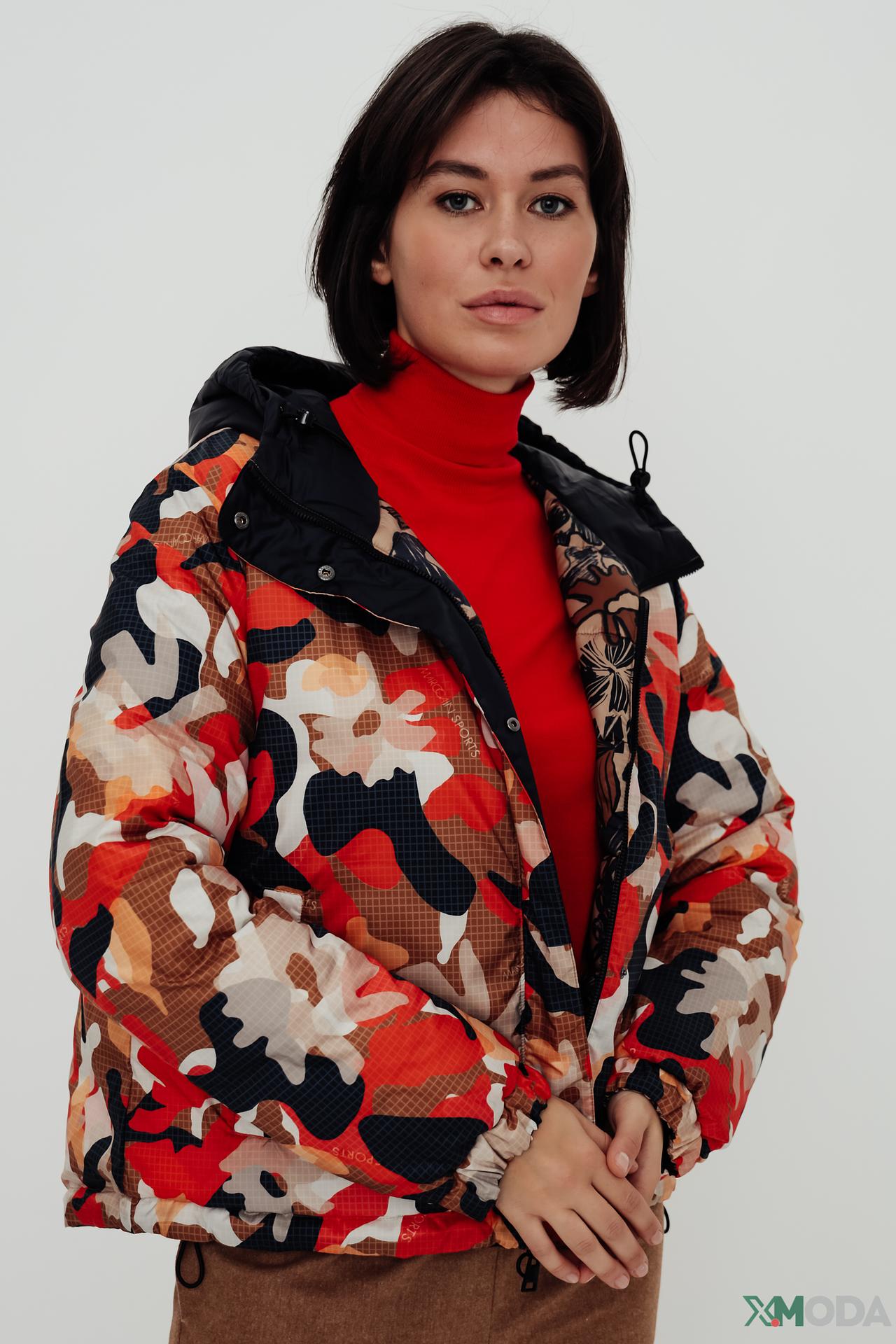 - Современный дизайн. Яркий принт добавляет образу индивидуальности и делает куртку запоминающейся.