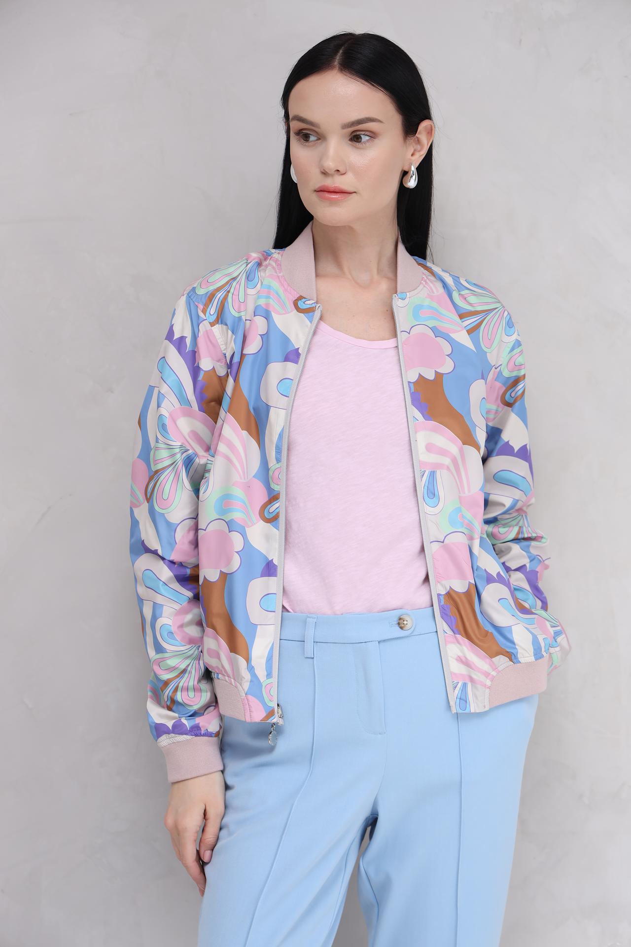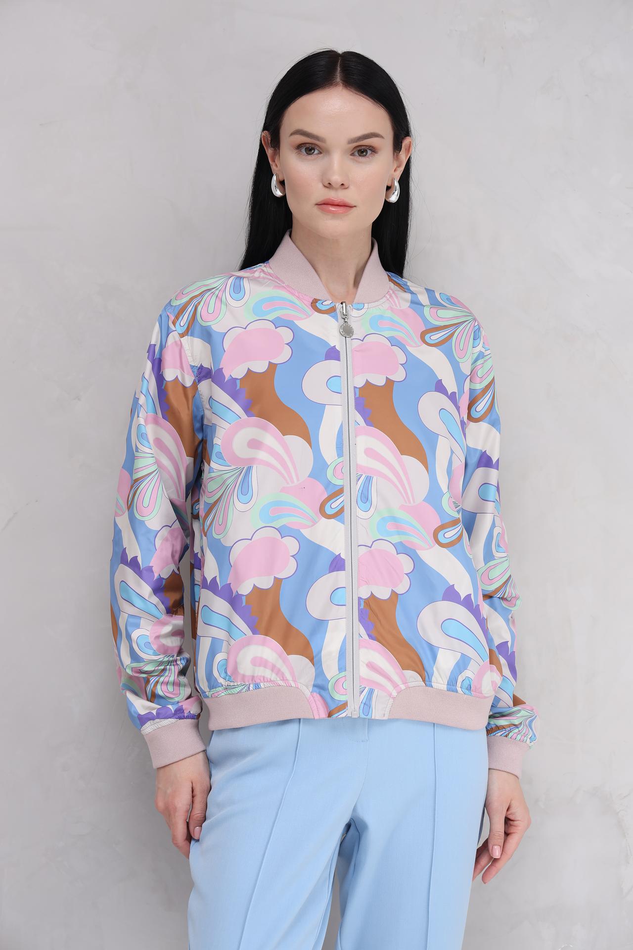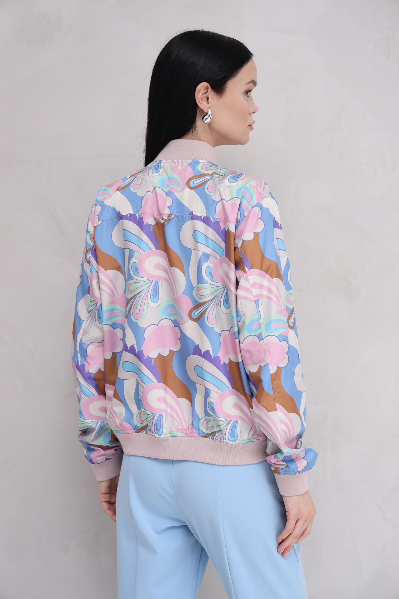 Ветровка обладает классическим дизайном с воротником-стойкой и удобной застежкой-молнией. Рукава и низ изделия дополнены манжетами, обеспечивающими комфортную посадку. Яркой деталью является внутренняя сторона ветровки с принтом.