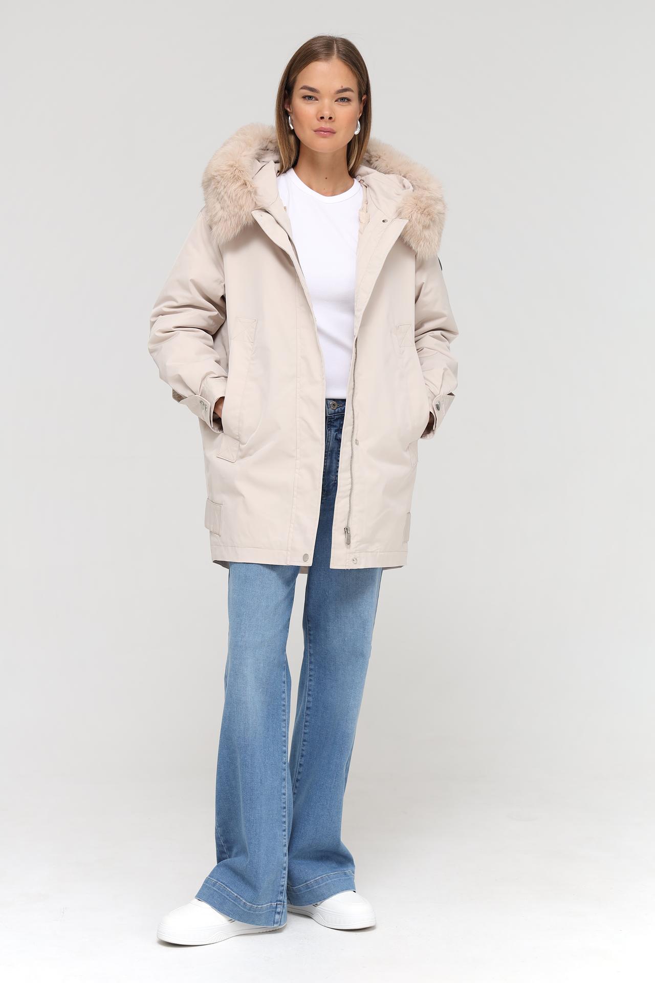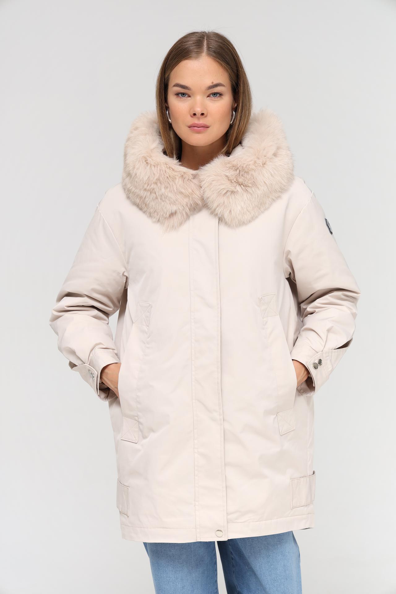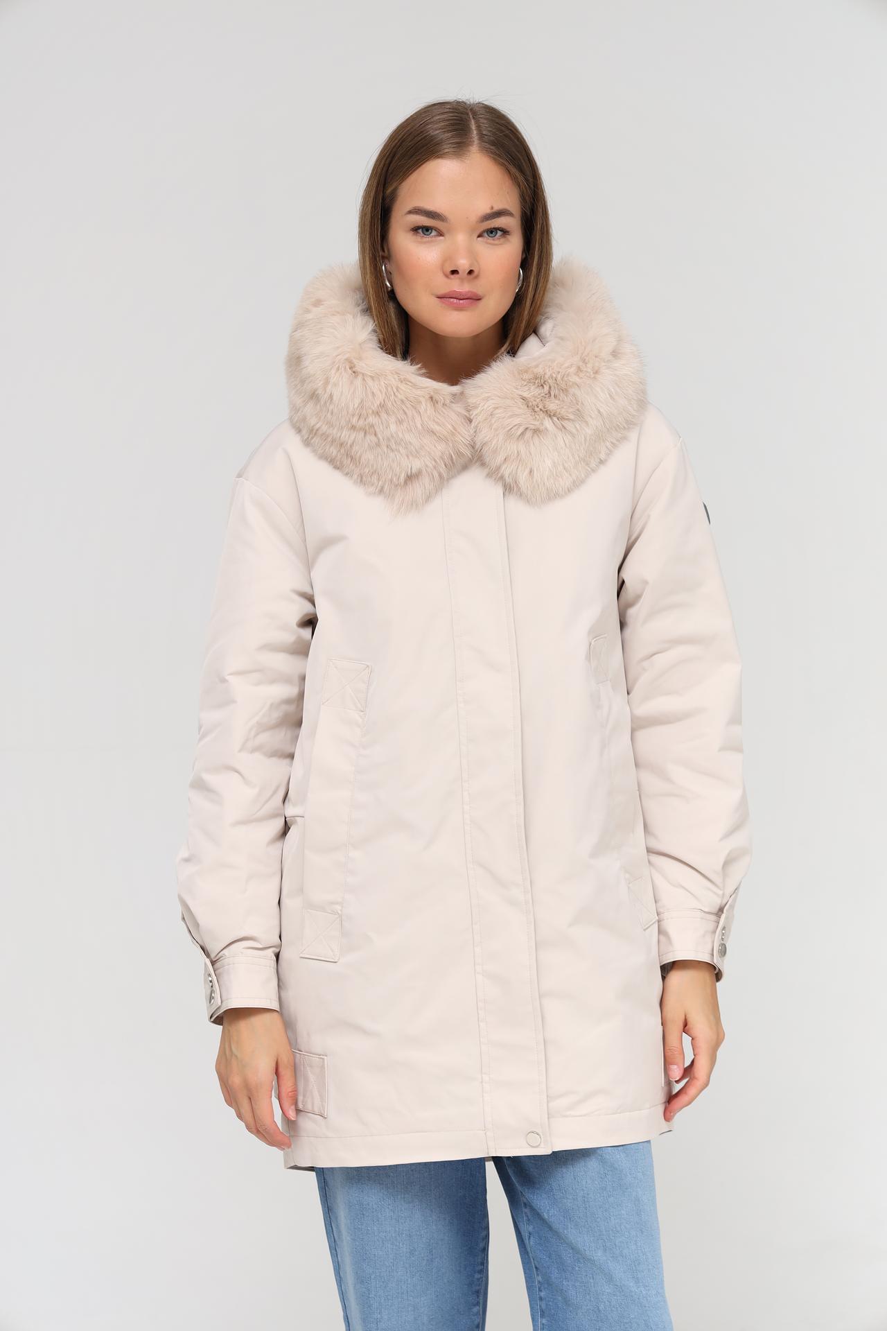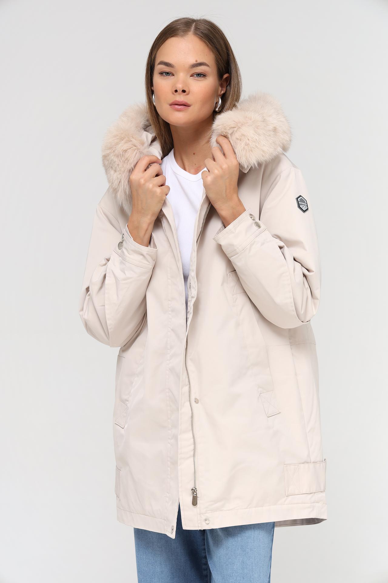 Куртка Electra style бежевая с отделкой искусственным мехом