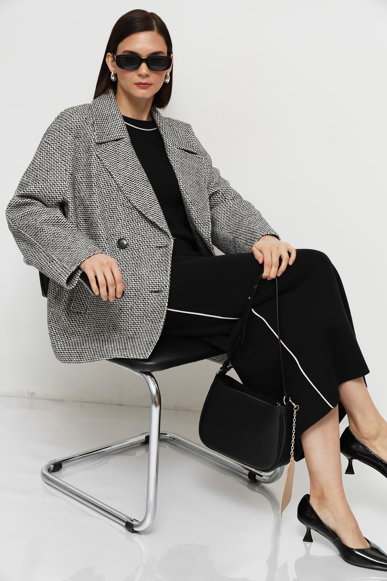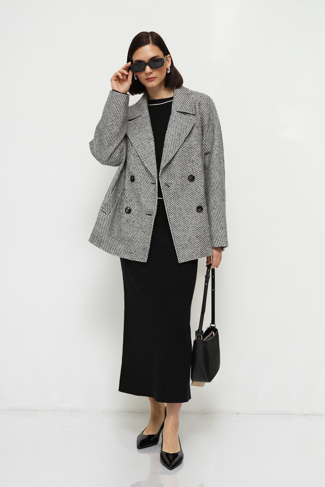 - Элегантный двубортный дизайн. Две линии пуговиц добавляют изделию классический шарм и структурность. Это решение делает куртку акцентной деталью вашего образа, подчеркивая безупречный вкус.