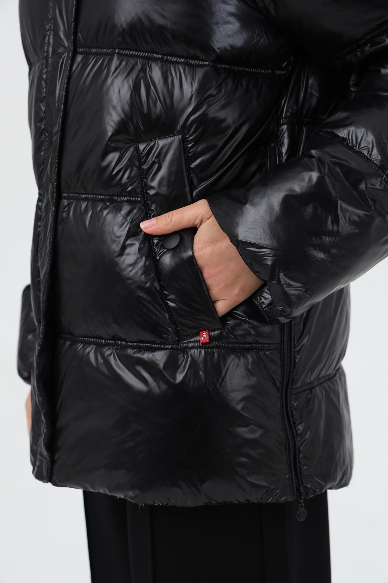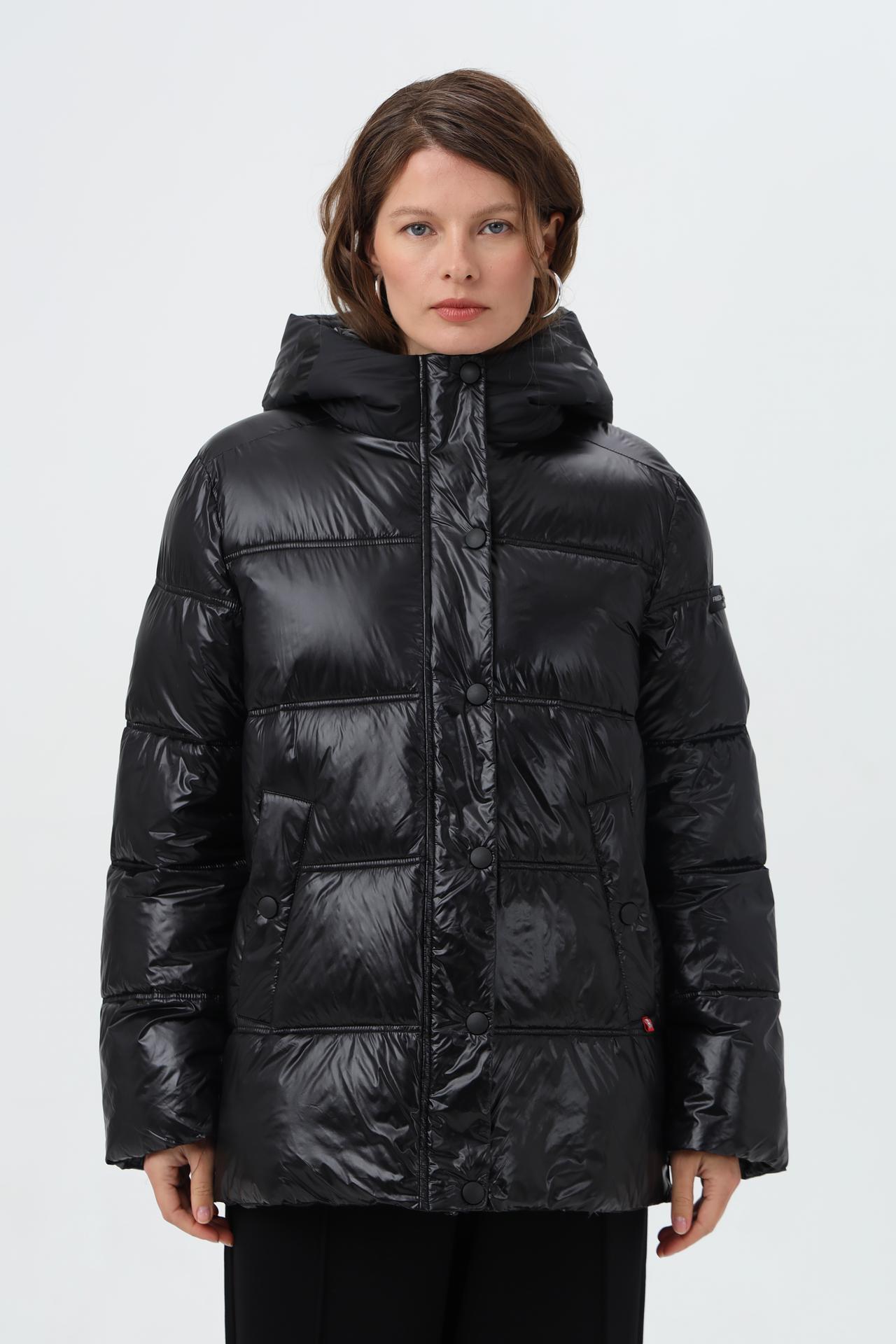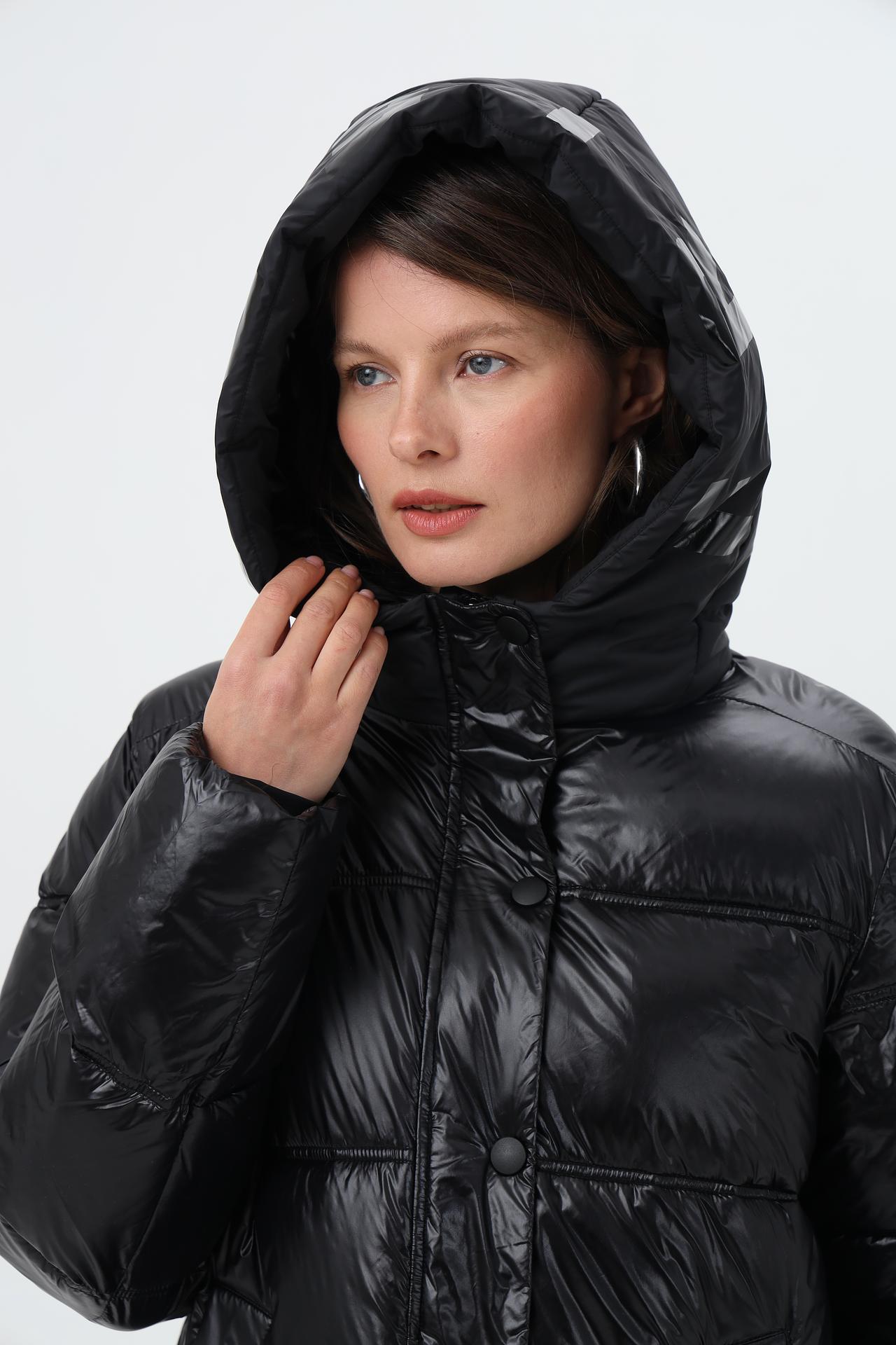 - Дизайн: Современный объемный крой с капюшоном. Куртка имеет глянцевую поверхность и горизонтальную простежку, которая создает элегантный внешний вид.