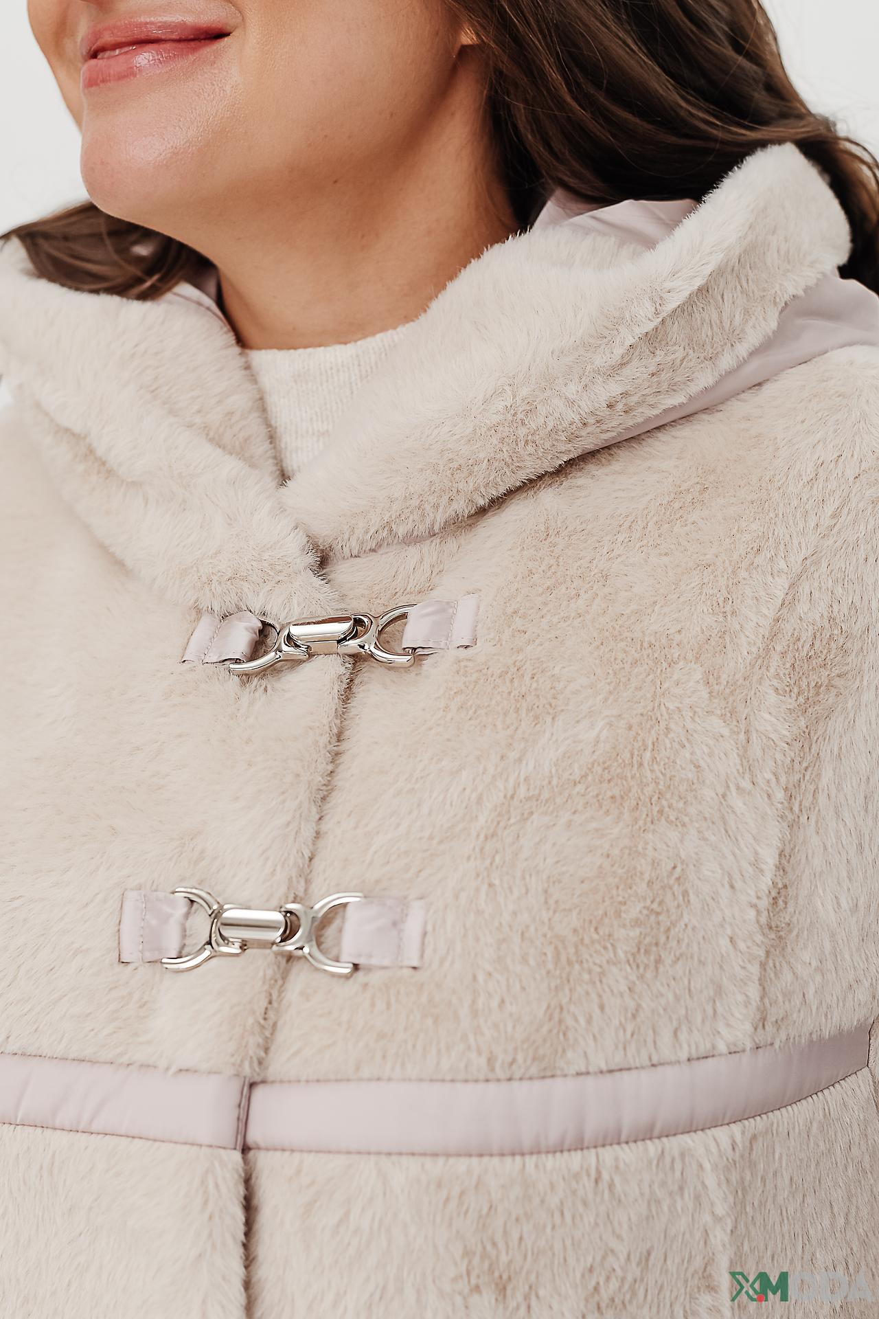 - Оригинальный дизайн. Акцентные декоративные застежки и контрастные стеганые вставки на рукавах и капюшоне придают изделию уникальность, выделяя его среди других моделей. Элегантные горизонтальные полосы добавляют динамики силуэту.