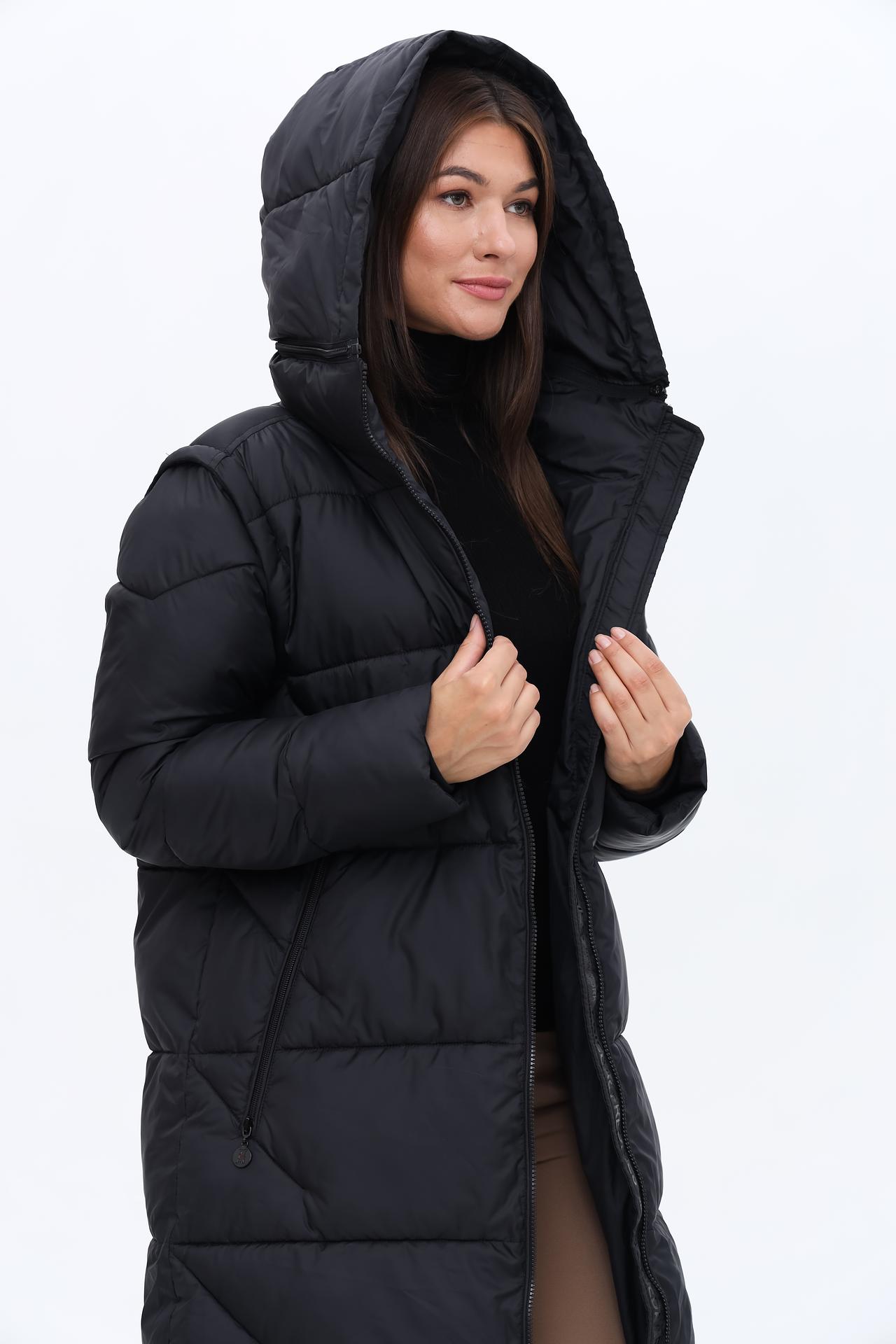 - Функциональный дизайн: Пальто оснащено глубоким капюшоном, который обеспечивает дополнительную защиту от непогоды. Удобные боковые карманы на молнии позволяют безопасно хранить личные вещи, а центральная молния скрыта от ветра.