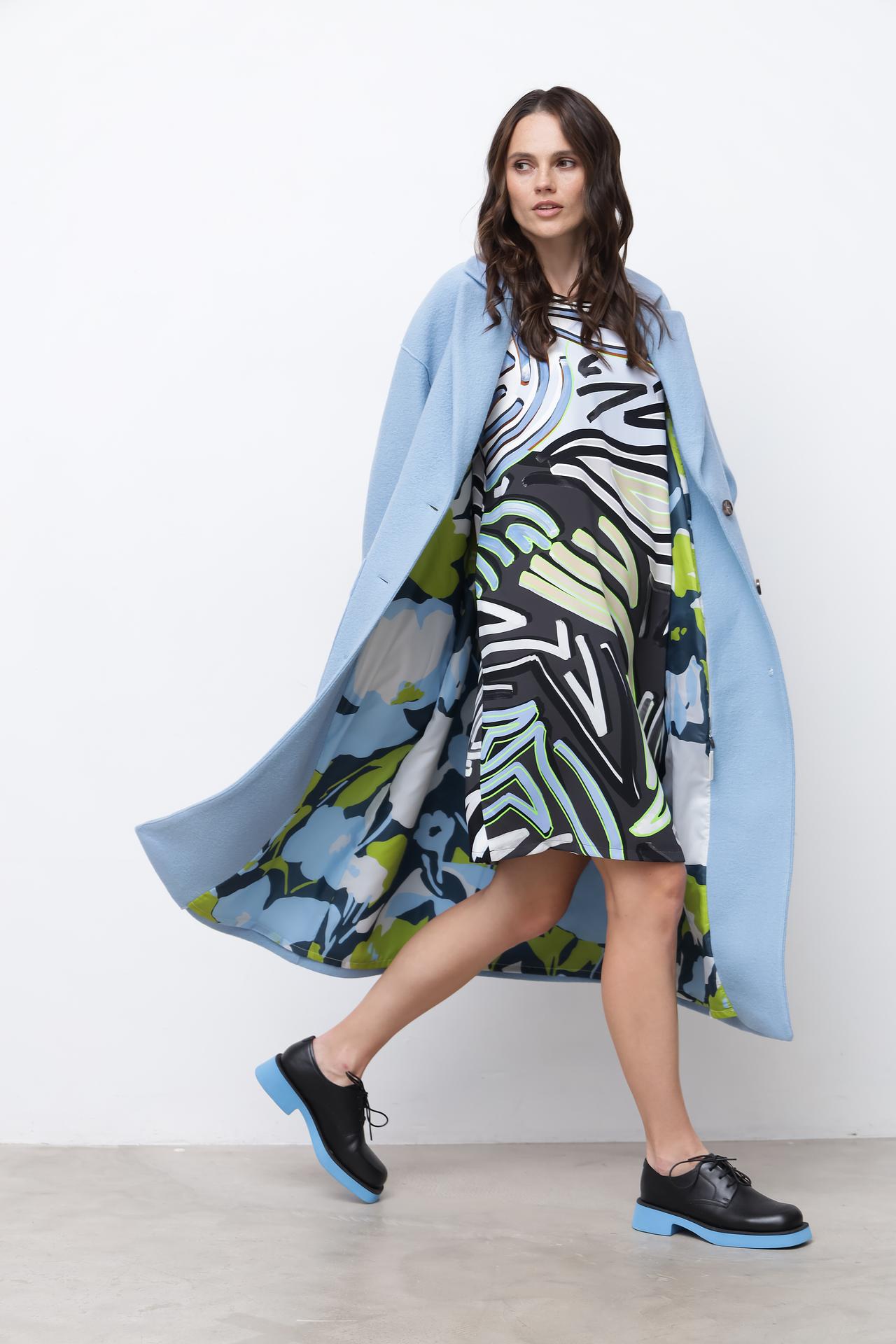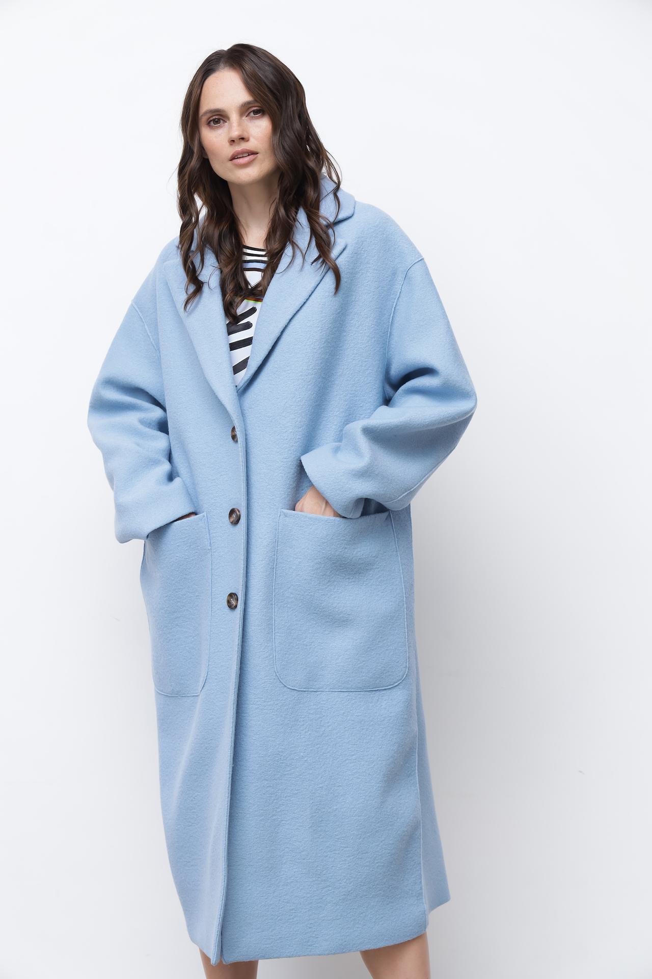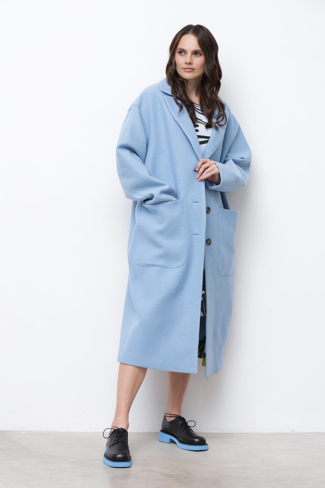 - Крой: Прямой крой пальто подчеркивает фигуру и придает образу элегантность.