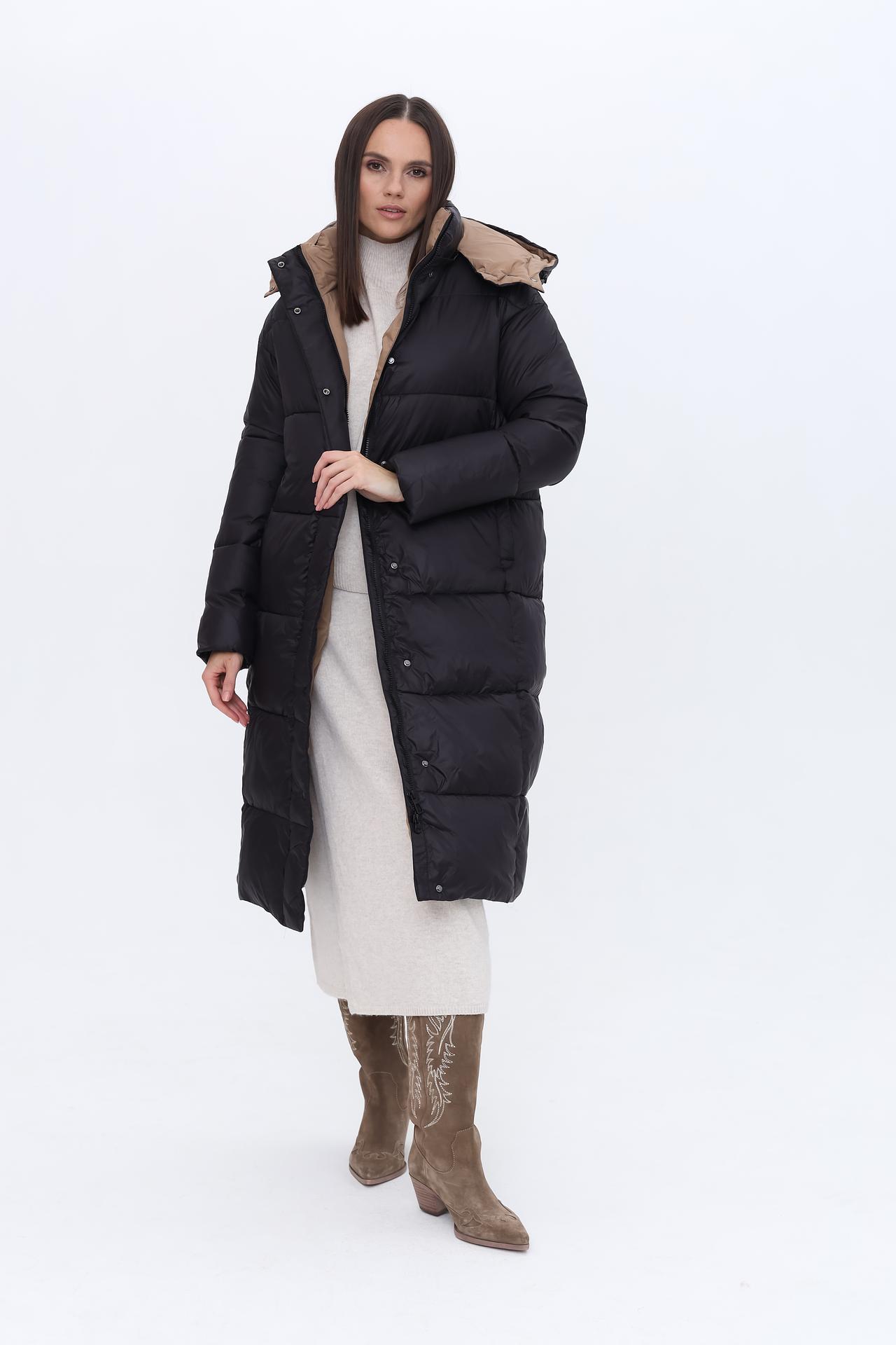 - Дизайн: Прямой силуэт, длинный рукав, капюшон. Классический крой подходит для любого типа фигуры.