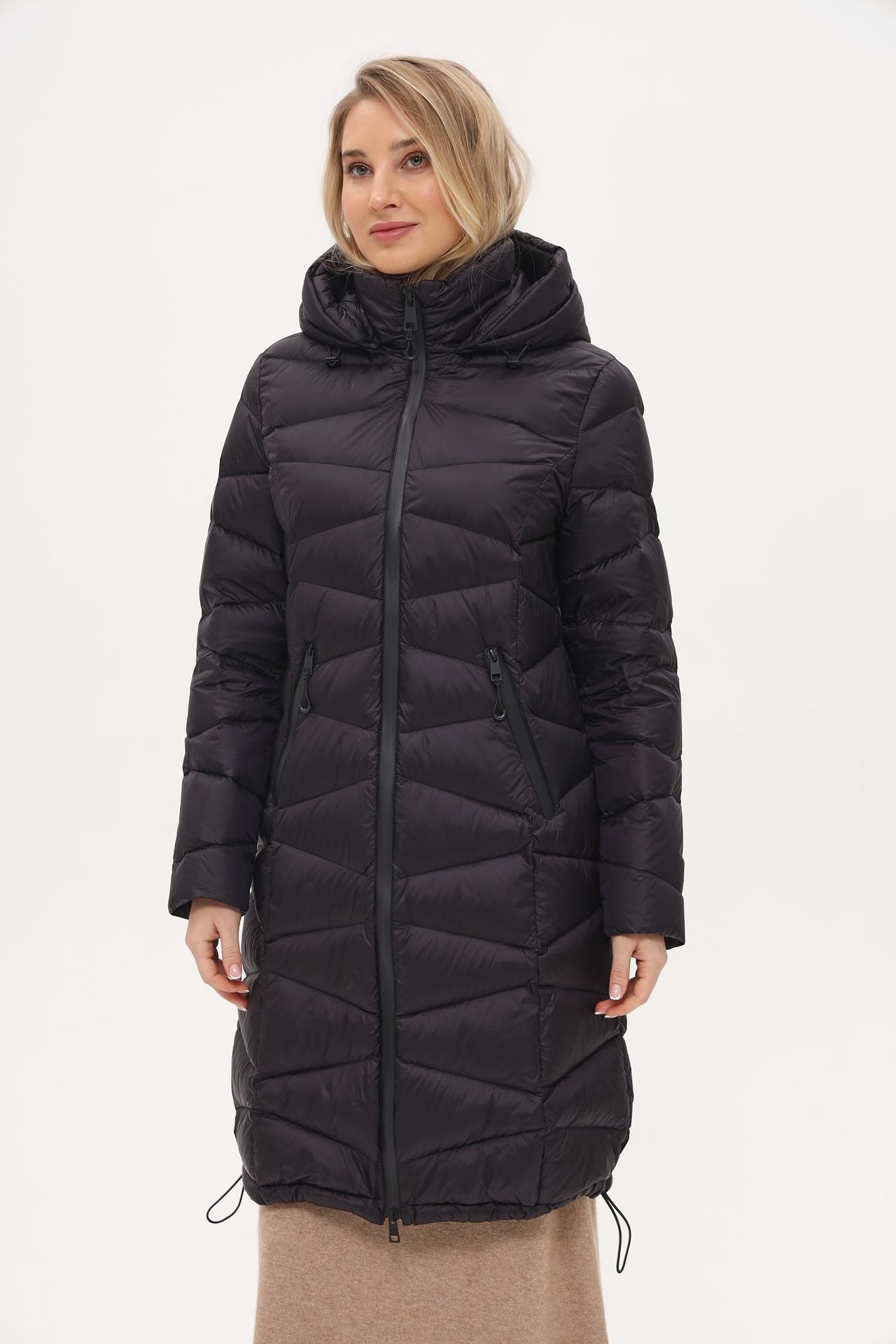 - Дизайн: Классический прямой крой средней длины. Пальто оснащено удобным капюшоном и надежной центральной молнией. Нижняя часть изделия дополнена кулиской для регулировки объема, что позволяет создавать различные силуэты.