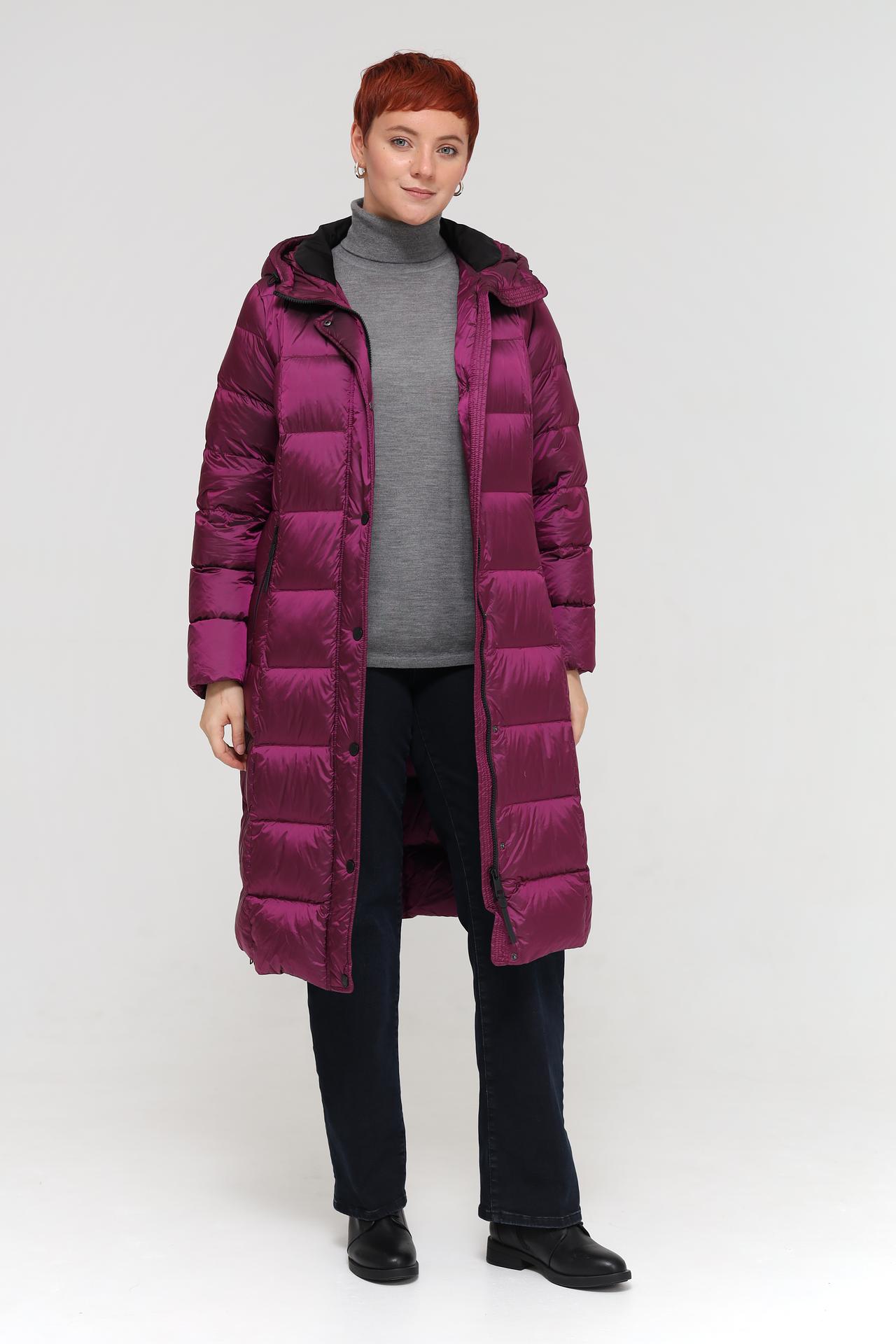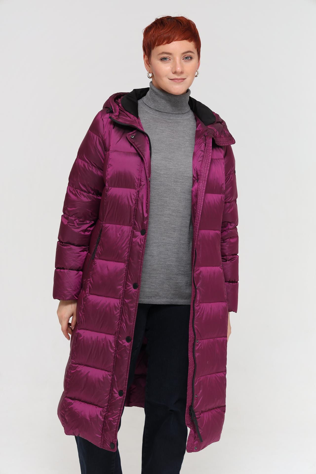 Пальто Lebek стеганое с капюшоном фиолетового цвета