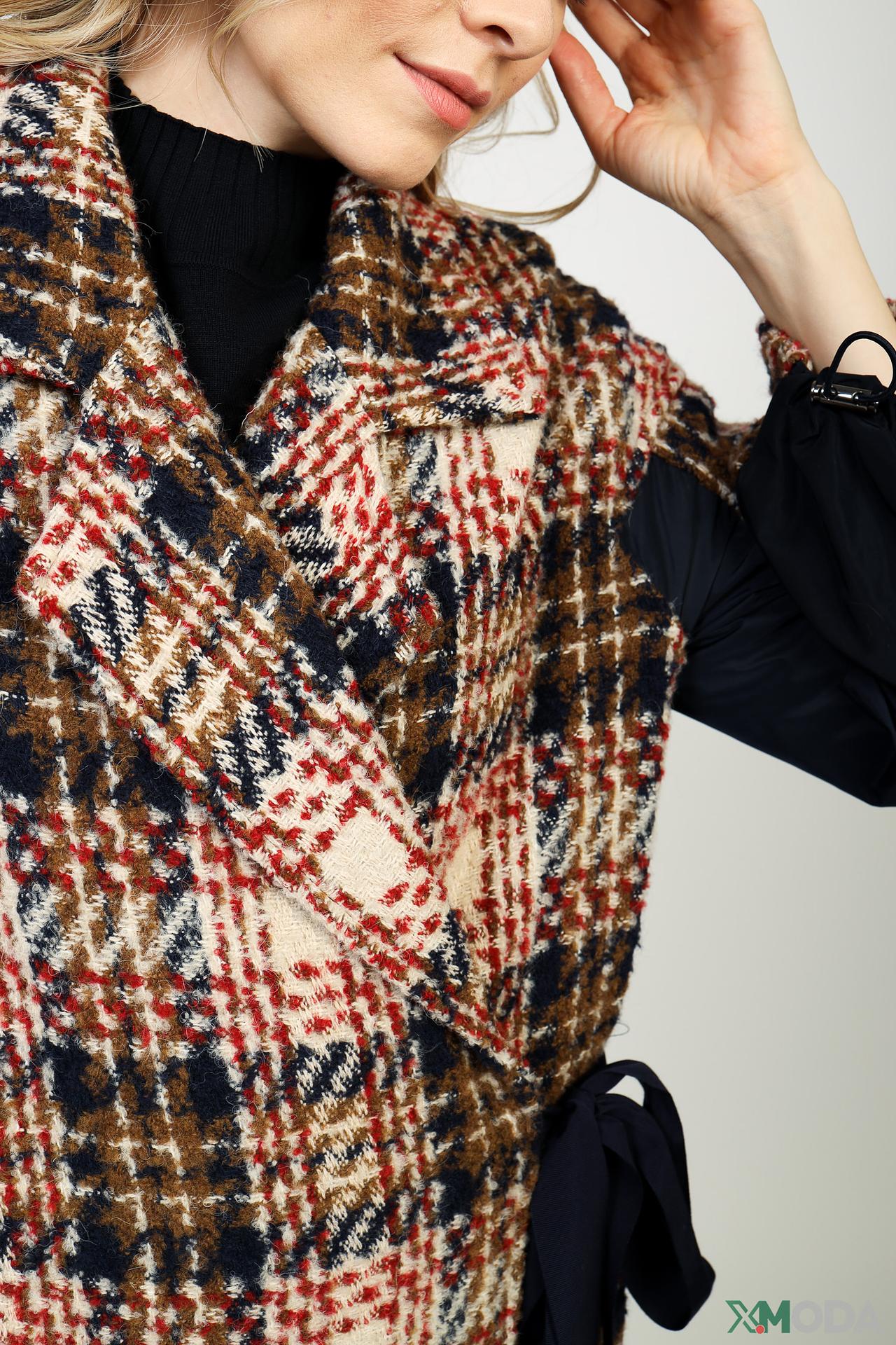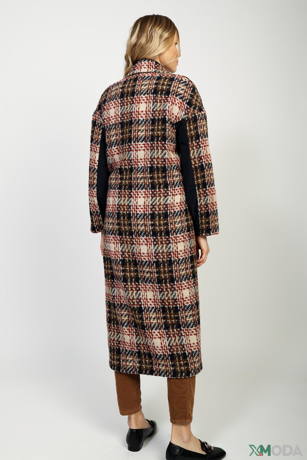 - Стильный клетчатый узор. Классический рисунок в клетку делает пальто универсальным и подходящим для разных образов.