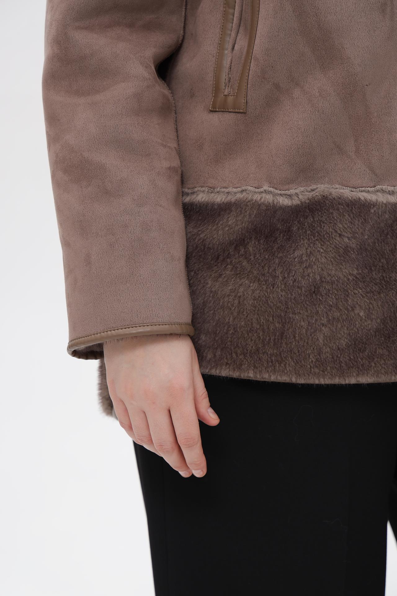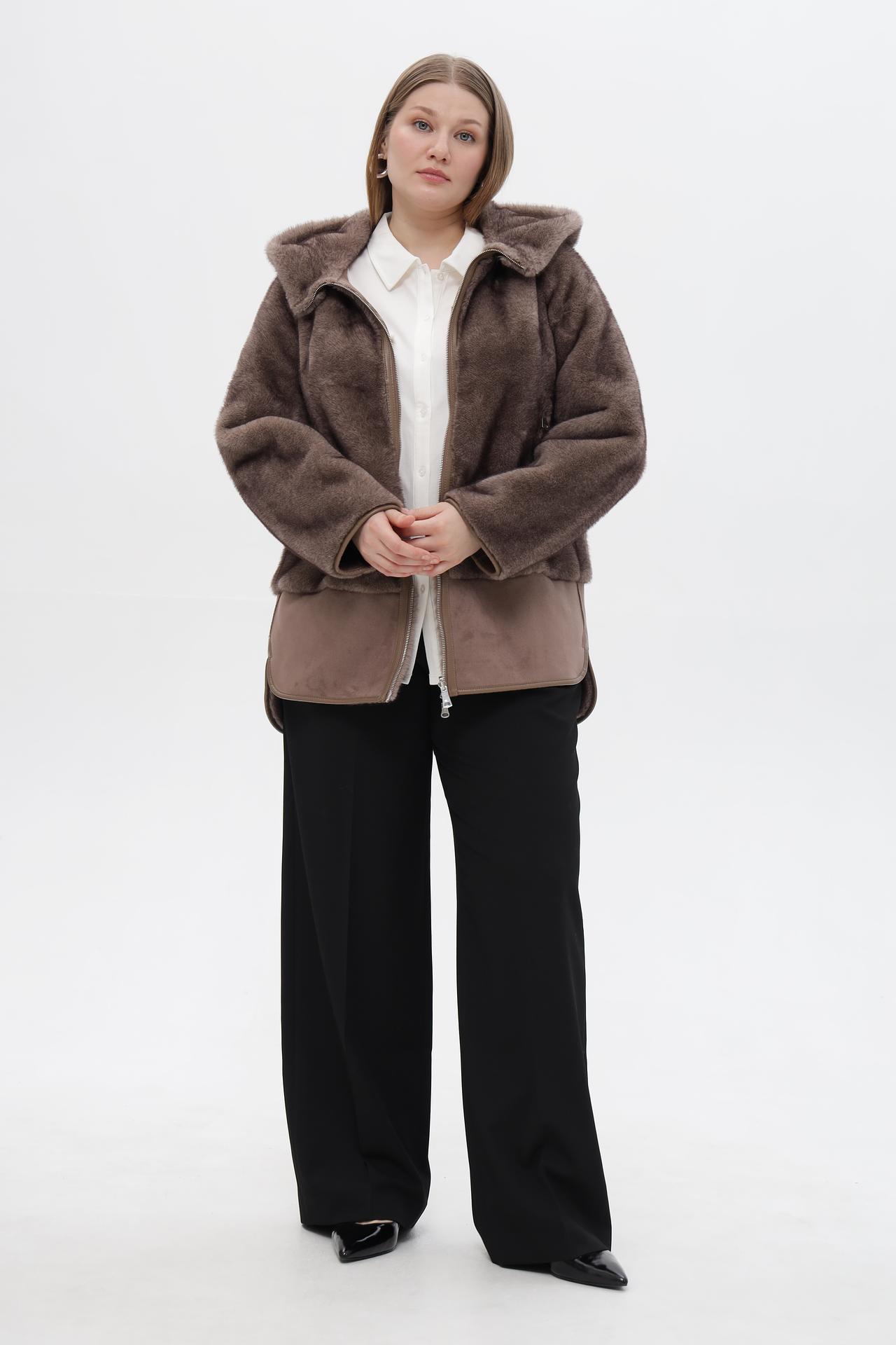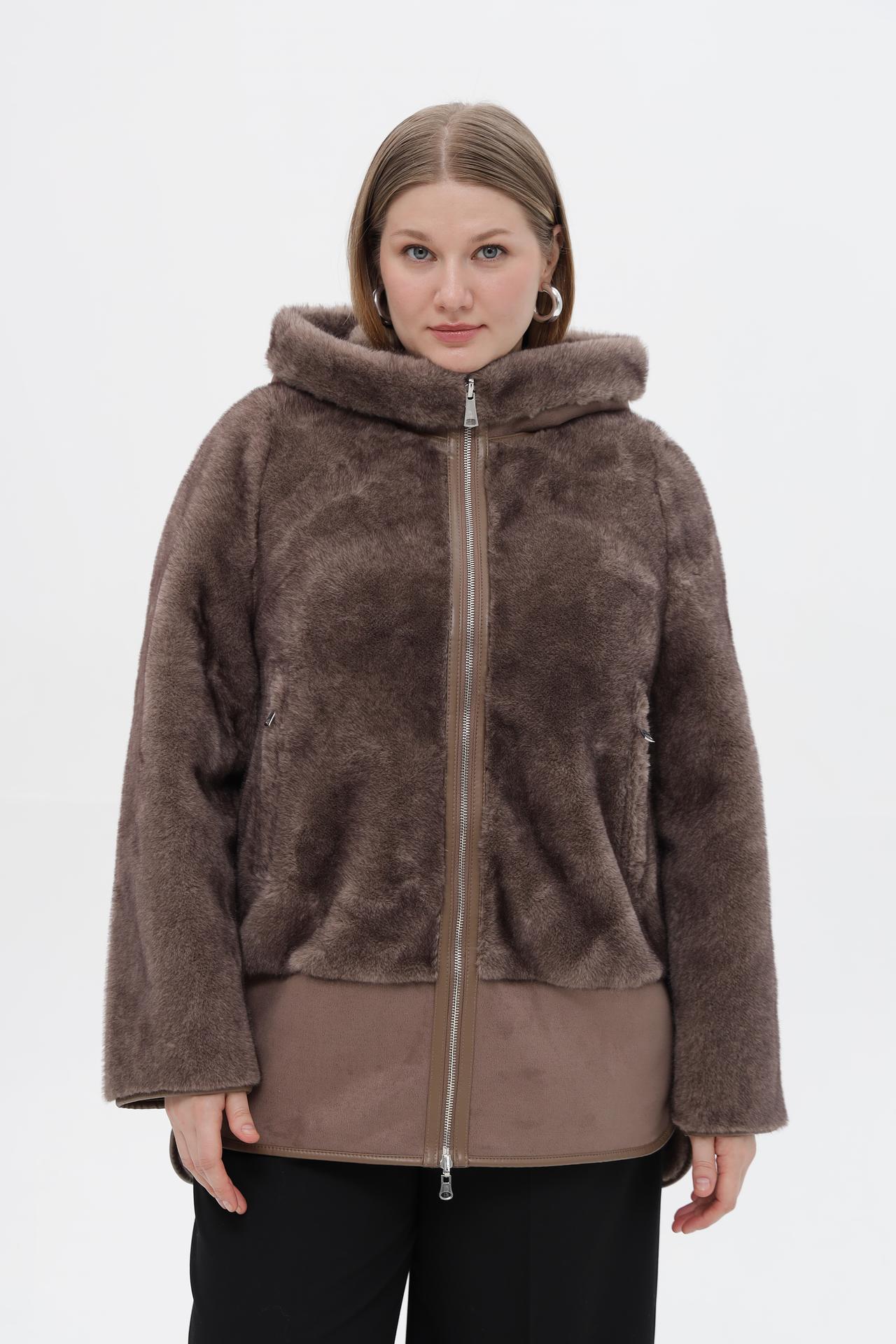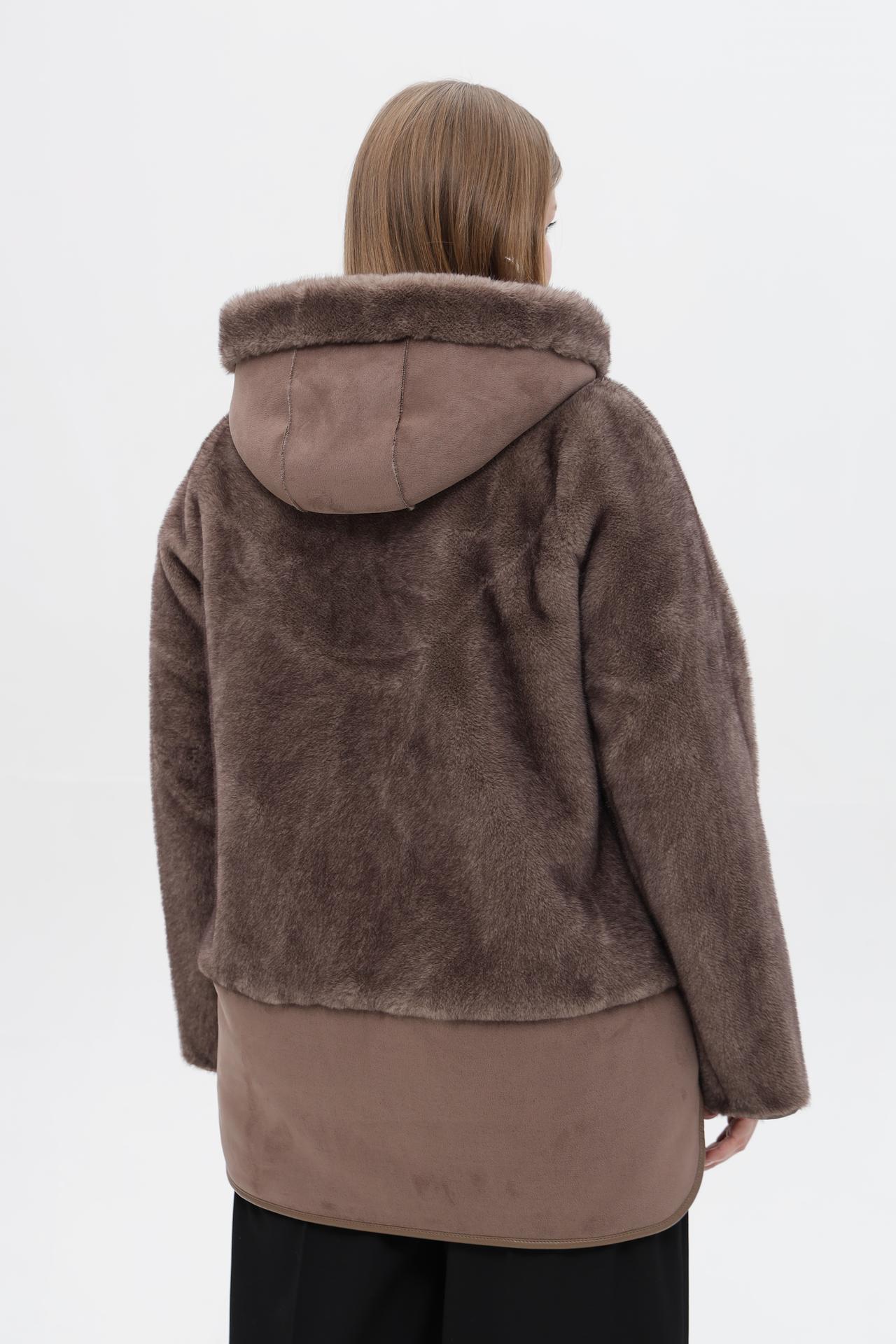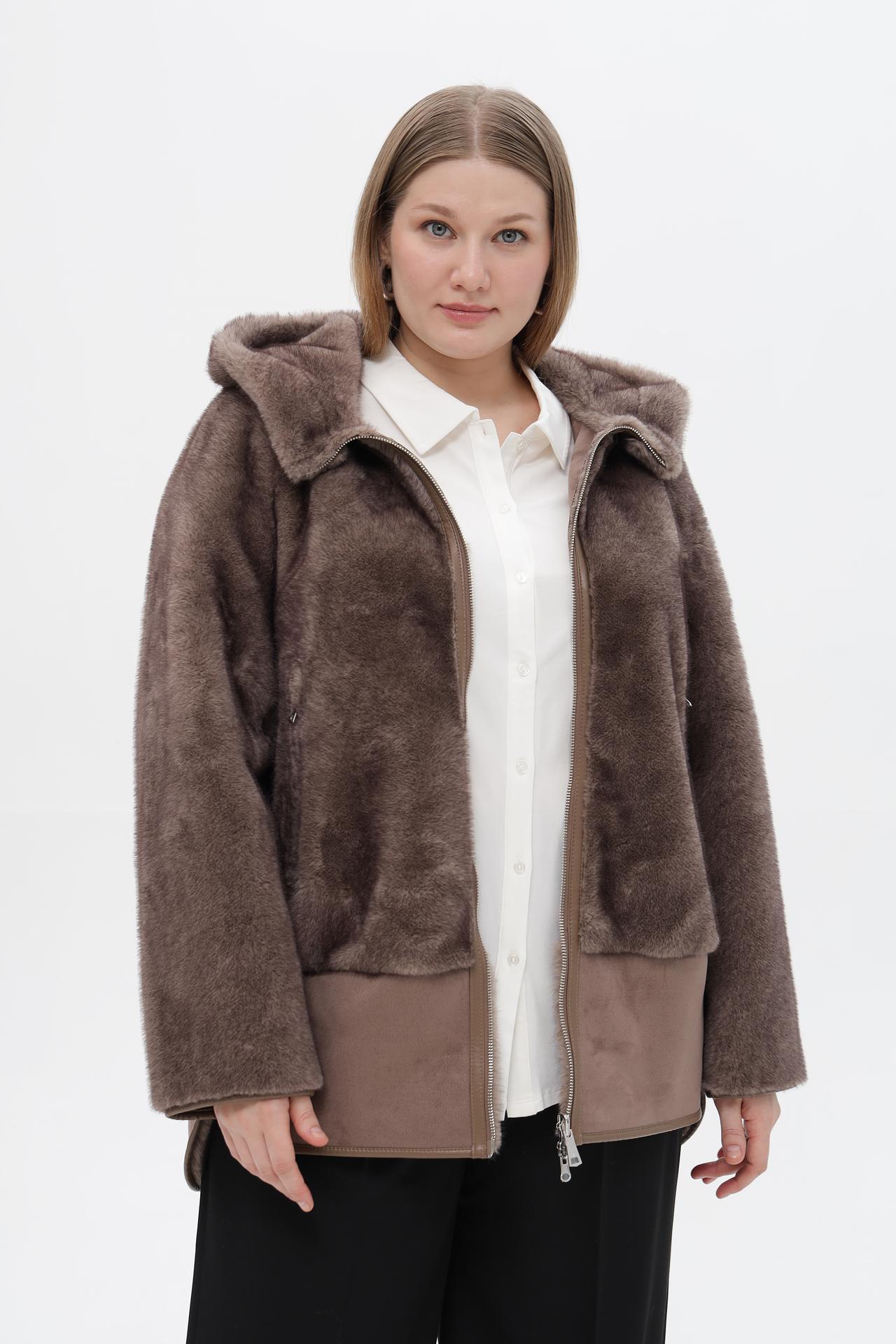 - Дизайн: Современный дизайн с капюшоном и комбинацией фактур (искусственный мех и замша) делает эту модель универсальной и актуальной.
