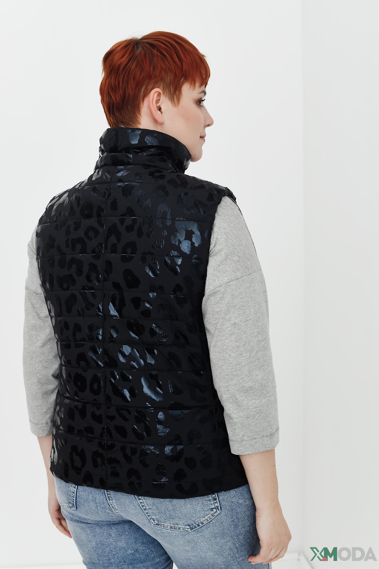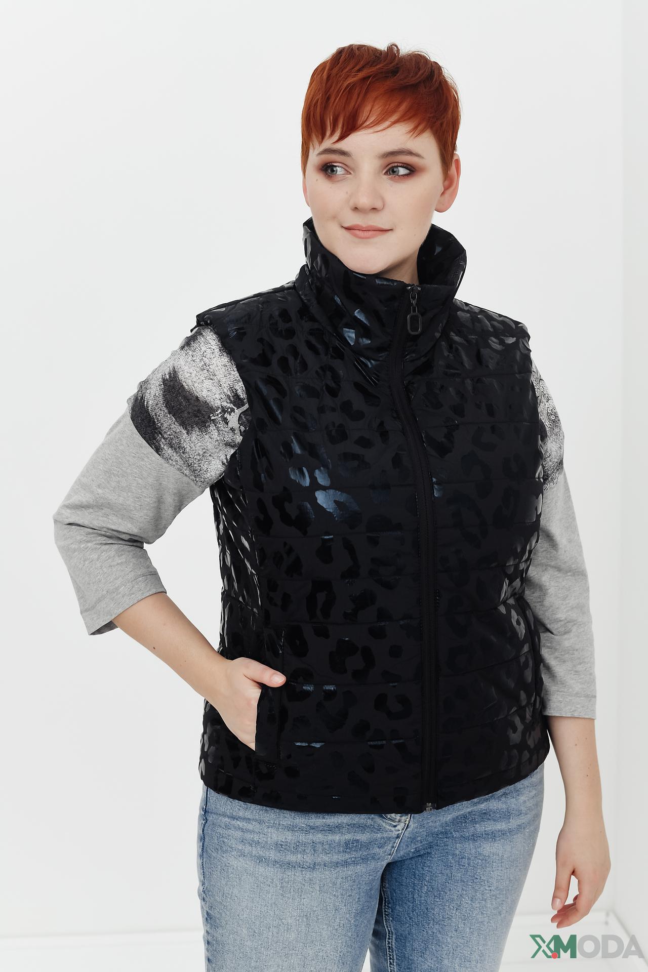 Стильный и практичный жилет от Doris Streich станет незаменимой вещью в вашем гардеробе. Модель выполнена в классическом черном цвете с эффектным тиснением в виде леопардового принта, что придает ей особую элегантность. Жилет идеально подойдет для создания многослойных образов в прохладную погоду, обеспечивая тепло и комфорт.