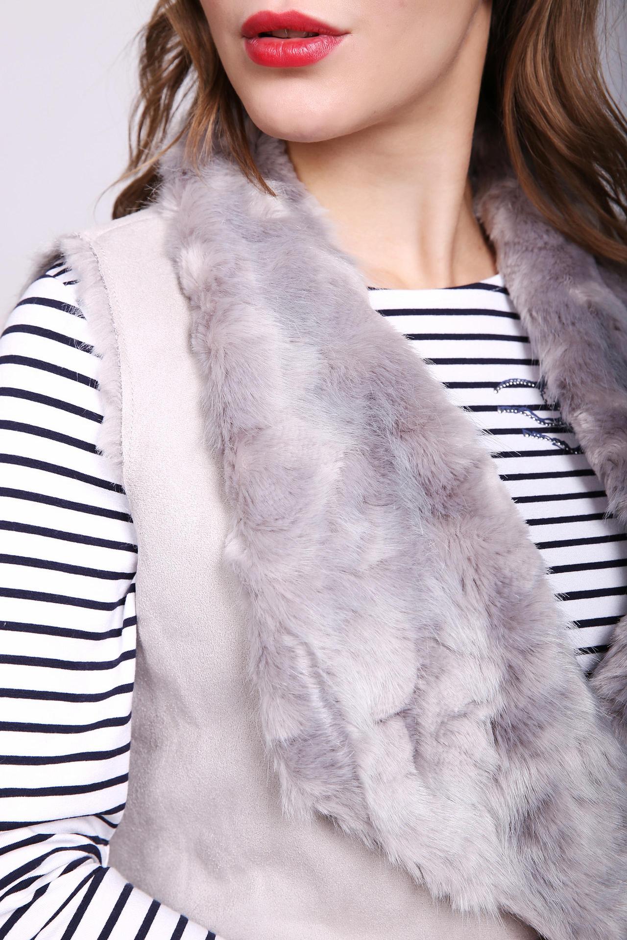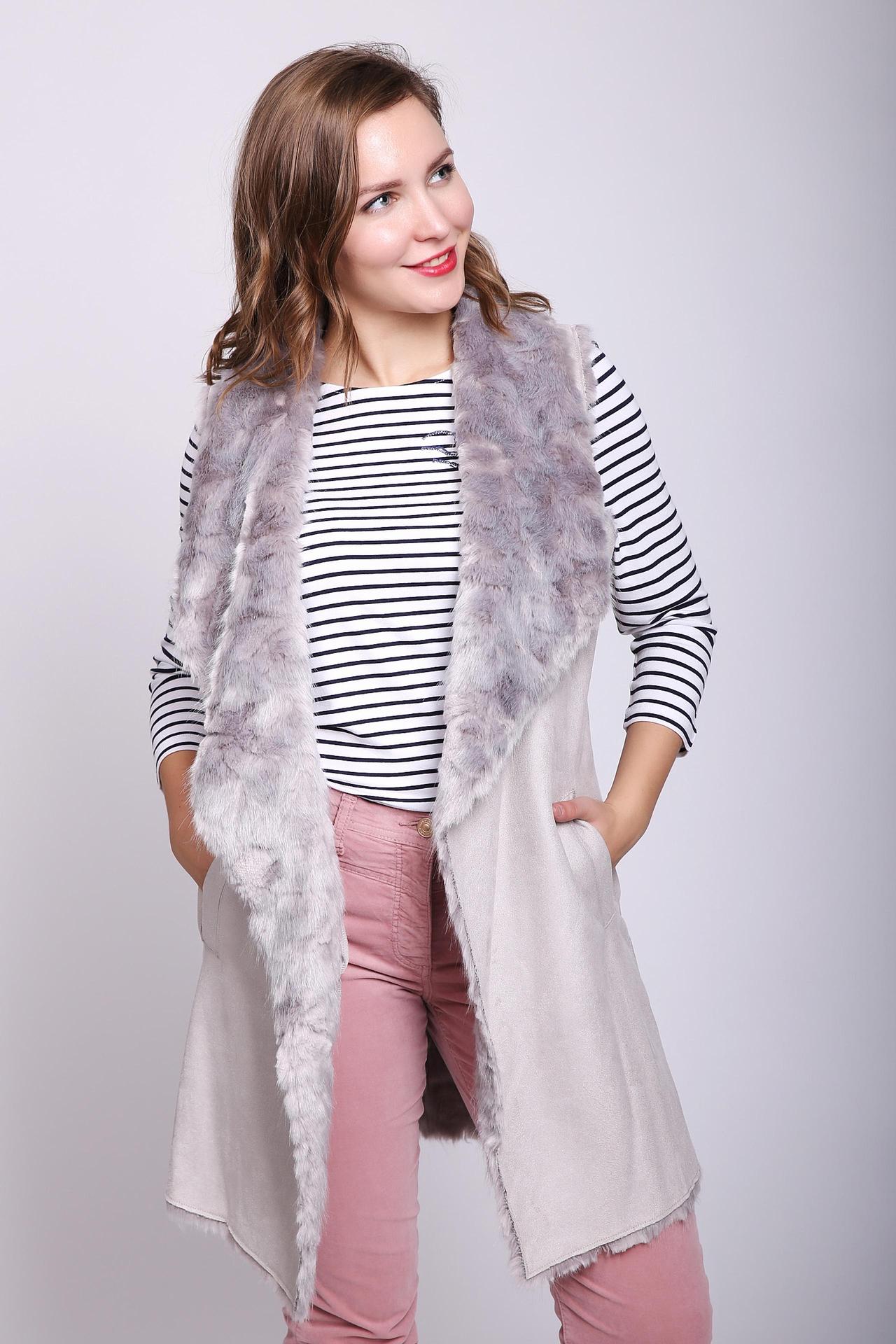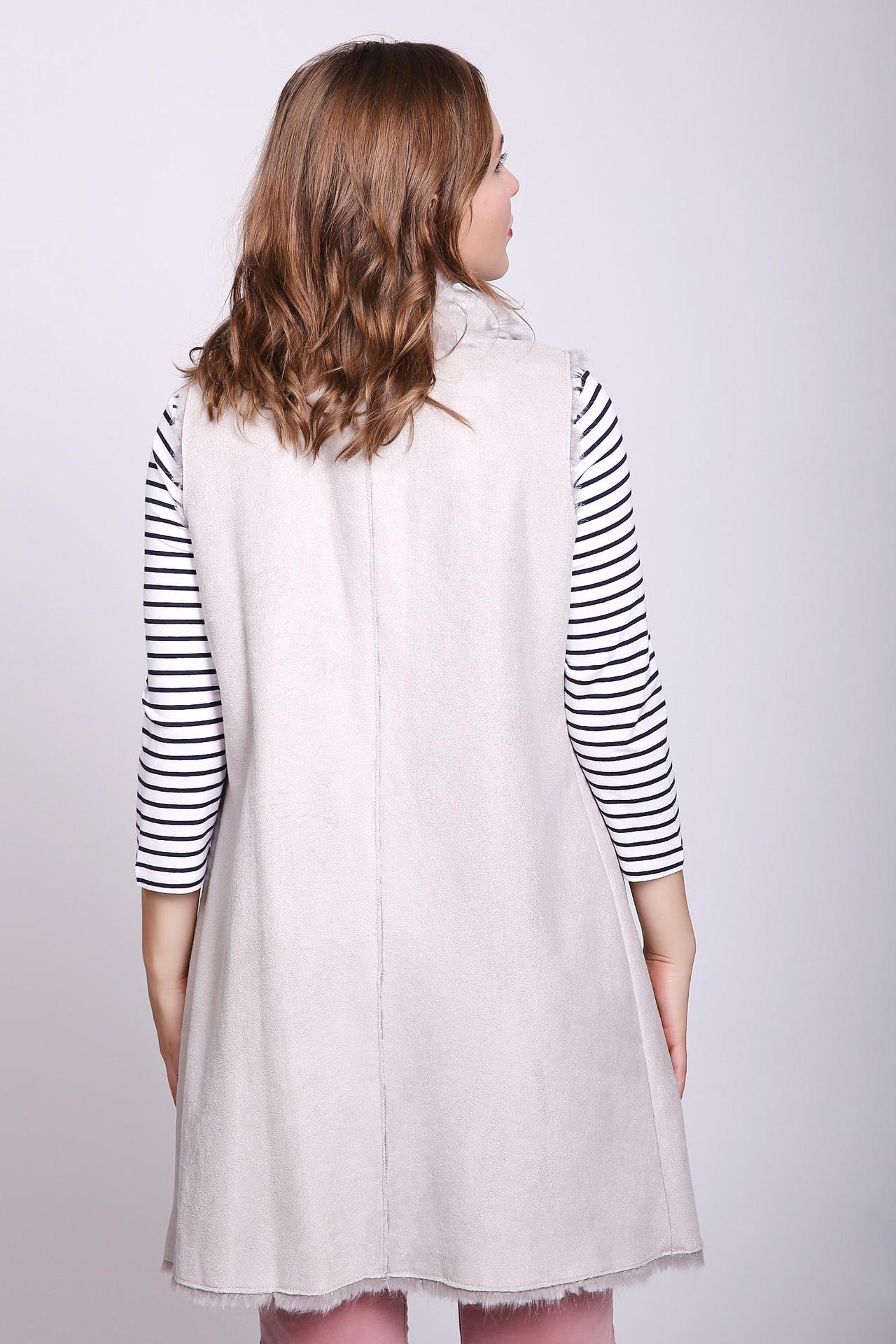 Жилет женский серого цвета фирмы Betty Barclay. Модель выполнена прямым покроем. Изделие дополнено откладным воротом с запахом, без рукавов, прорезными карманами с листочками, средним швом. Жилет удлинённого фасона. Такая модель всегда пригодится для прохладных дней. Гармонировать может с различными деталями вашего гардероба.