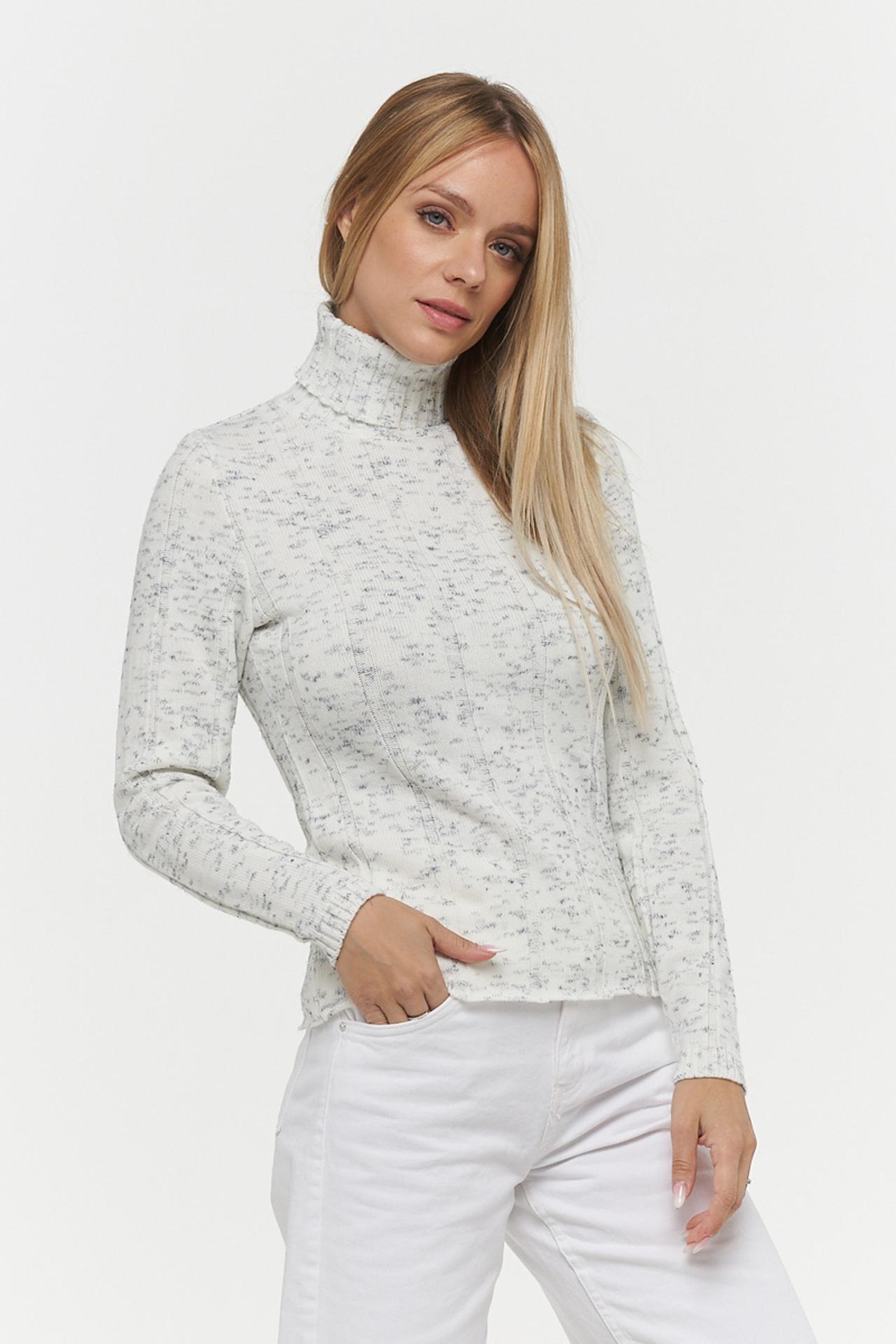 - Дизайн: Классический силуэт с высоким воротом-гольфом и приталенный крой подчеркнут вашу женственность. Мелкий узор в виде вкраплений придает изделию особый шарм и оригинальность, делая его отличным выбором для тех, кто ценит уникальность.