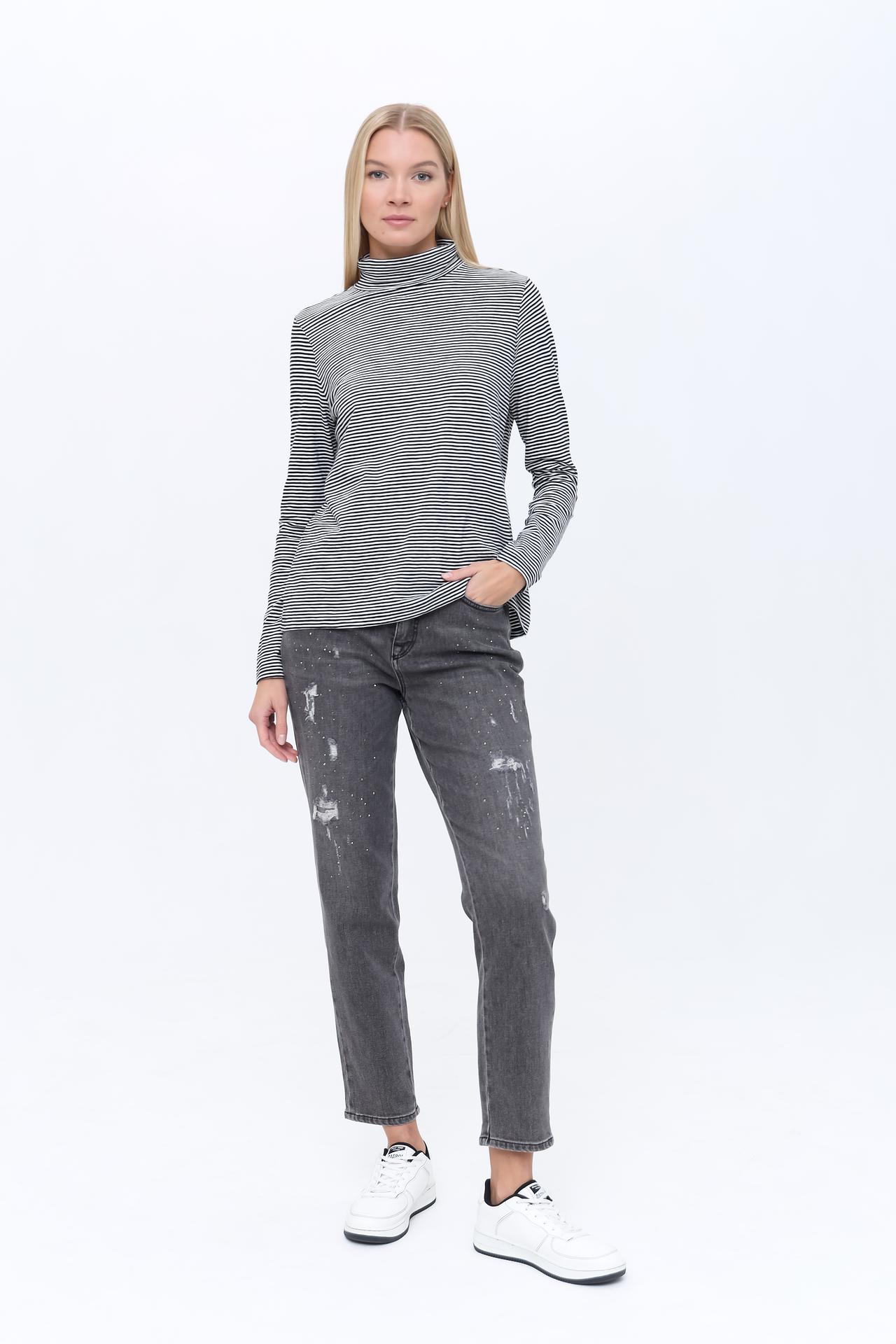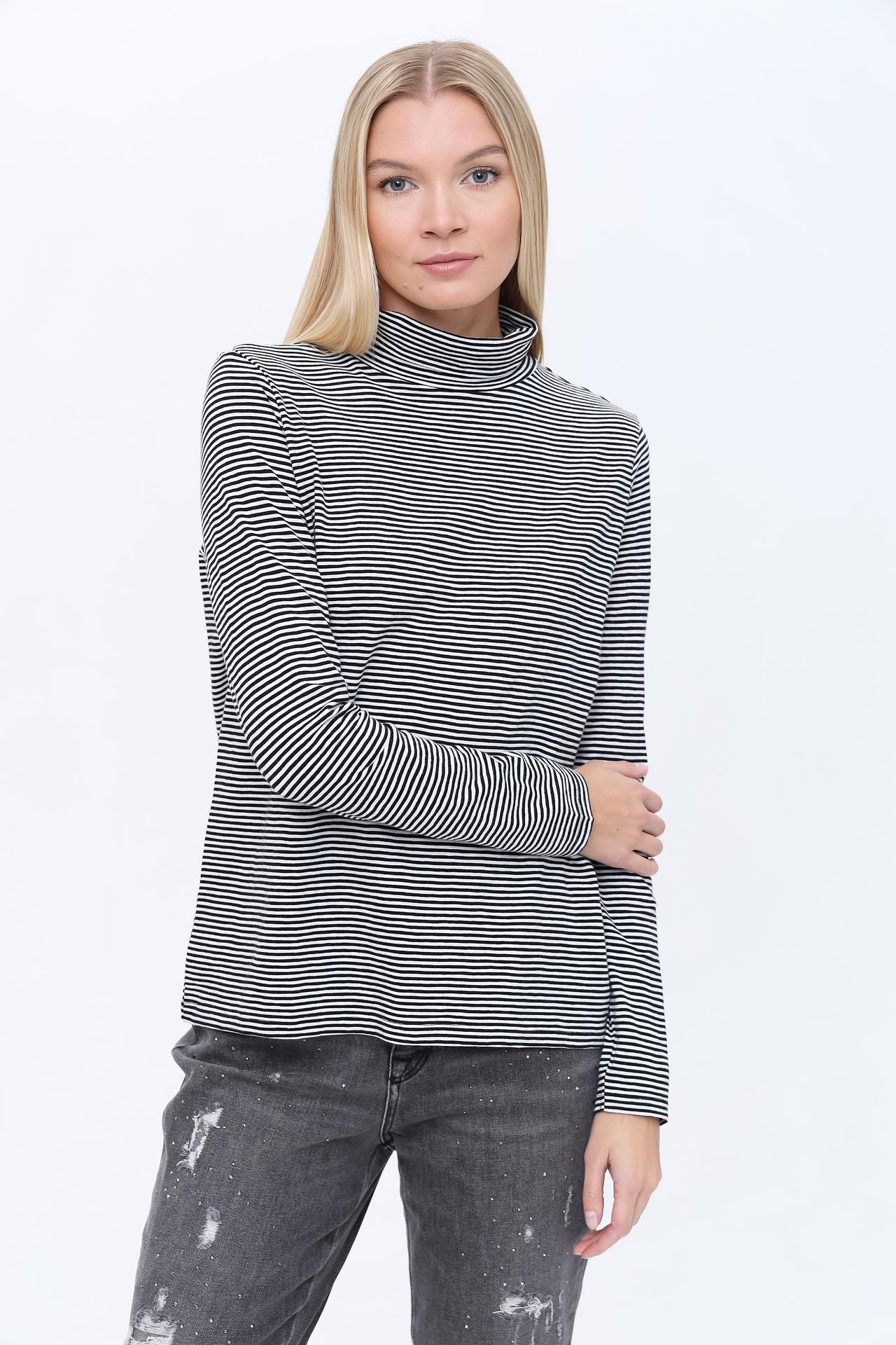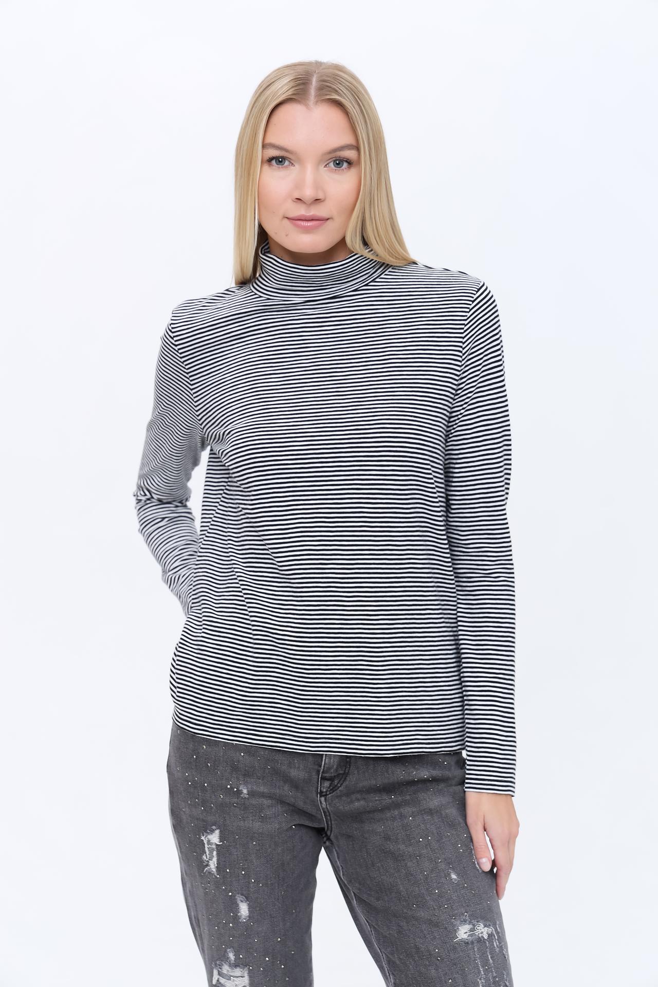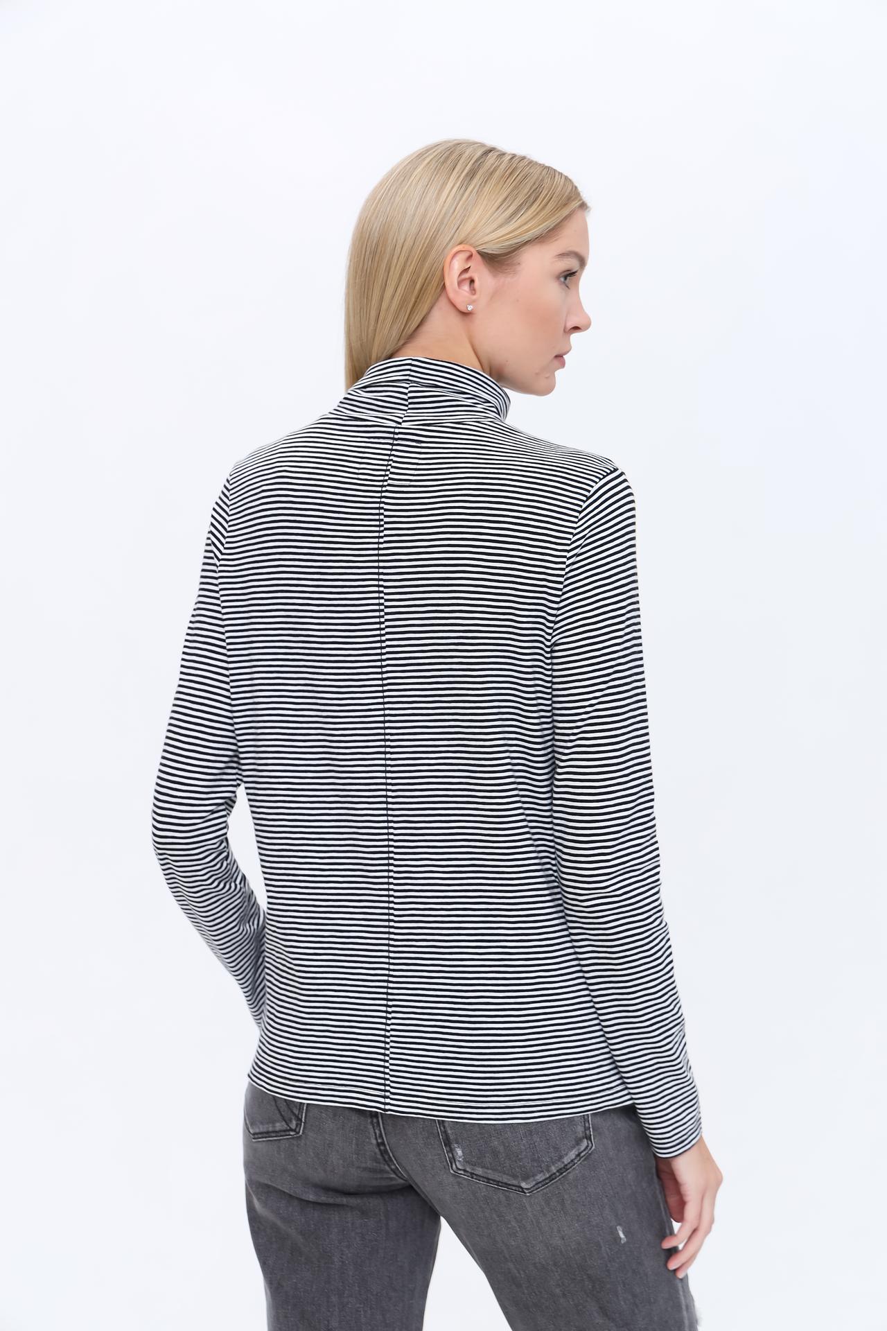 Идеальная посадка по фигуре подчеркнет достоинства вашей фигуры. Стильный дизайн в полоску делает водолазку выразительным акцентом в любом образе.